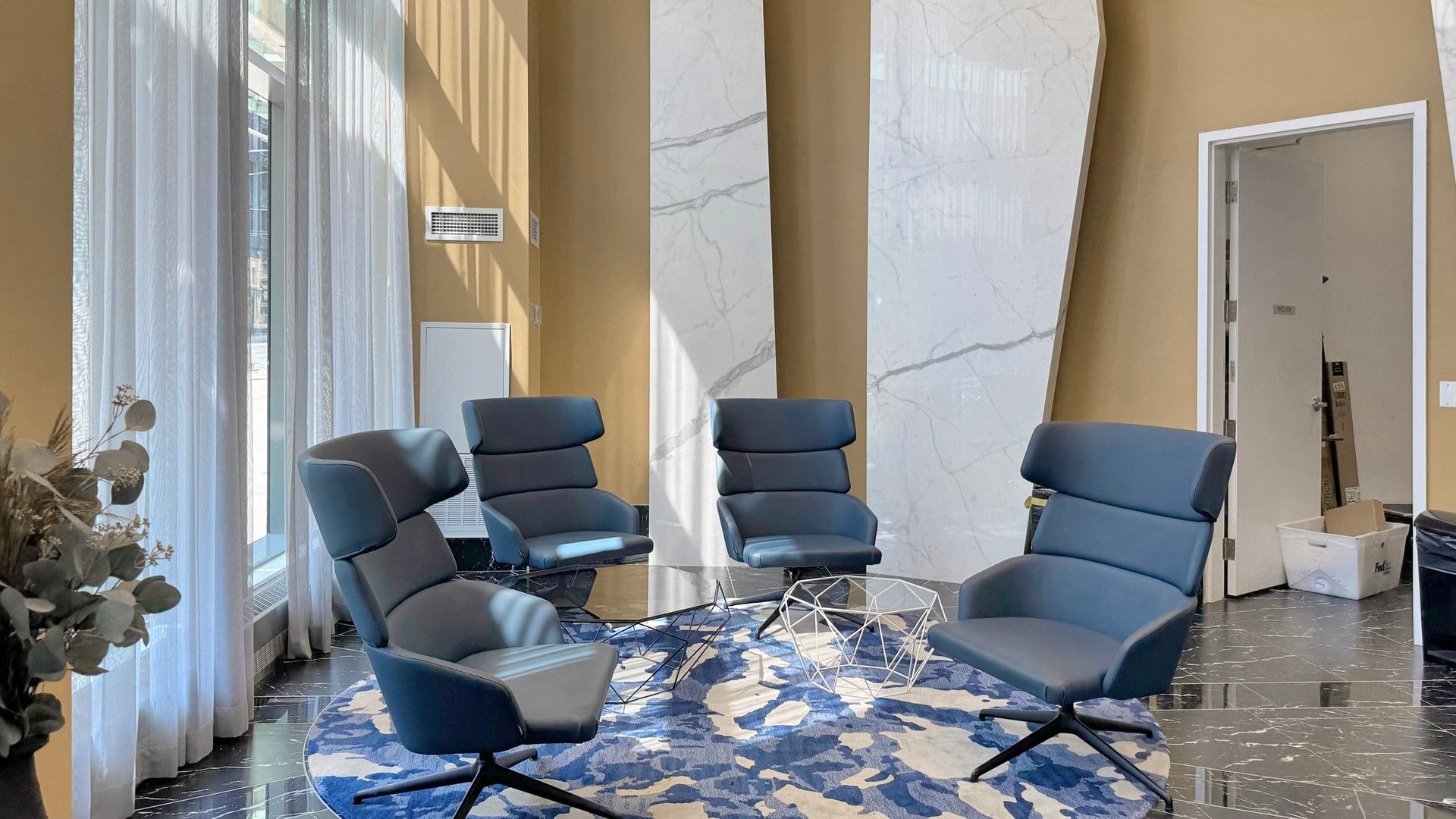 • Extensive building amenities including gym, pool, and rooftop deck.