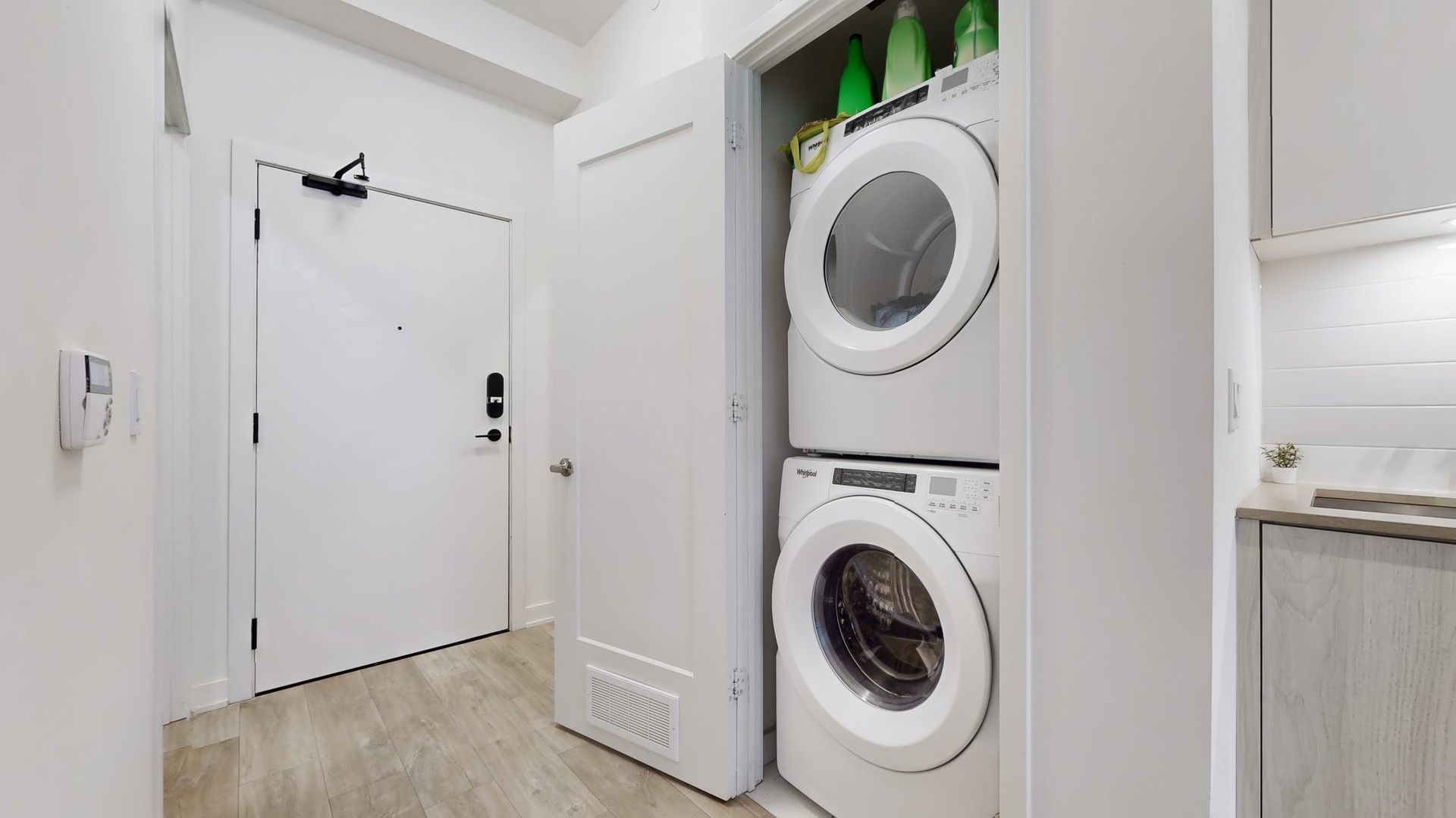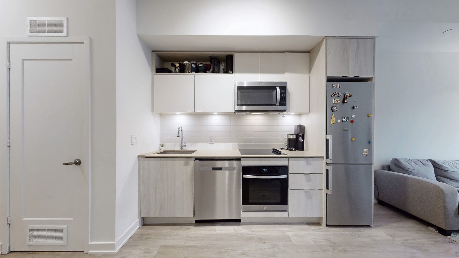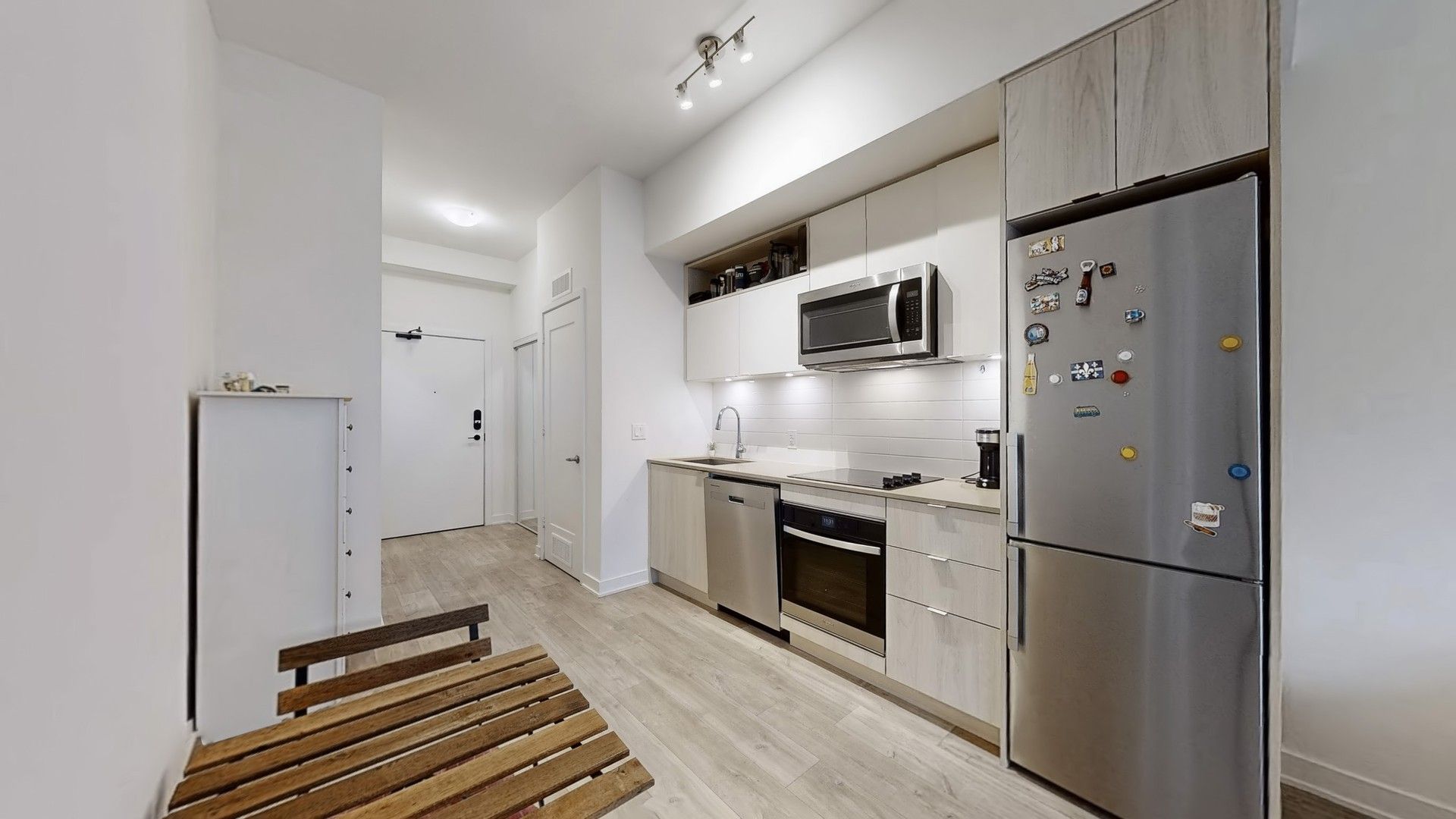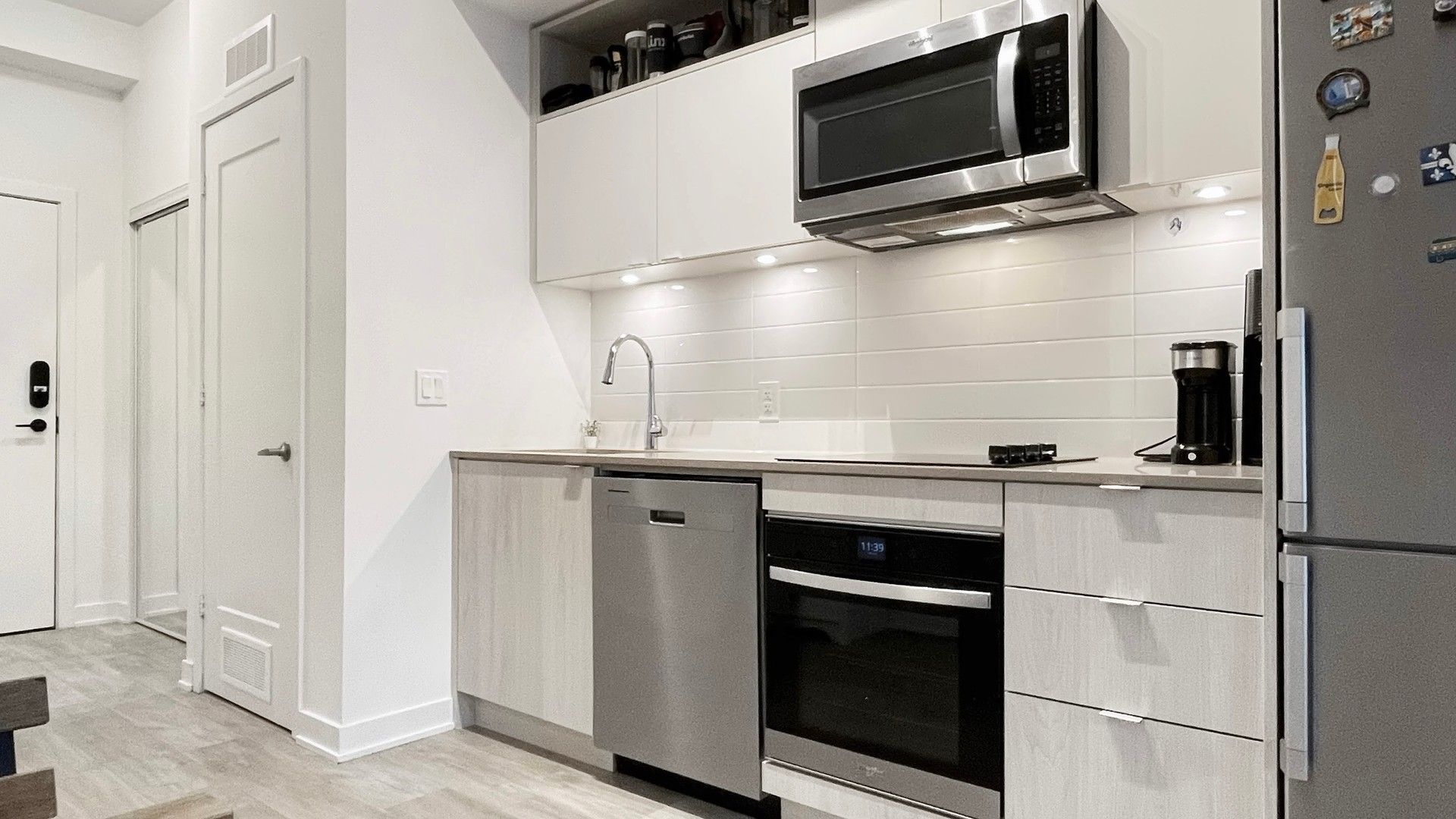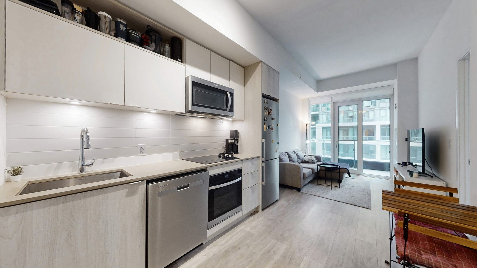 • Modern kitchen with stainless steel appliances and a private balcony.