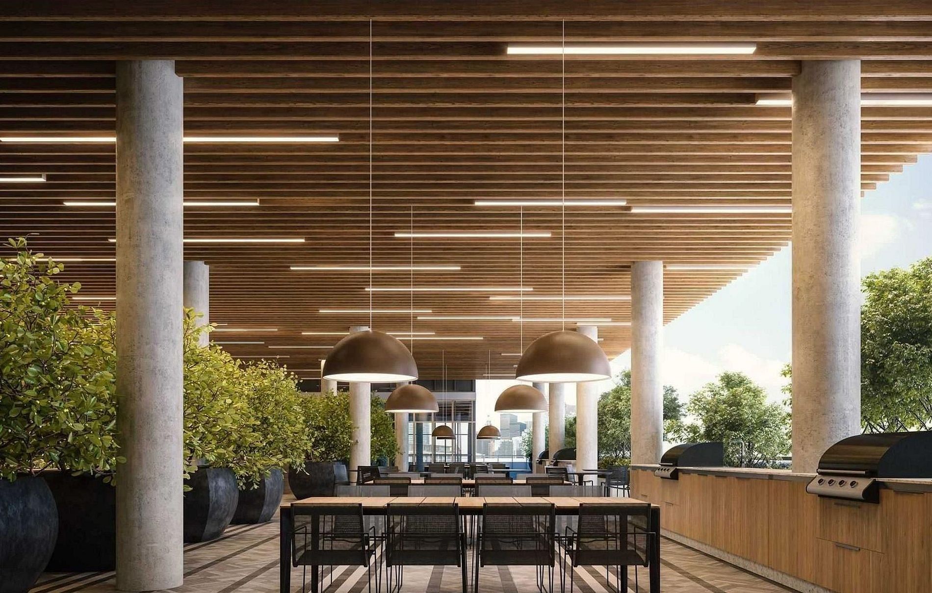 • Amenities include an infinity-edge pool and rooftop cabanas.