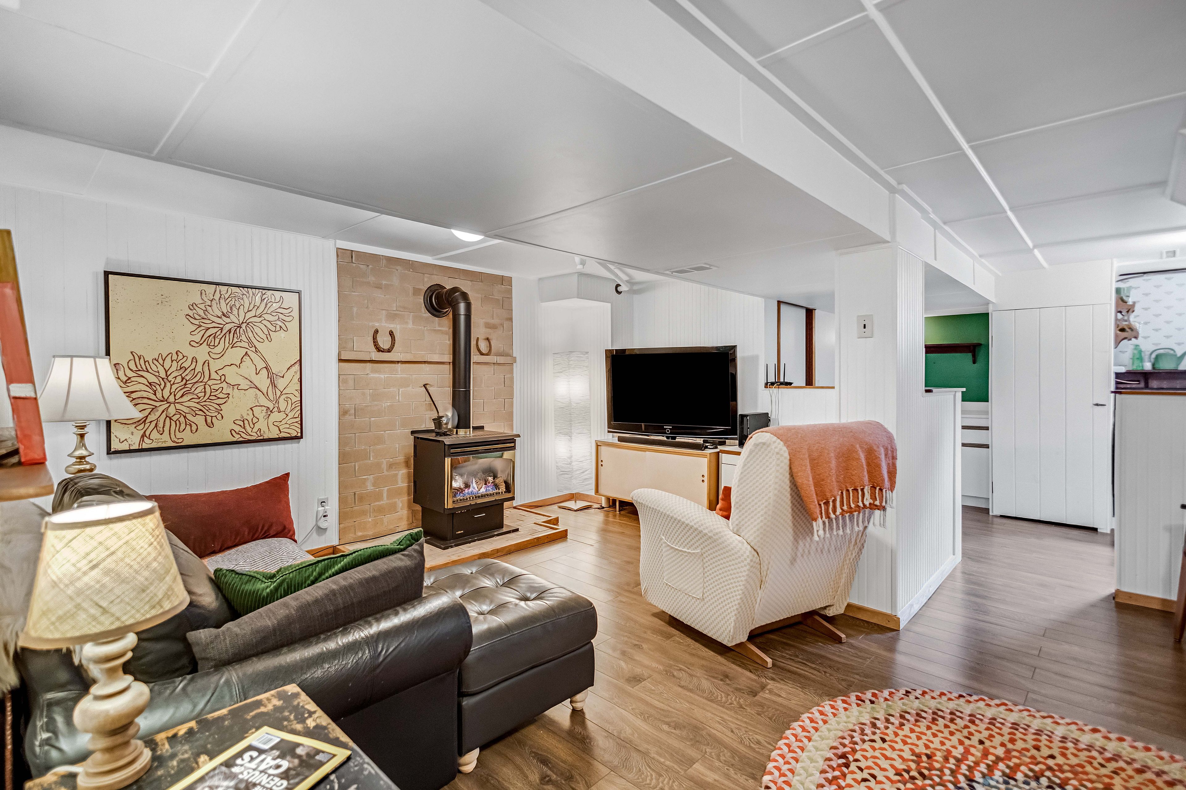• Cozy finished lower level with a gas fireplace and extra living space.