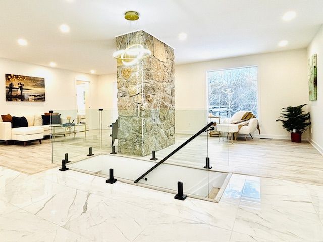 • Finished basement provides extra living space for relaxation or activities.