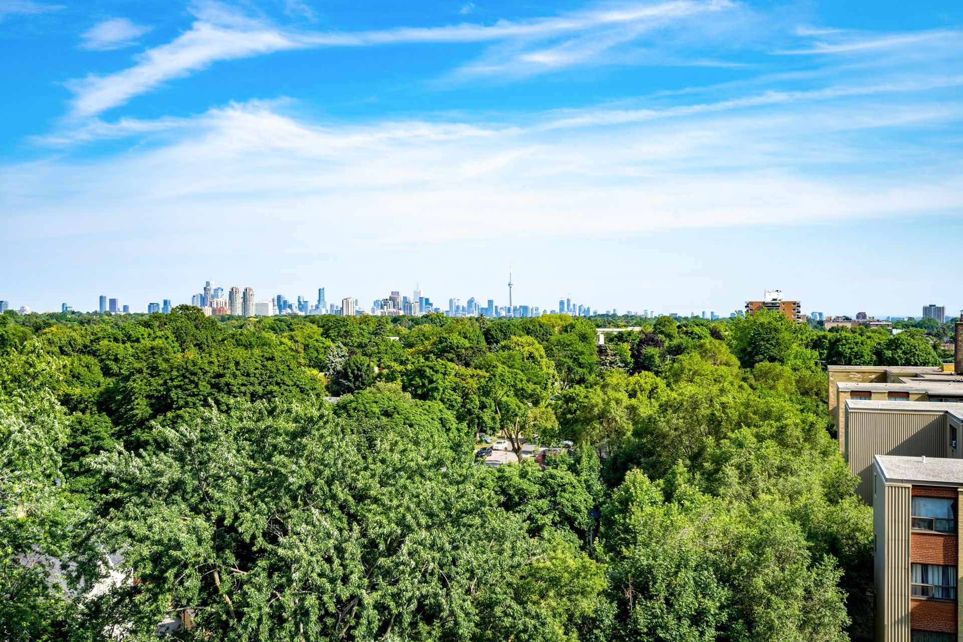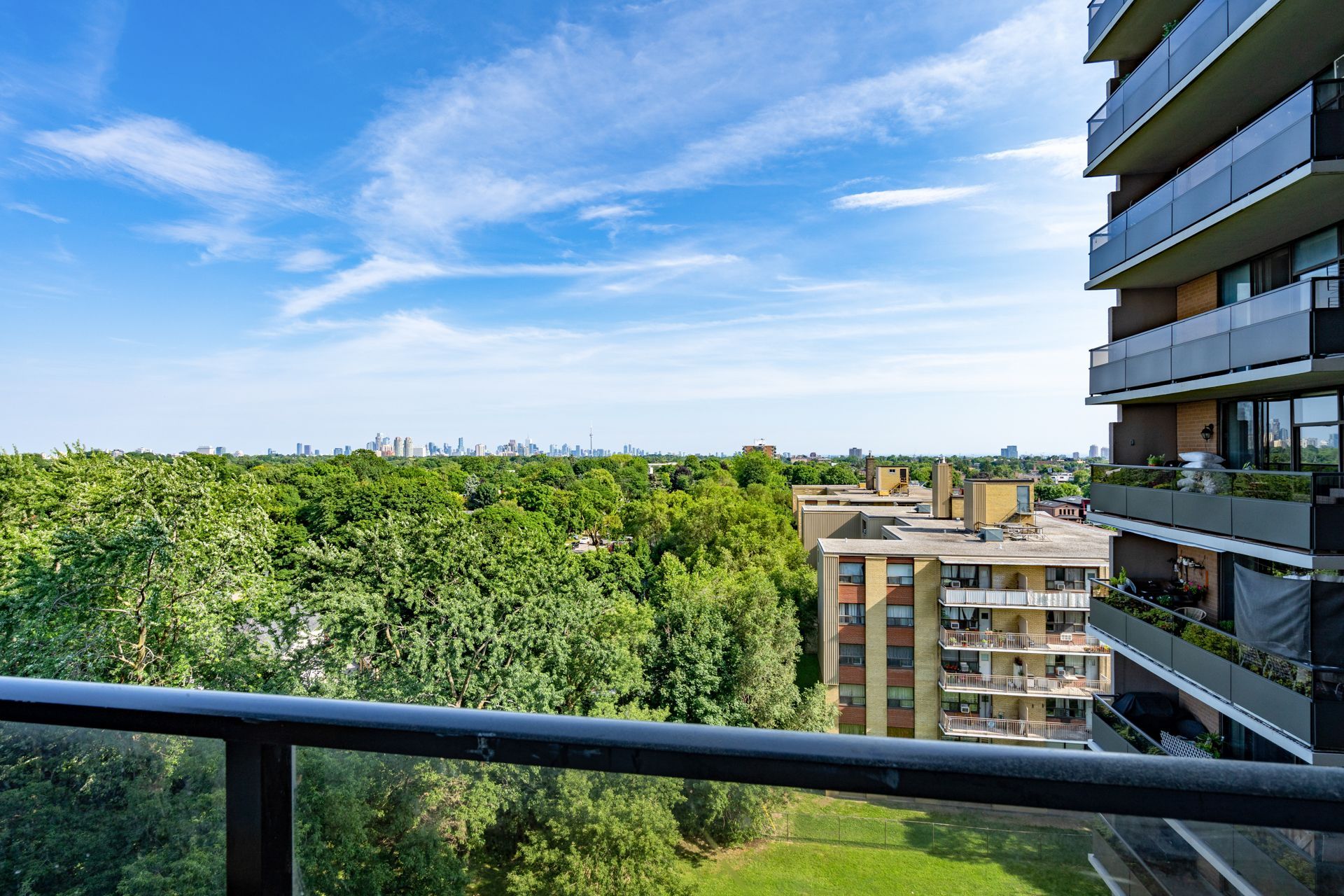 Amazing value is waiting at marlee and eglington! Bright and spacious 2 bedroom, 2 bath family sized condo with expansive southern views! Natural light fills this open concept layout complete with kitchen design ideal for entertaining. Spacious dining room and large living room with walk out to private oversized balcony. Enjoy stunning southern treetop views of toronto from your private balcony! 2 bedrooms includes large primary bedroom with en suite. Plenty of storage and underground parking, updated building amenities including indoor pool and plenty of visitor parking! Perfect location in vibrant eglinton west situated steps from public transit, hwy access, lrt, the beltline walking trail. Elite schools, shopping, delicious restaurants and so much more! Amazing building management and amenities including indoor pool, party room, bike storage, meeting room & gym. Maintenance fees include all utilities. Don't miss out!
