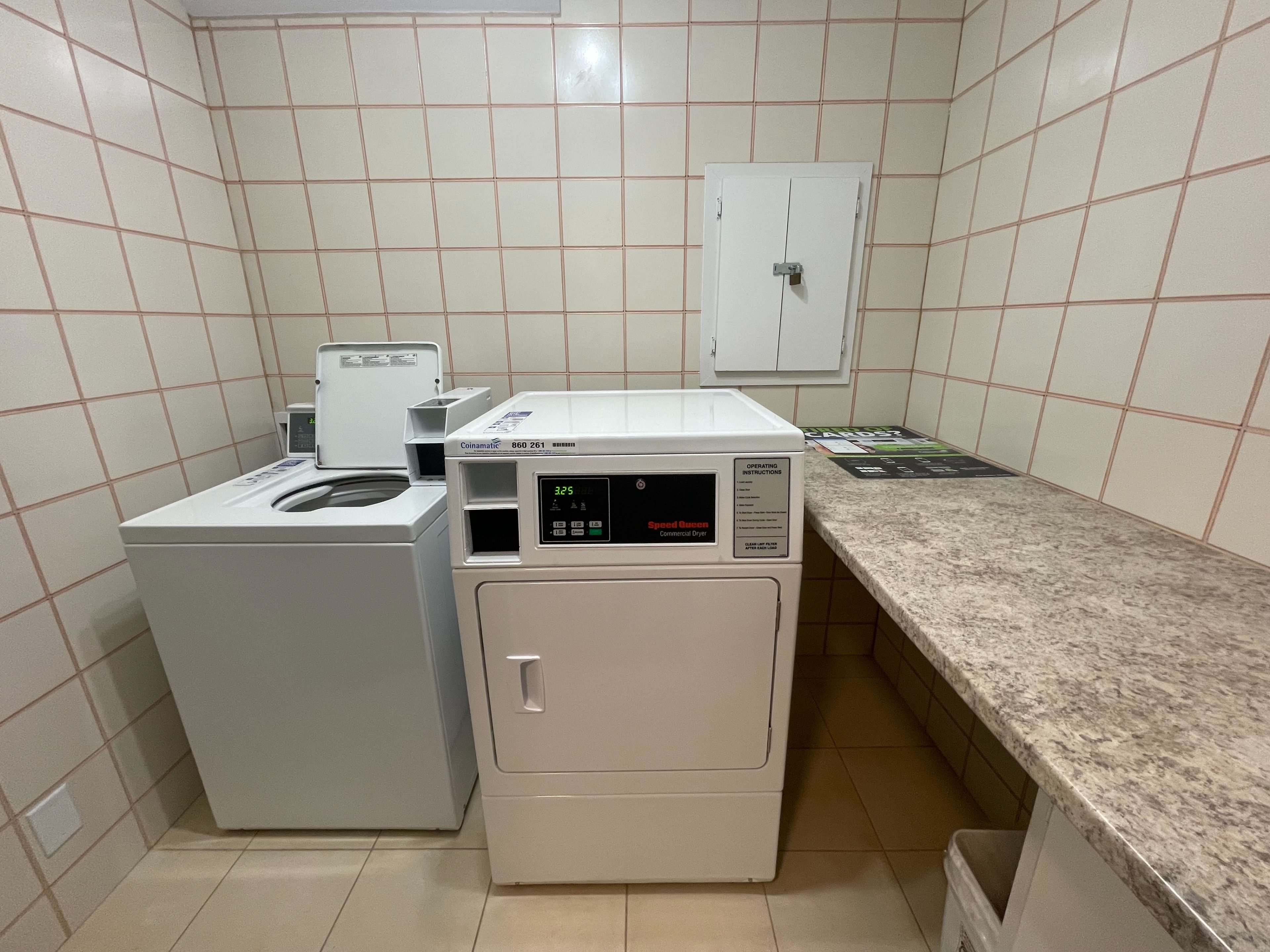 • Unit includes on-site laundry and air conditioning for comfort.