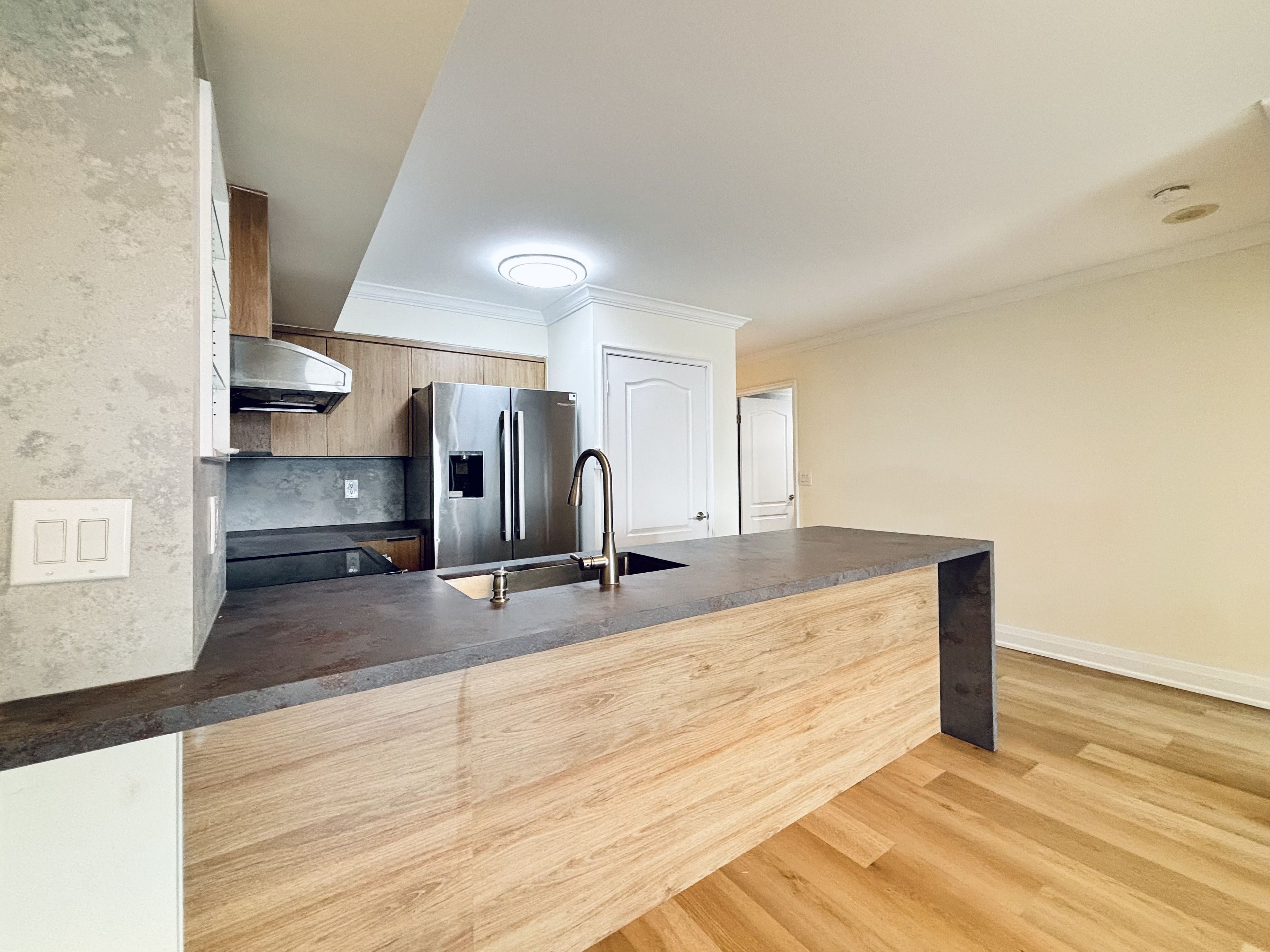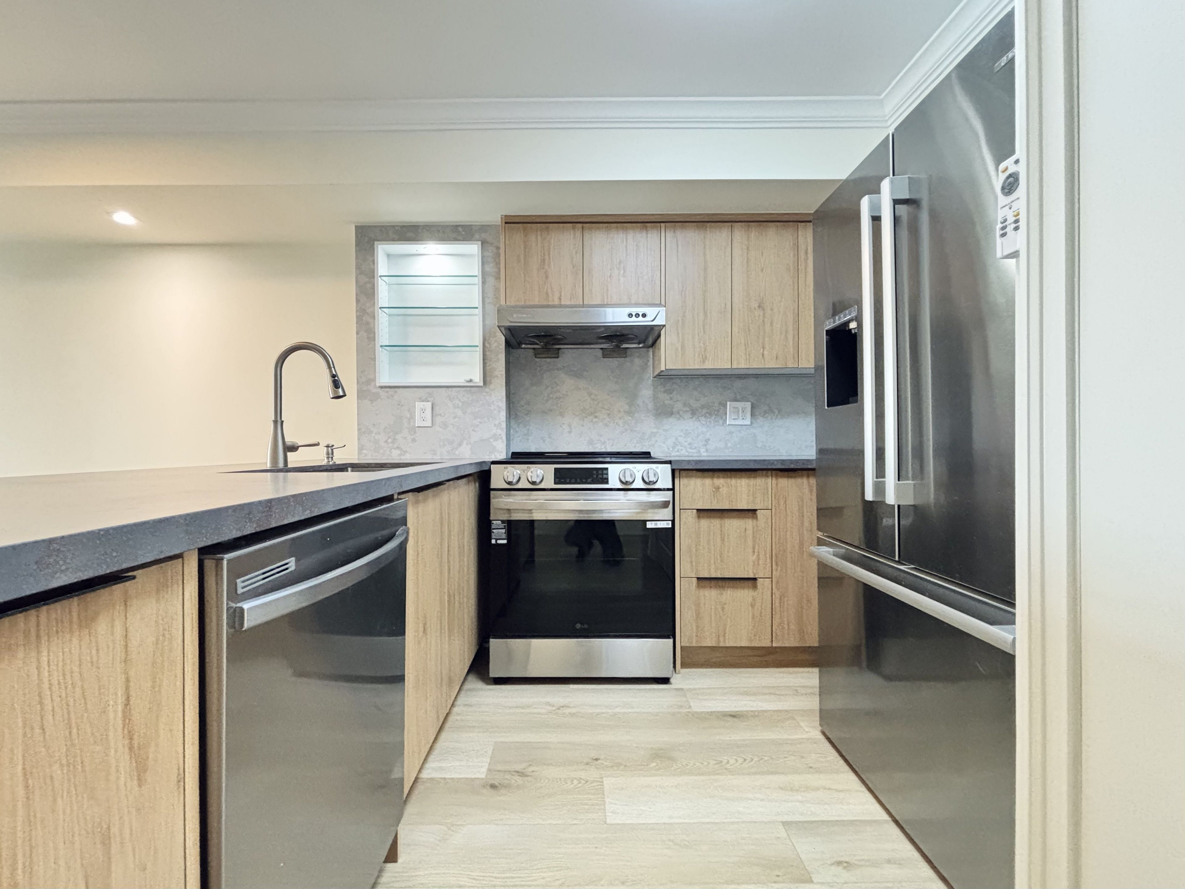 • Modern kitchen with high-end appliances and ample cabinetry.