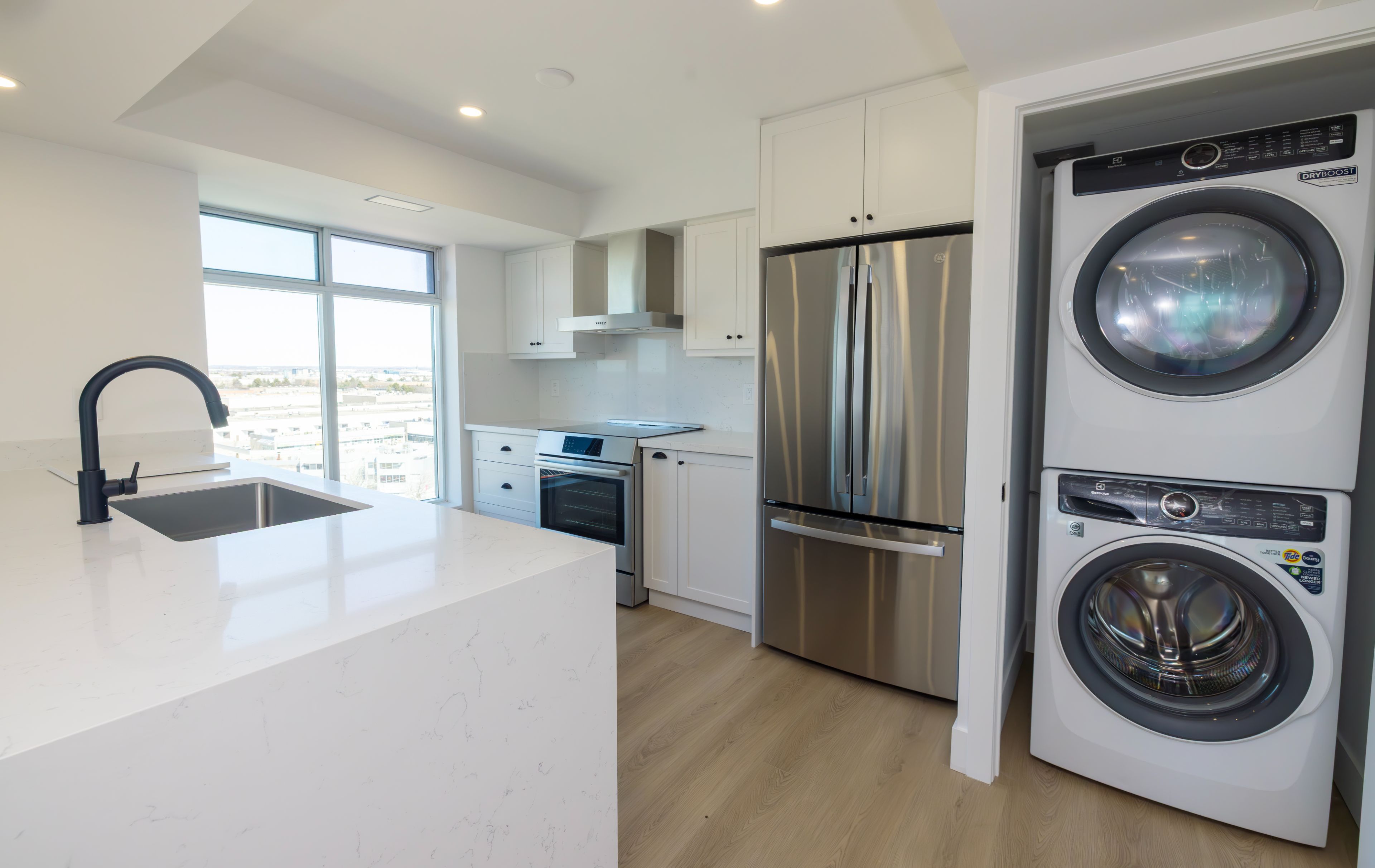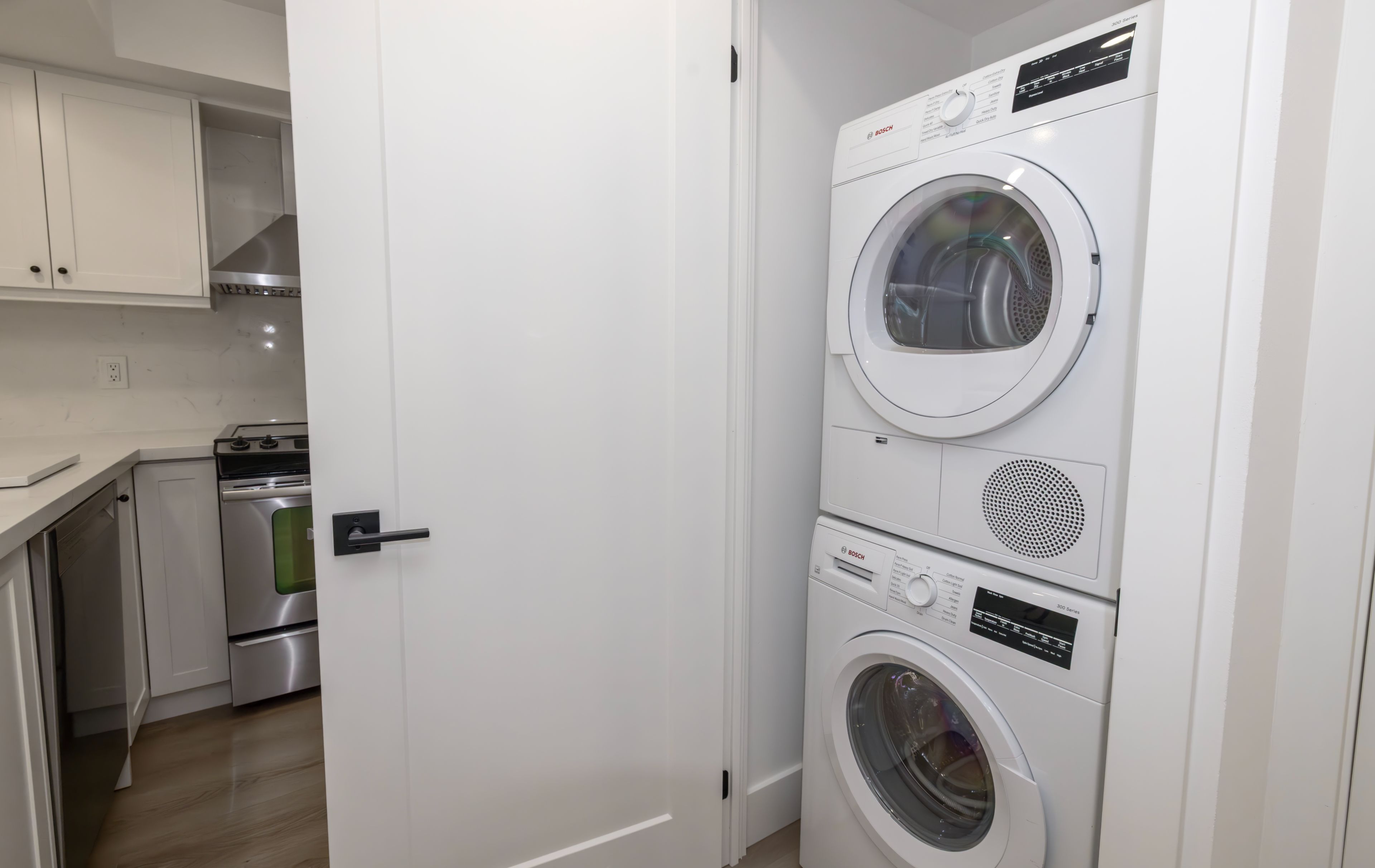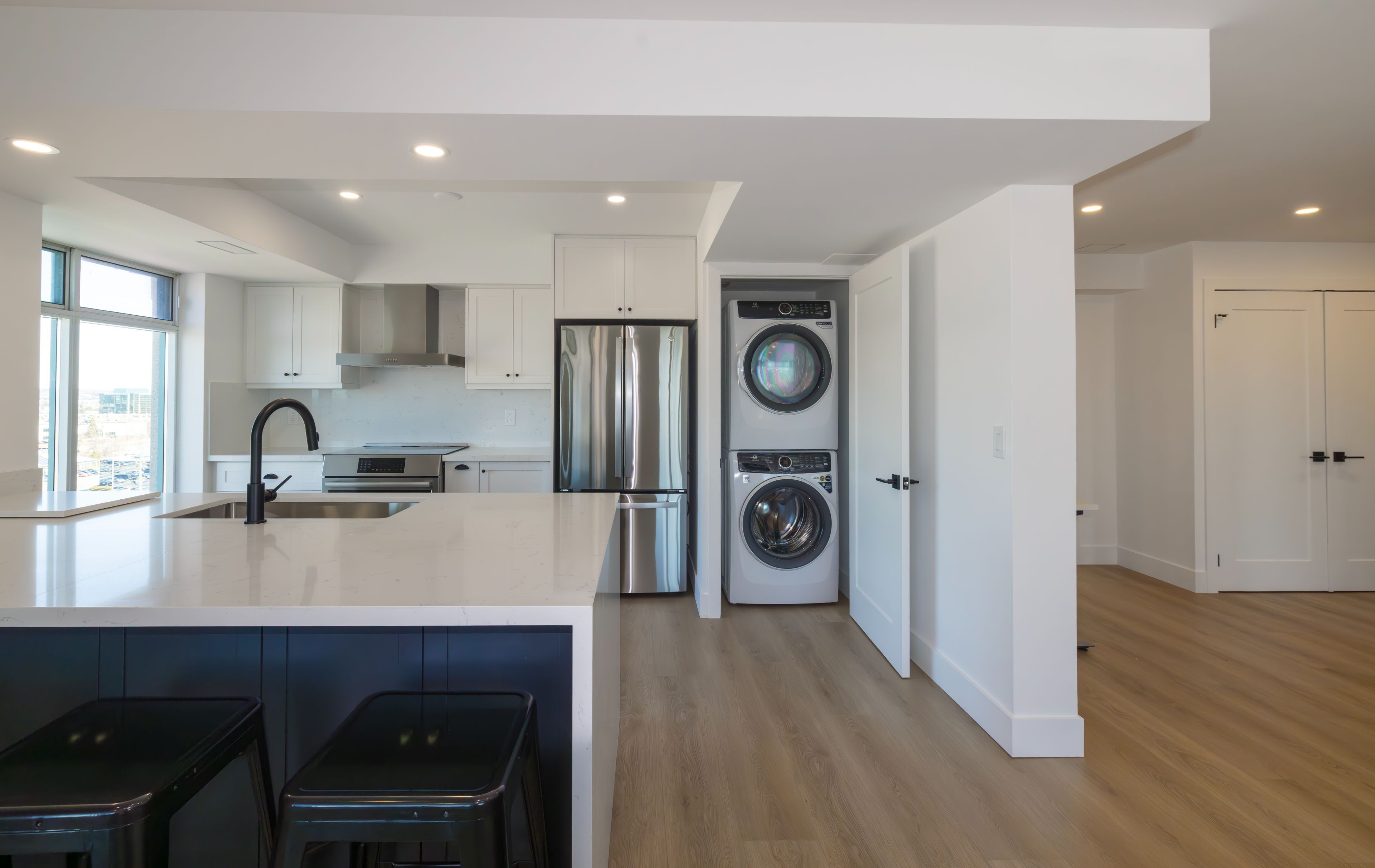 • Both units feature modern kitchens with high-end appliances and finishes.