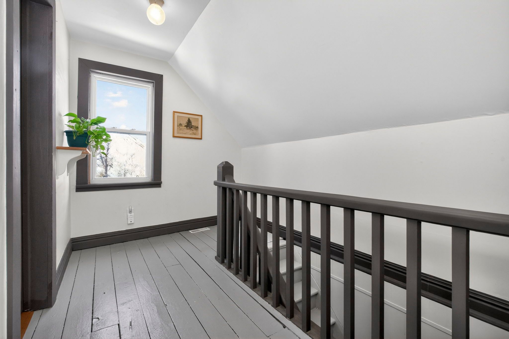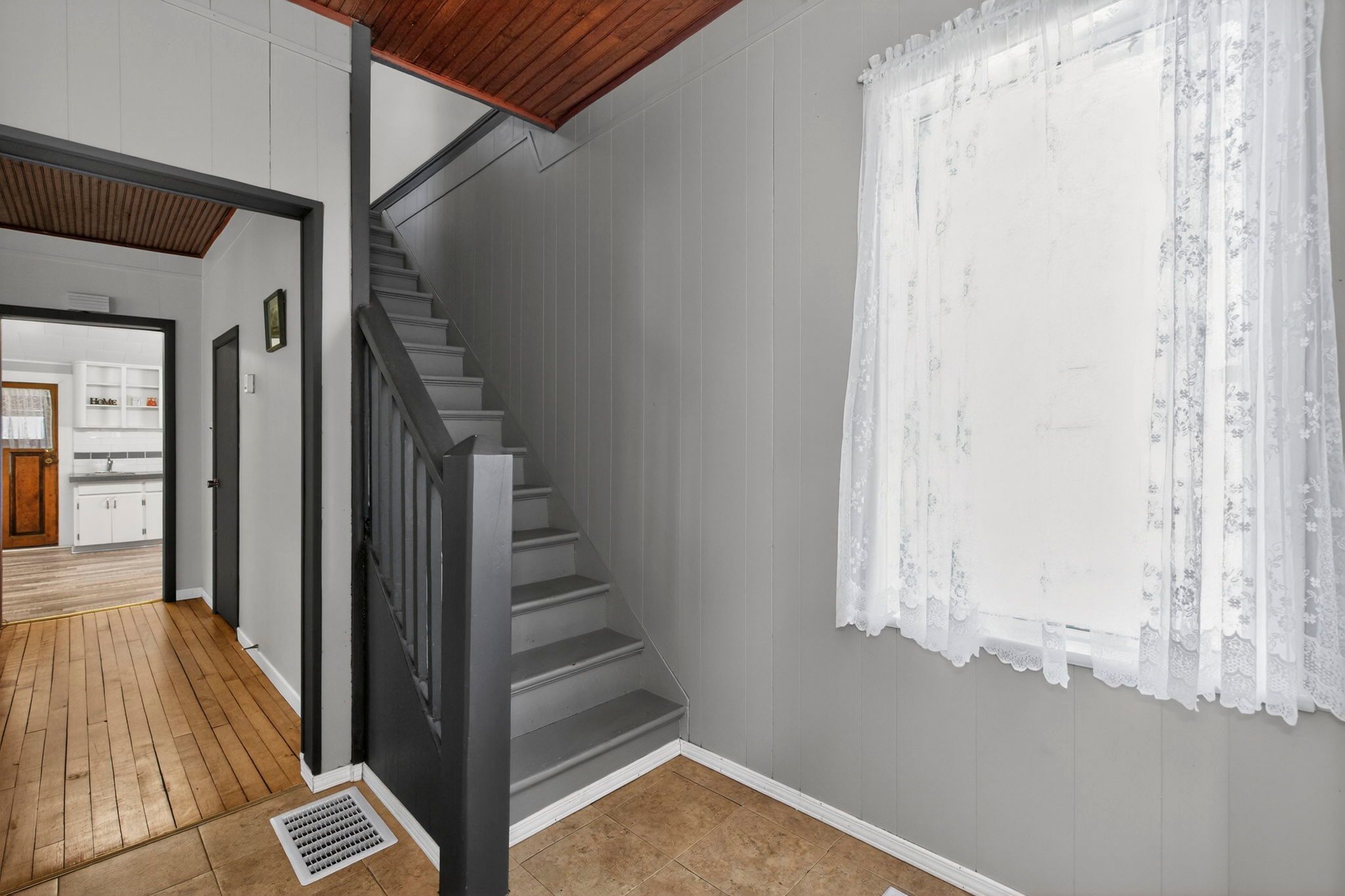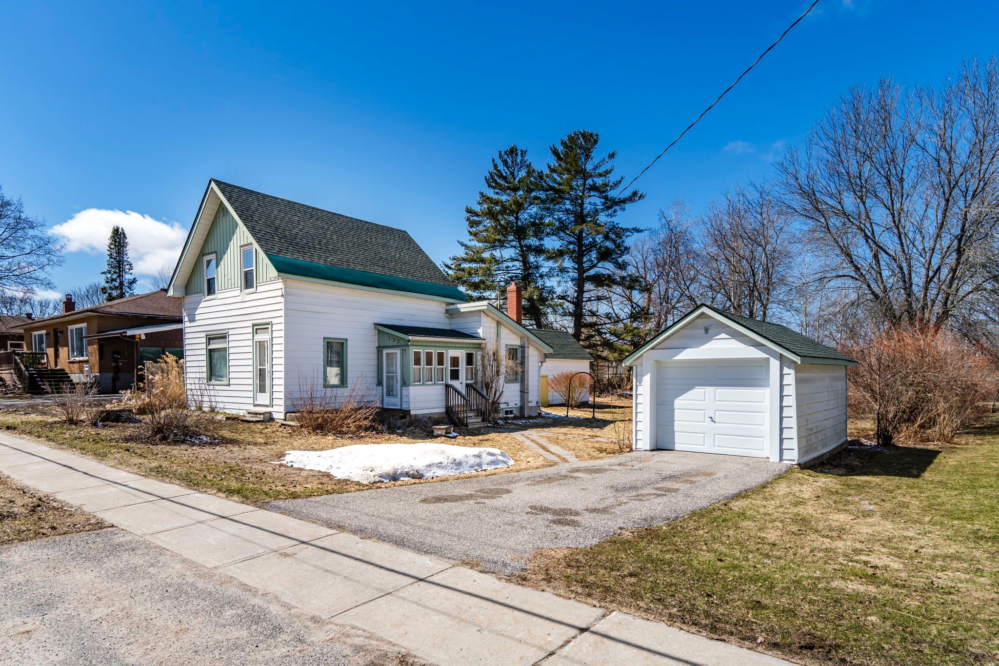 Modern updates blend seamlessly with the home's original charm and character in this beautifully maintained in-town property. You'll appreciate the many preserved features throughout, including original doors and hardware, hardwood floors, and high tongue-and-groove ceilings in the formal dining room, living room, and entryways. The spacious kitchen offers plenty of room for family gatherings and everyday living, while large windows bring in natural light and showcase the mature landscaping surrounding the property. Set on a huge in-town lot backing directly onto the trans canada trail, this home provides privacy, space, and easy access to nature right from your backyard. Enjoy an easy walk to penetang's waterfront trails, where you'll find a skate park, beach, basketball and volleyball courts, playground, splash pad, and the town dock - perfect for active families. This great family home features 3 bedrooms and 1 bathroom, along with an approximately 10' x 18' garage with an asphalt floor. A separate outbuilding offers additional storage or workshop space, and a loft, adding even more functionality to this charming property. This is your opportunity to own a character-filled home in a desirable in-town location and at an affordable price.