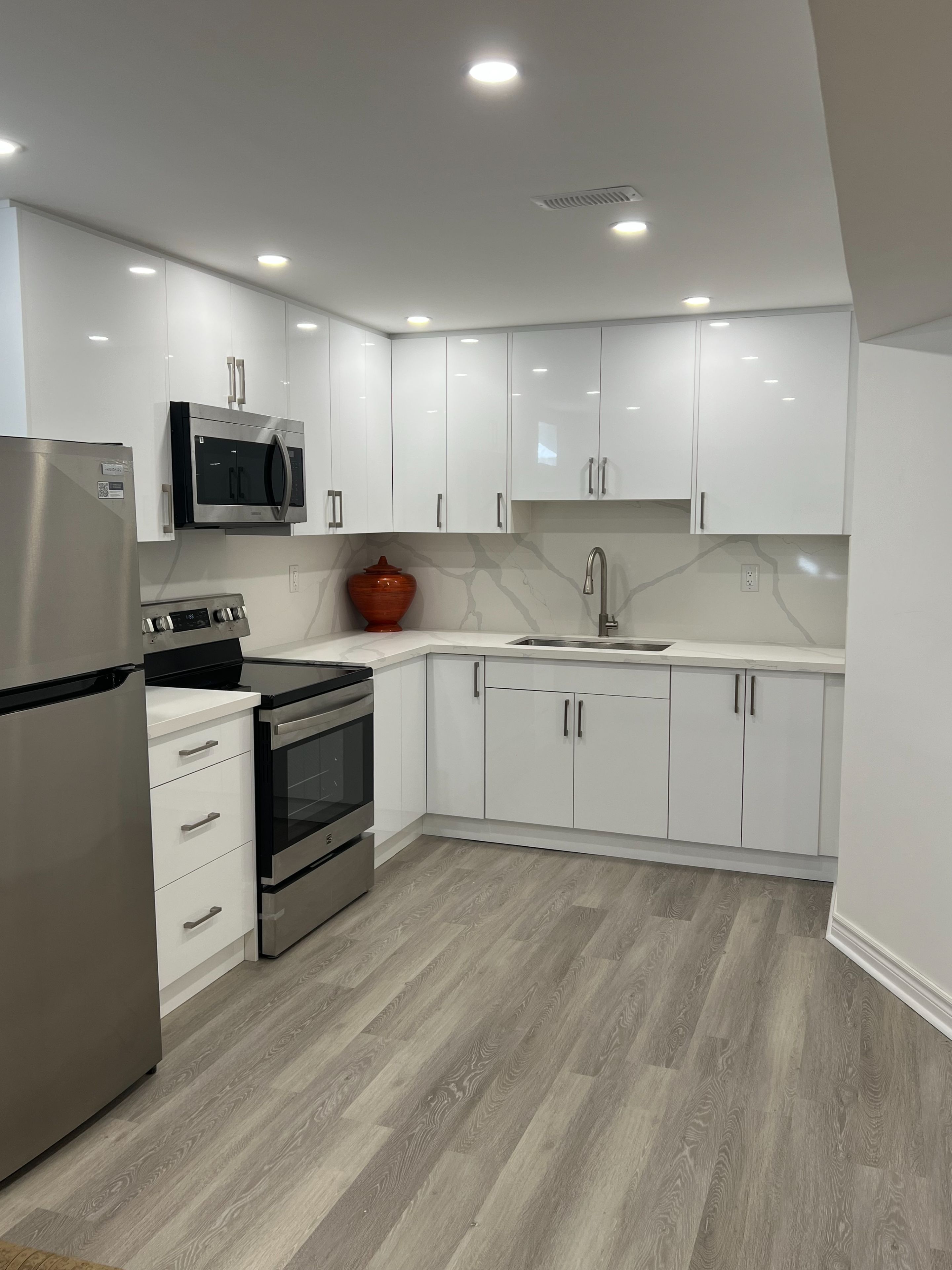 Be the first to live in this spectacular, brand new, legal 1-bedroom basement suite! Designed with comfort and luxury in mind, this unit redefines basement living, offering unparalleled standard of quality, light and space. This suite boasts huge, sprawling living areas with exceptional ceiling heights, pot lights throughout, living room fireplace, beautiful kitchen featuring stainless steel appliances, stone counters and custom cabinets. Bright spacious bedroom with huge window, double closet. Gorgeous detailed bathroom complete with a shower massager. Brand new ensuite washer and dryer for your convenience. Enjoy all this has to offer close to top rated schools, transit, hwy 404, shopping, all amenities.