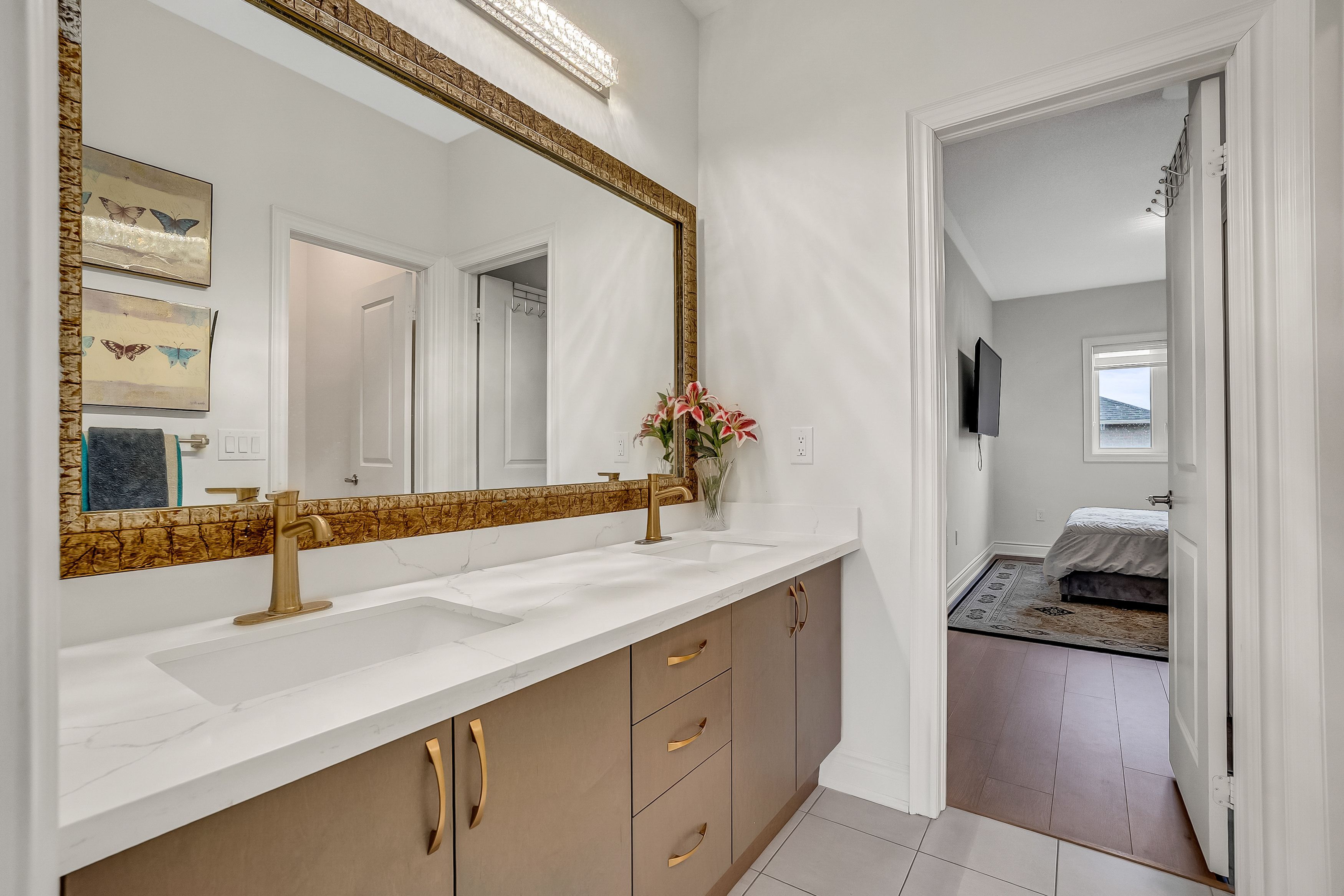 Elevate your lifestyle in this stunning 4 bedroom residence, with soaring 9-foot ceilings on both the main and second levels. The heart of the home is a chef-inspired fully upgraded kitchen, featuring a huge centre island designed for effortless entertaining and open to the inviting family room with beautiful gas fireplace and coffered ceiling. Retreat to the master bedroom featuring a spa-like 5-piece ensuite. This home is as practical as it is beautiful, featuring a convenient second floor laundry and generously sized bright bedrooms throughout. Adding incredible value is the professionally finished basement apartment with its own separate entrance, a bright, expansive space offering a huge living area, a full kitchen, and a spacious bedroom featuring an extra large window, perfect for multi-generational living or high-end rental income. This home is conveniently located close to top rated schools, minutes to costco, home depot, restaurants, clinics and all other amenities as well as transit and hwy 404.