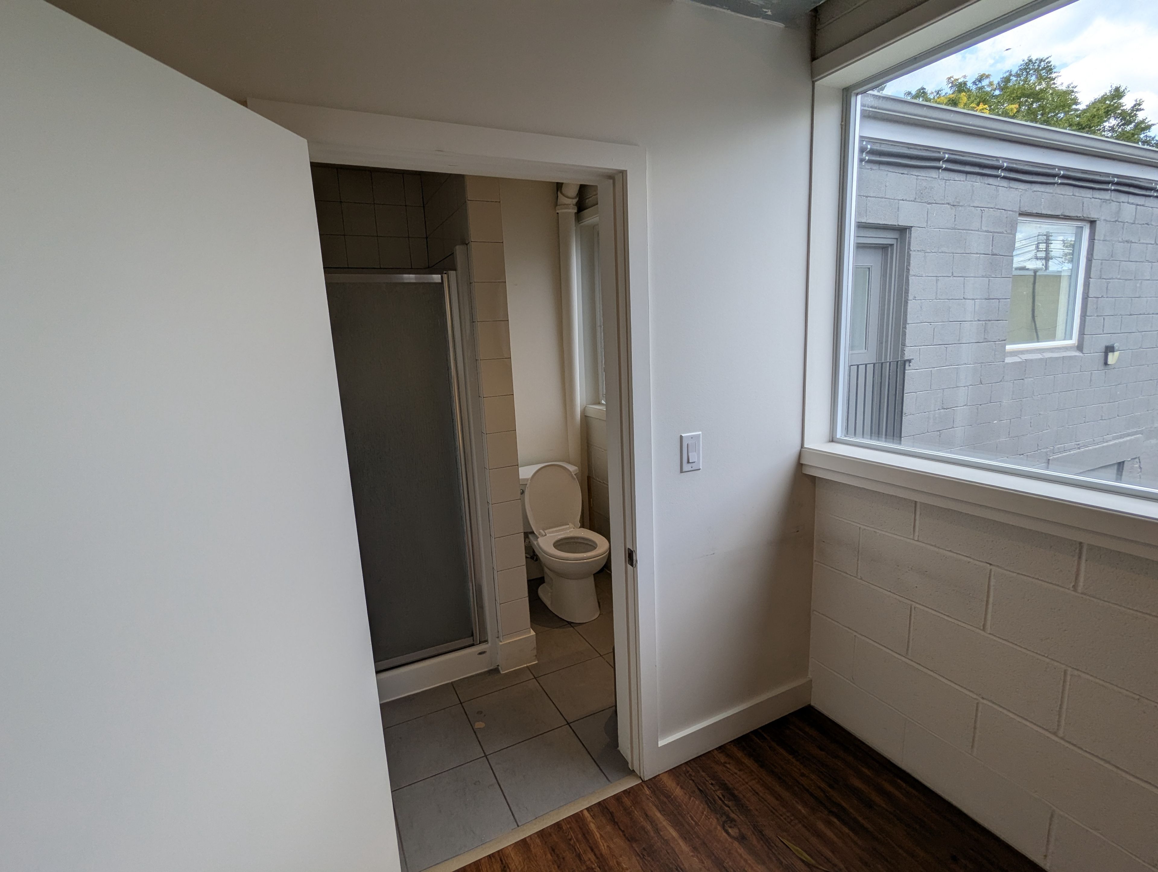 Super second floor open concept office studio with a private entrance. 10 foot ceilings & 7 new windows result in a very bright space with tons of natural light. Great layout with 2 private offices, white walls & stressed oak-like floor. New lighting, 3-piece bathroom with shower, kitchenette, & hvac with ac. Excellent studio space ideal for marketing & tech companies. Professional ownership & management. Individual control of heating & cooling. Gas & hydro extra. See floor plan.