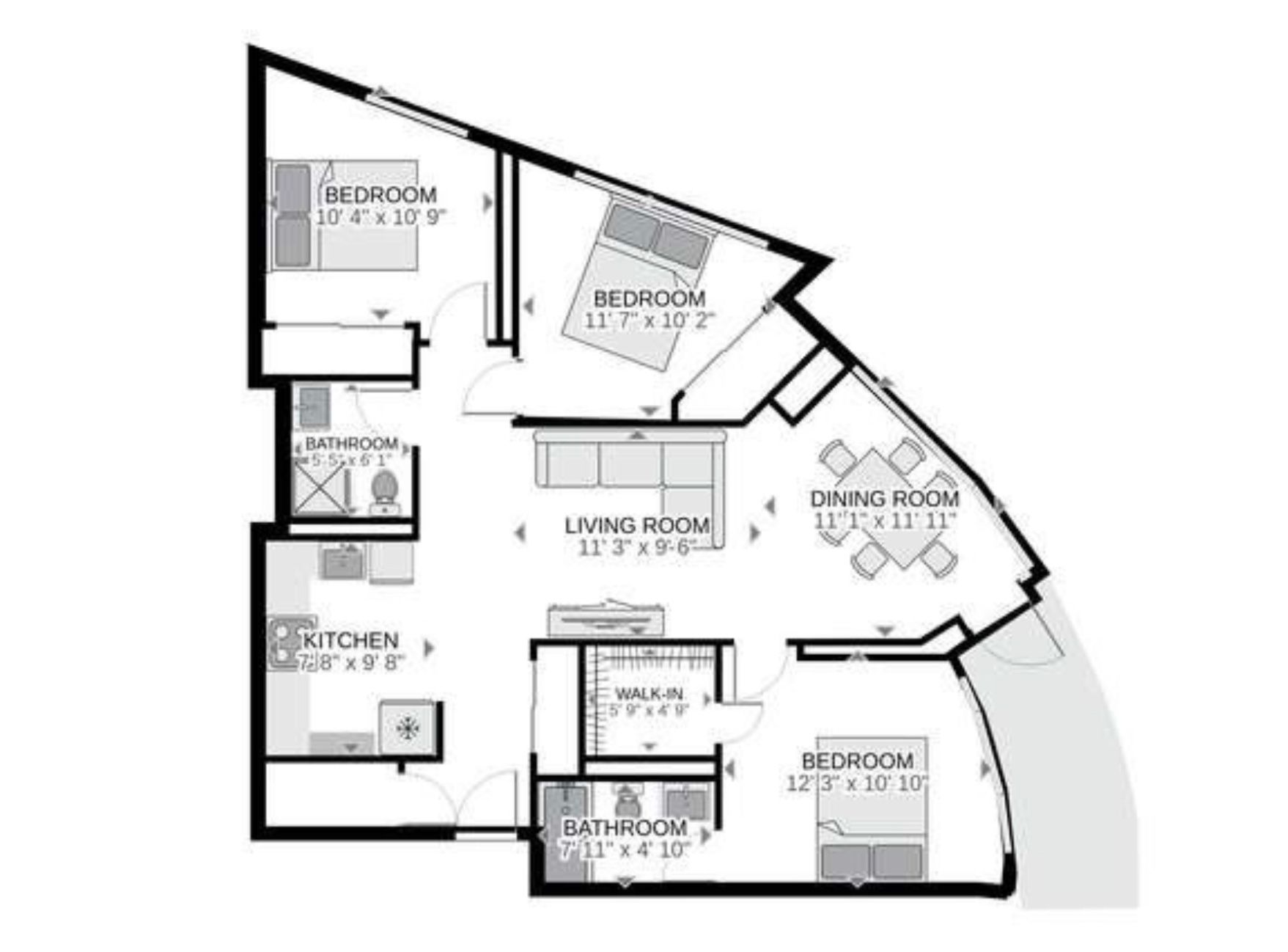• Bright and spacious 3-bedroom suite with laminate flooring throughout.