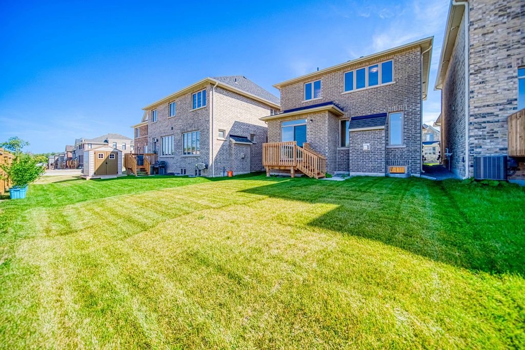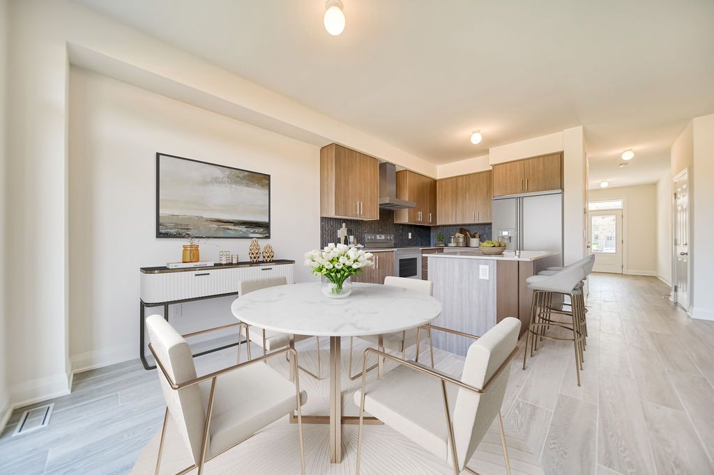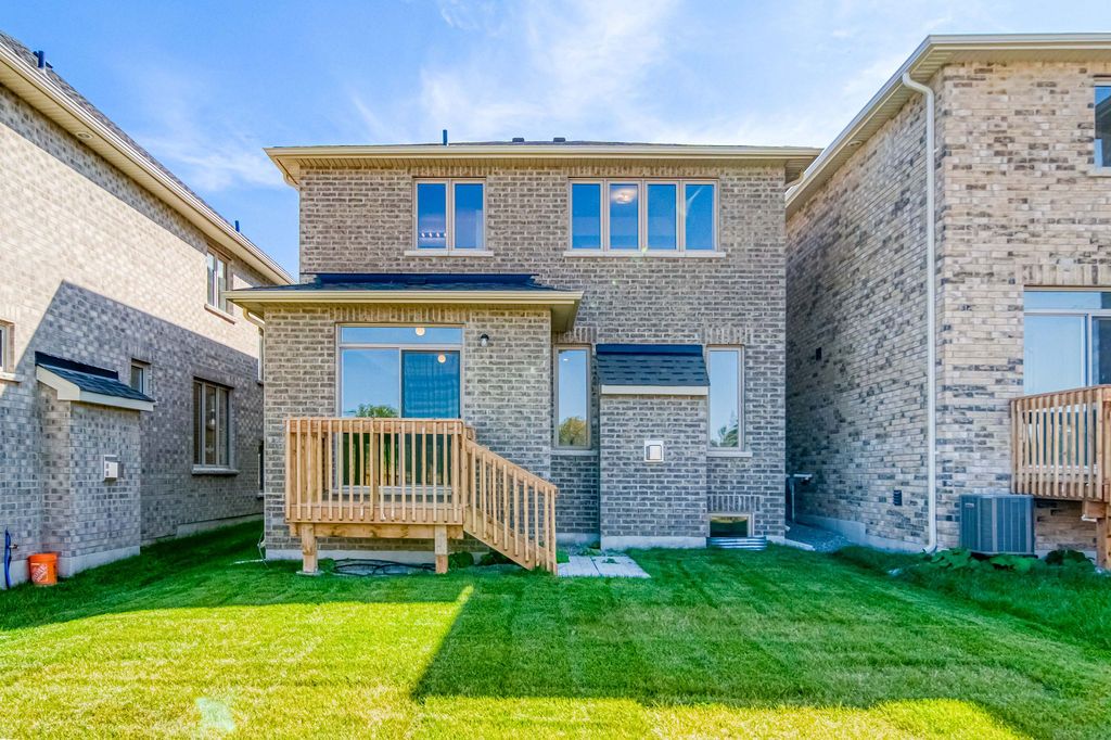Welcome home to this meadowville model by ballymore homes. Built in 2023, this gorgeous detached residence is just steps from innisfil beach in a vibrant new community. Offering 1,680 sq. Ft. Of exquisitely beautifully finished above grade. This 3-bedroom residence is filled with premium upgrades and modern design touches throughout. The main floor features soaring 9-ft smooth ceilings, upgraded baseboards, trim, and doors, all set atop striking 8x48 hardwood tile. The inviting family room showcases a cozy gas fireplace with a custom mantle and upgraded pot lights. The chef's kitchen is a true highlight, boasting quartz countertops, a black herringbone marble backsplash, moen pull-down faucet, and custom cabinetry with a fridge gable. A stylish upgraded staircase and railing lead you to the second floor, where you will find upgraded 314 inch wire-brushed vintage hardwood flooring throughout, including the landing. The primary suite is complete with a spa-inspired ensuite featuring a soaking tub, curbless glass shower with rain head and handheld, 24x24 porcelain walls and floors, upgraded vanity, and moen fixtures. The main bath also offers a designer finish with large format porcelain, quartz-style counters, and premium fixtures. Additional conveniences include a second-floor laundry with built-in drain and tile baseboards, central air conditioning, hrv system, and on-demand hot water. This home truly combines style, comfort, and functionality in one of innisfil's most desirable locations.