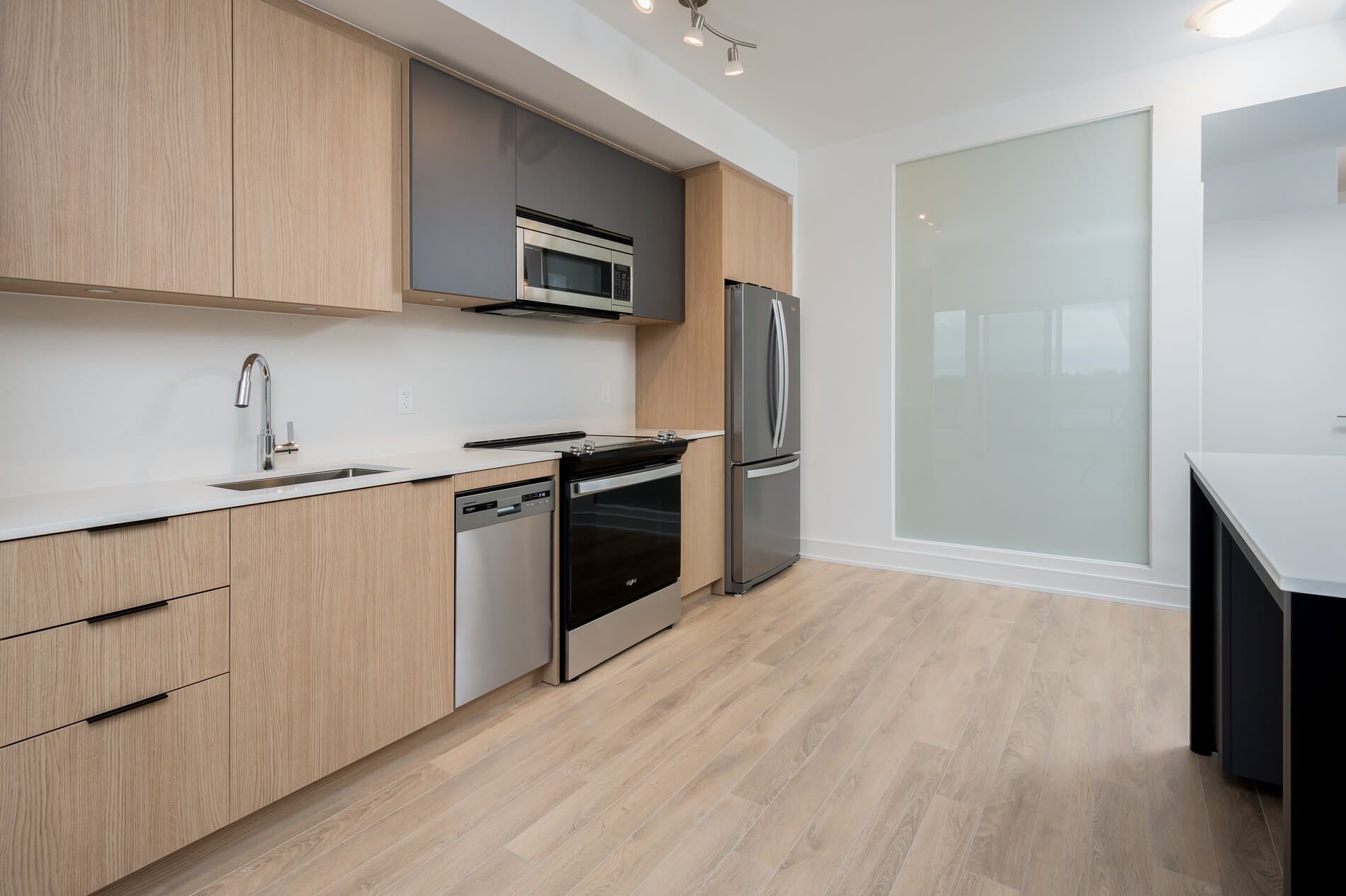 • Modern condo with a redesigned den that easily serves as a second bedroom.