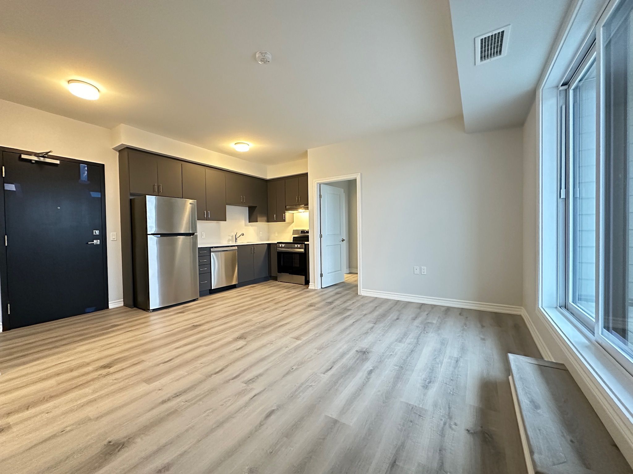 Step into stylish, low-maintenance living with this beautifully upgraded 2-bedroom luxury apartment by mattamy homes, perfectly situated in the highly sought-after wateridge village community. Featuring a modern combination of vinyl and ceramic flooring throughout, this home offers both comfort and functionality, complemented by the convenience of underground heated parking - a true bonus during ottawa winters. One of the standout features is the oversized private terrace, offering serene views toward gatineau park and ample space for entertaining, or enjoying your own outdoor retreat. Inside, the bright open-concept layout is enhanced by expansive glass patio doors that flood the living and dining areas with natural light, creating a warm and inviting atmosphere. The contemporary kitchen is thoughtfully designed with sleek cabinetry, a chic backsplash, quartz countertops, and stainless steel appliances, including a microwave/hood fan combination, while upgraded lighting fixtures and modern vinyl flooring further elevate the home's clean, stylish aesthetic. The spacious primary bedroom features a large window, a walk-in closet, and a private 3-piece ensuite, offering a comfortable and private retreat. The second bedroom is also generously sized, filled with natural light, and enjoys direct access to the shared bathroom, providing flexibility for guests, family members, or a home office setup. Additional highlights include a clean, private in-unit laundry area for everyday convenience. Ideally located next to alliance park and just minutes from downtown ottawa, montfort hospital, and major employment hubs such as cse, csis, and cmhc, this home also offers quick access to blair lrt station, highways 174 and 417, beechwood village, st. Laurent shopping centre, and top private schools including ashbury college and elmwood school. Internet is included, making this an exceptional opportunity for modern, connected urban living.