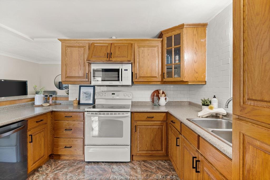 This sprawling bungalow ranch is situated on a rare, expansive 105-foot frontage in highly sought after lasalle! Combining classic curb appeal with a functional layout, this home offers 3 bedrooms and 2 full bathrooms. Step into a bright and airy foyer met by the front family room with gas fireplace. Open concept kitchen with peninsula, dining room and second living room are perfect for both daily living and effortless entertaining. An oversized finished front driveway provides ample parking for multiple vehicles, leading to a convenient attached single car garage. The fully fenced rear yard affords a massive canvas to create your dream backyard getaway. Furnace and a/c combo unit (approx. 2014) . Roof (approx. 2015) . Owned hot water tank (2020). All appliances included. Just minutes away from great schools, the vollmer complex, walking trails and shopping centres.