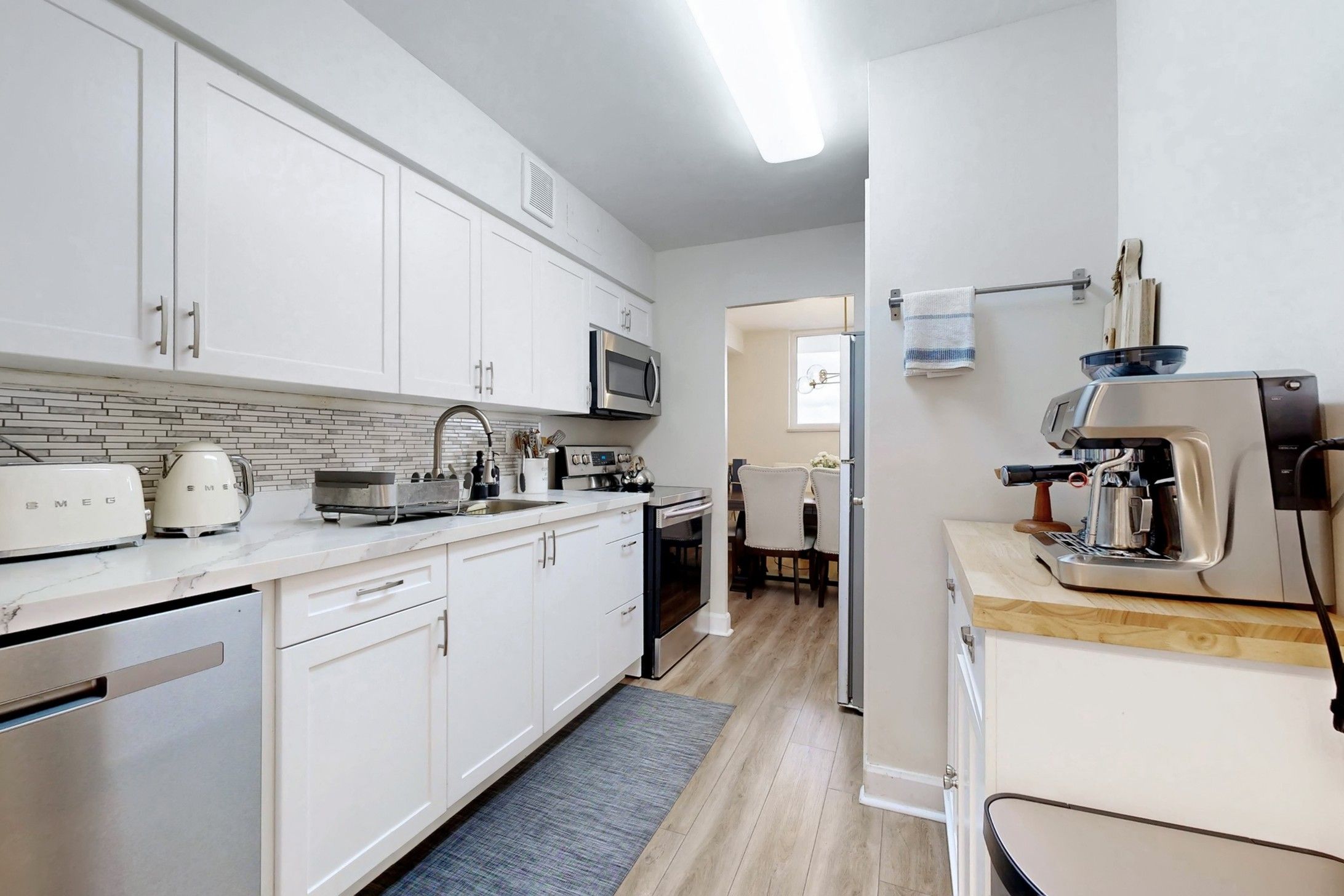 • Sleek kitchen equipped with stainless steel appliances and modern finishes.