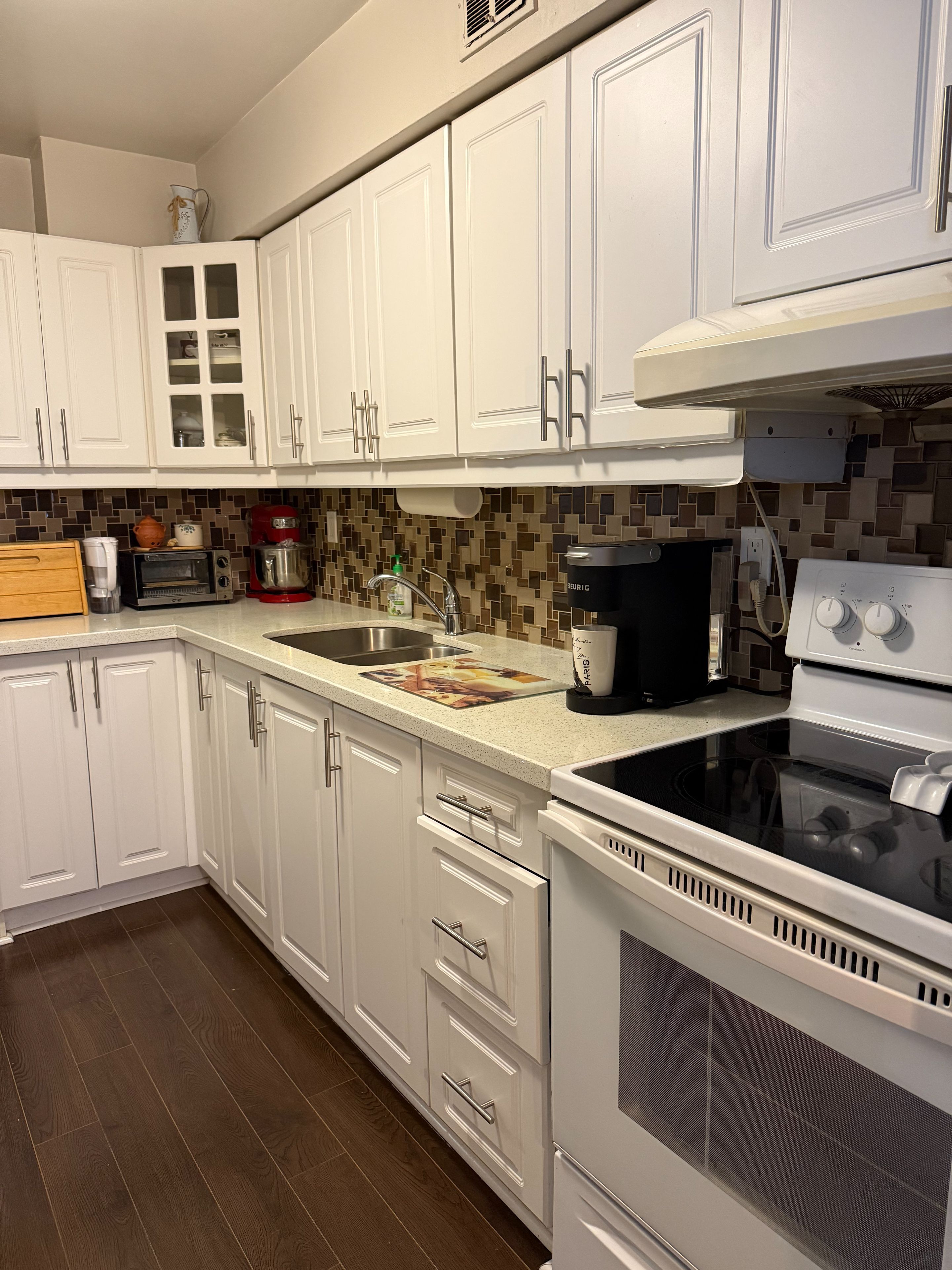 • Upgraded kitchen featuring granite counters and laminate flooring throughout.
