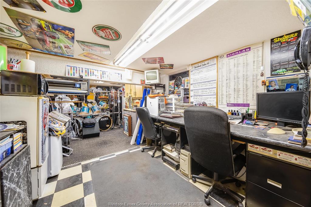 Welcome to 1354 st. Luke, windsor—a rare 2-for-1 opportunity offering a well-kept home plus an impressive heated cinder block shop with serious work-from-home and hobby potential. The shop is approx. 24’ x 28’ and packed with function: overhead bay door and drive-in access for easy loading/unloading, high ceilings for larger equipment and projects, an i-beam trolley hoist, and a loft area perfect for office/storage. Power users will love the highly desirable 3-phase / 600 amp service—ideal for tools, equipment, or business operations. Outside, enjoy a covered courtyard with a 4” concrete floor and plumbing roughed-in for radiant floor heat, creating a sheltered space to work or entertain. Inside the home, the layout is practical and comfortable: dining room flows to a spacious living room, primary bedroom on the main floor, and the kitchen, laundry, and full bathroom all on the main level. Upstairs offers a bedroom plus office space that could potentially serve as an additional bedroom, studio, or flex room. Updates include a newer steel roof and clean laminate flooring, making it easy to move in and add your own style. Whether you need a workshop, extra storage, or a dedicated workspace, this property delivers a hard-to-find mix of livability and capability. The high ceilings and loft create flexible zones for an office, inventory, or storage, and the heated block construction helps keep the space usable year-round. The courtyard’s concrete pad and future radiant-heat option add versatility for projects, outdoor tools, or a covered hangout. This is the kind of property that supports big ideas—set up a studio or production space, or simply enjoy extra room to build and create.