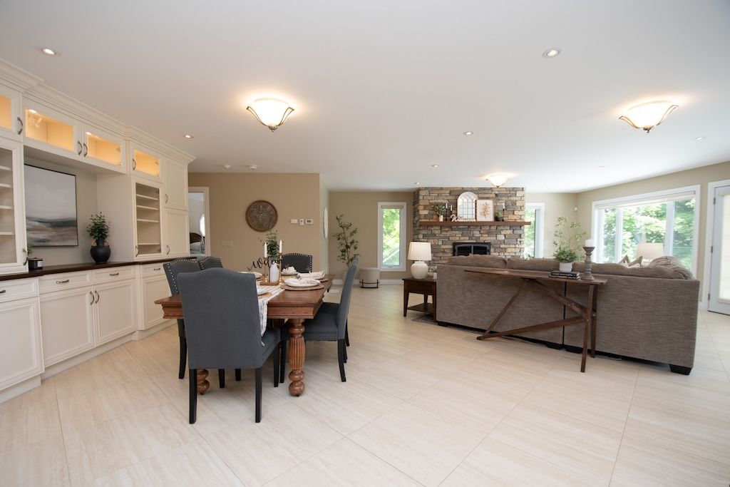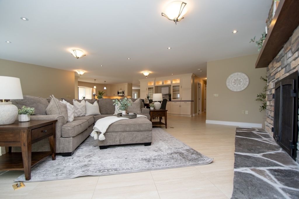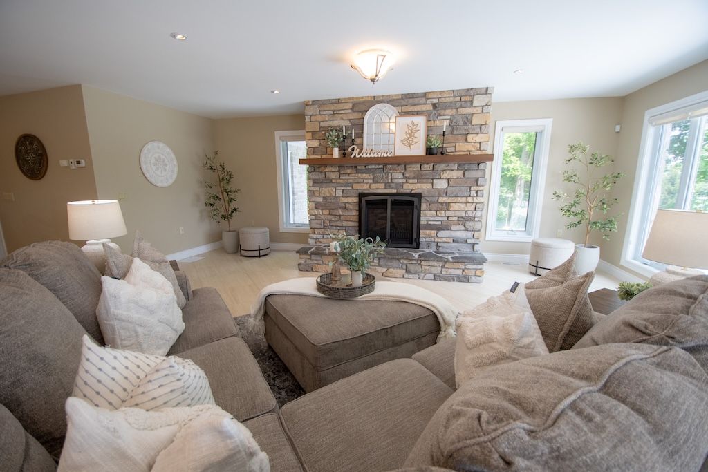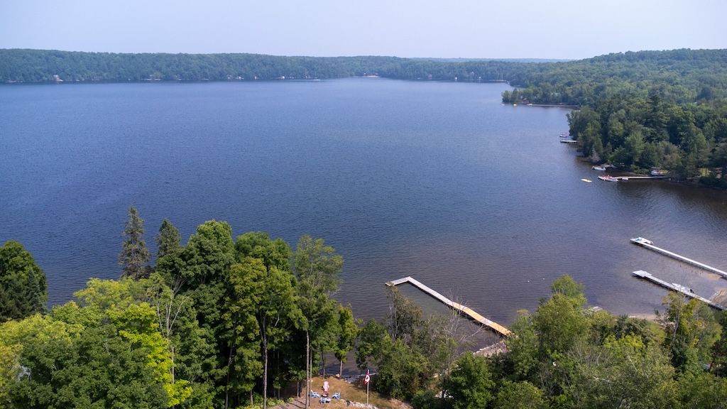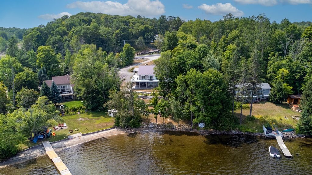 Welcome to 13540 highway 35, minden -a spectacular executive retreat on mountain lake. This custom-built, 3-bedroom, 2-bath executive home offers over 3,000 sq ft of luxurious year round living space with stunning views and direct frontage on the pristine waters of mountain lake. Just minutes to the quaint town of minden, with shops, chain stores and a hospital for all your needs and wants! Step inside to a bright, open-concept main floor featuring a dream kitchen with granite countertops, a large breakfast bar, and custom cabinetry perfect for entertaining. The spacious living room with fireplace walks out to a massive lake-facing wrap around composite deck with sleek glass railings and in deck lighting, ideal for enjoying breathtaking sunrises and panoramic views. The private sitting room and the elegant primary suite both offer walkouts to the deck, creating seamless indoor-outdoor living. The fully finished lower level boasts a cozy efficient wood-burning fireplace insert, two generously sized bedrooms, and multiple walkouts to interlock patio. From here, enjoy the meticulously tiered and landscaped lot, complete with gabion stone walls, perennial gardens, walkways, a firepit area, and beautiful shoreline access. Additional highlights include tiled in-floor heating throughout the entire living area as well as high-efficiency forced air furnace & central air conditioning. Durable stone exterior with metal tile roofing, oversized double garage with plenty of storage and private access to the basement. Whether you're looking for a peaceful year-round residence or a luxury waterfront getaway, this one-of-a-kind property delivers elegance, comfort, and natural beauty in equal measure.