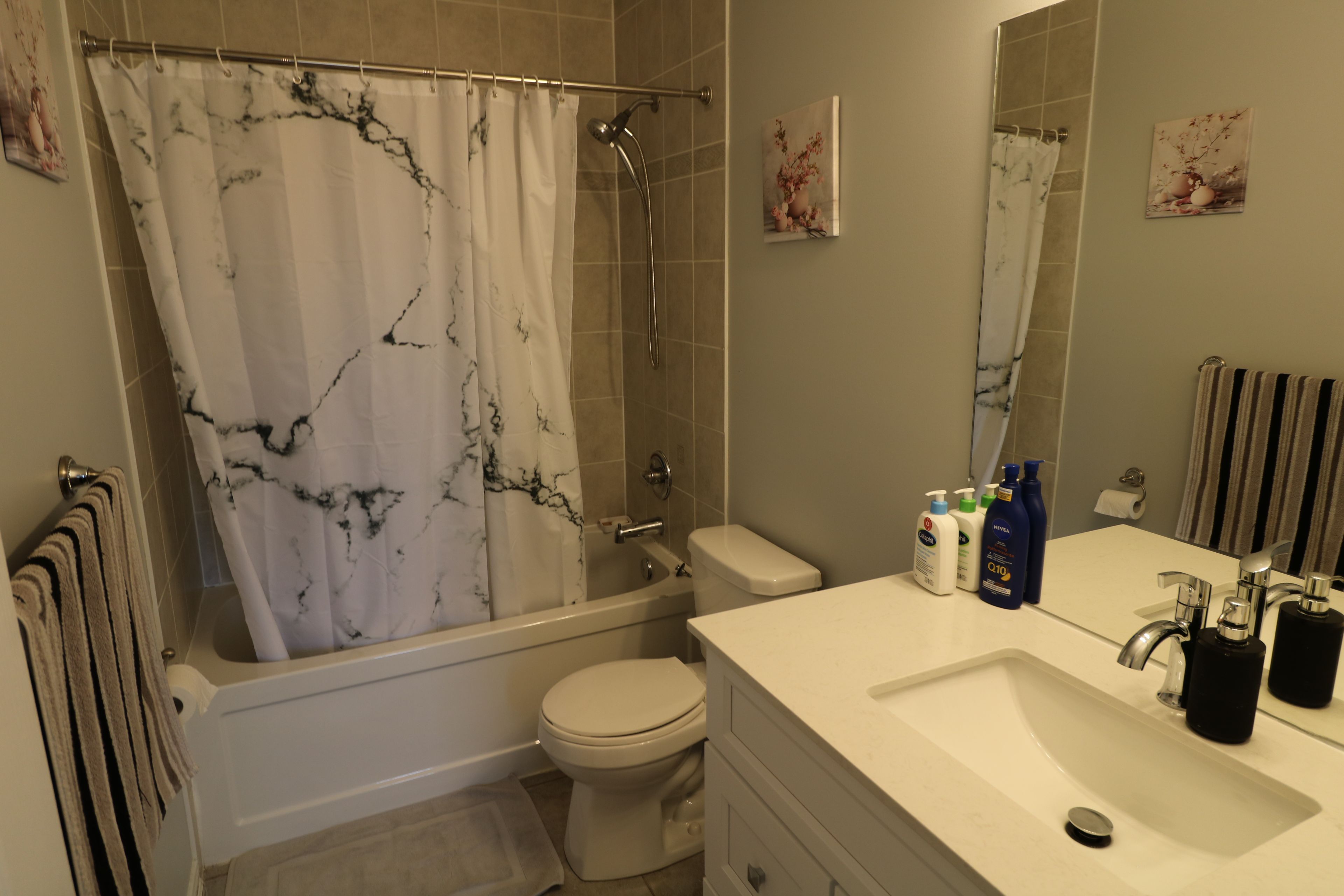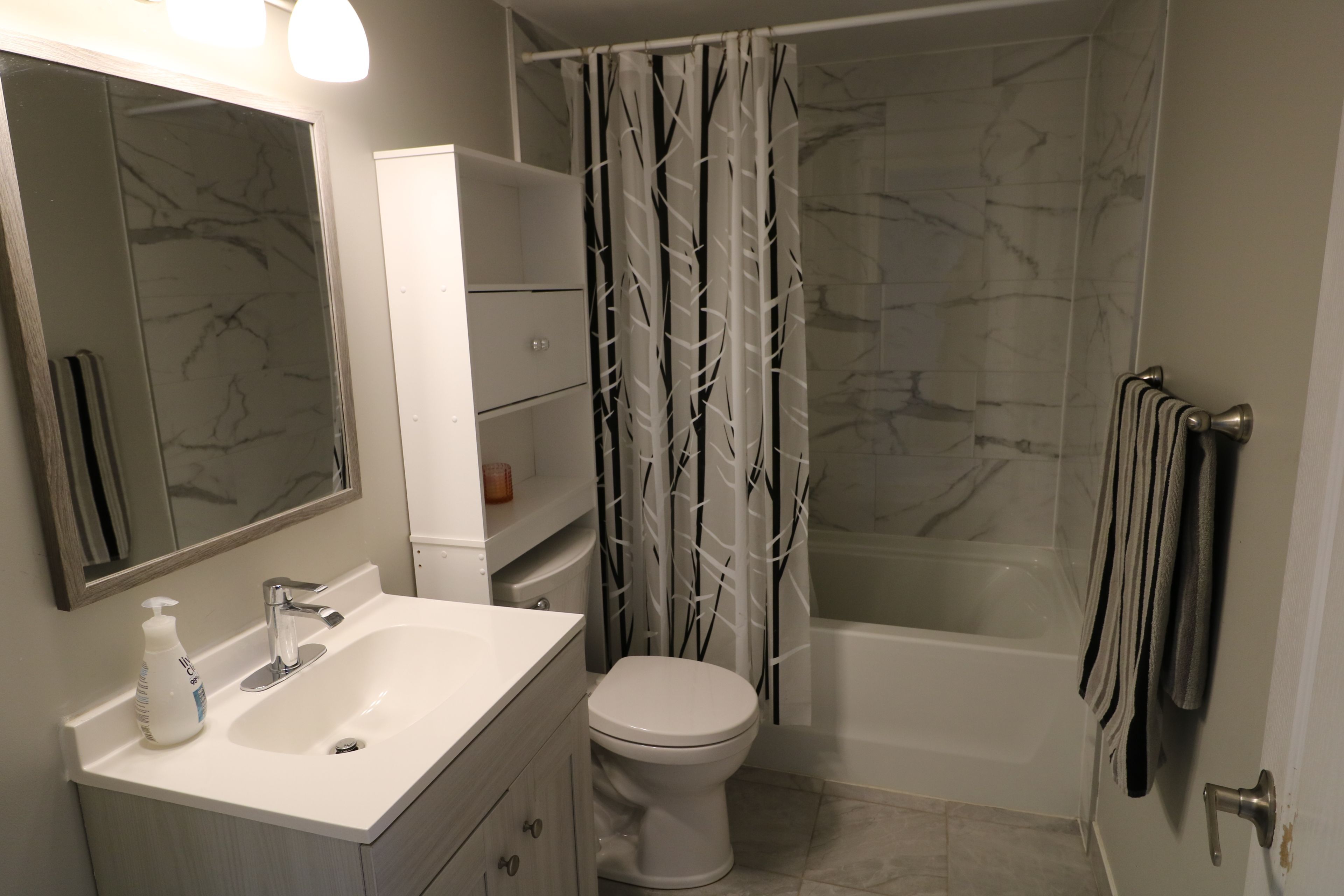 • Renovated main foyer with new tile floor and added bath.