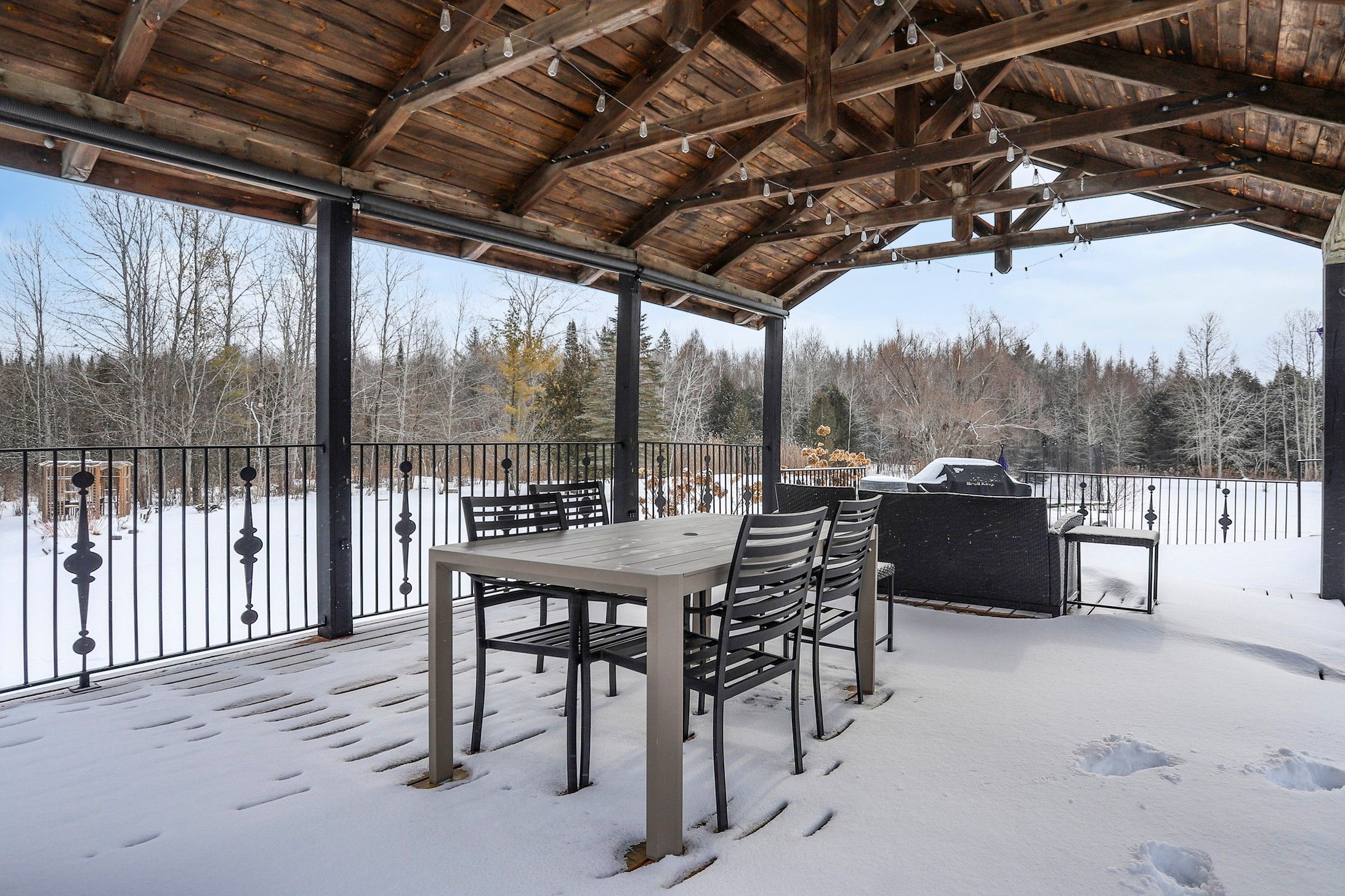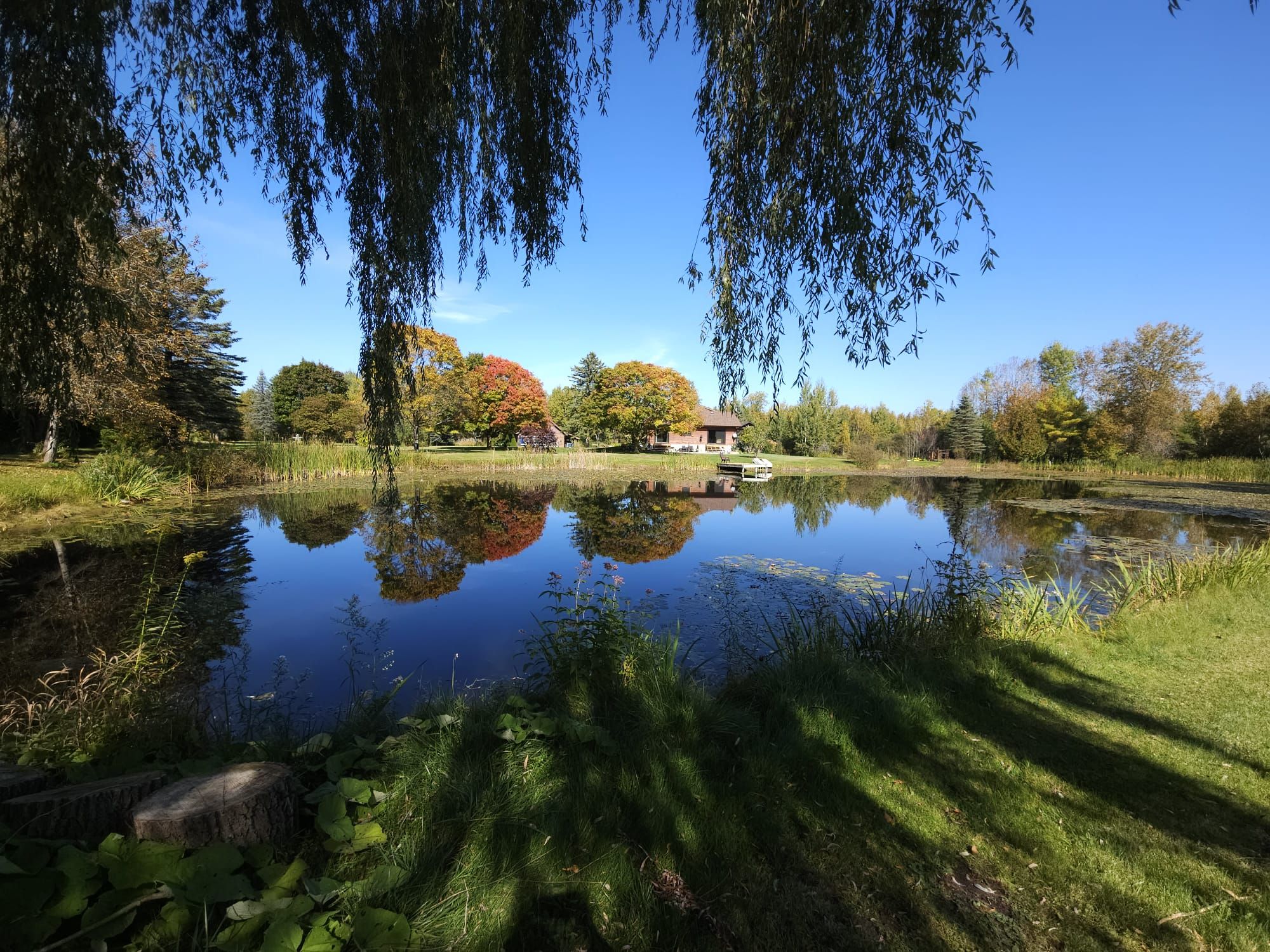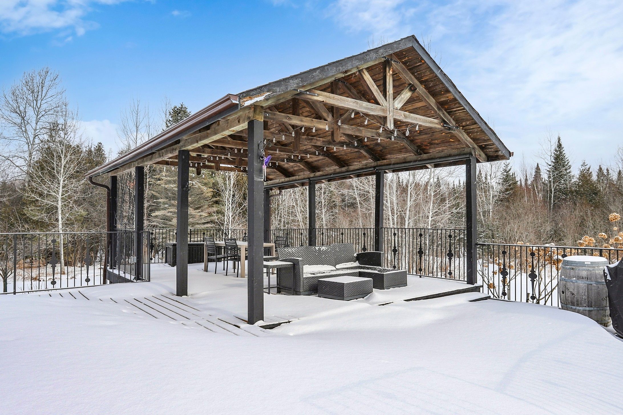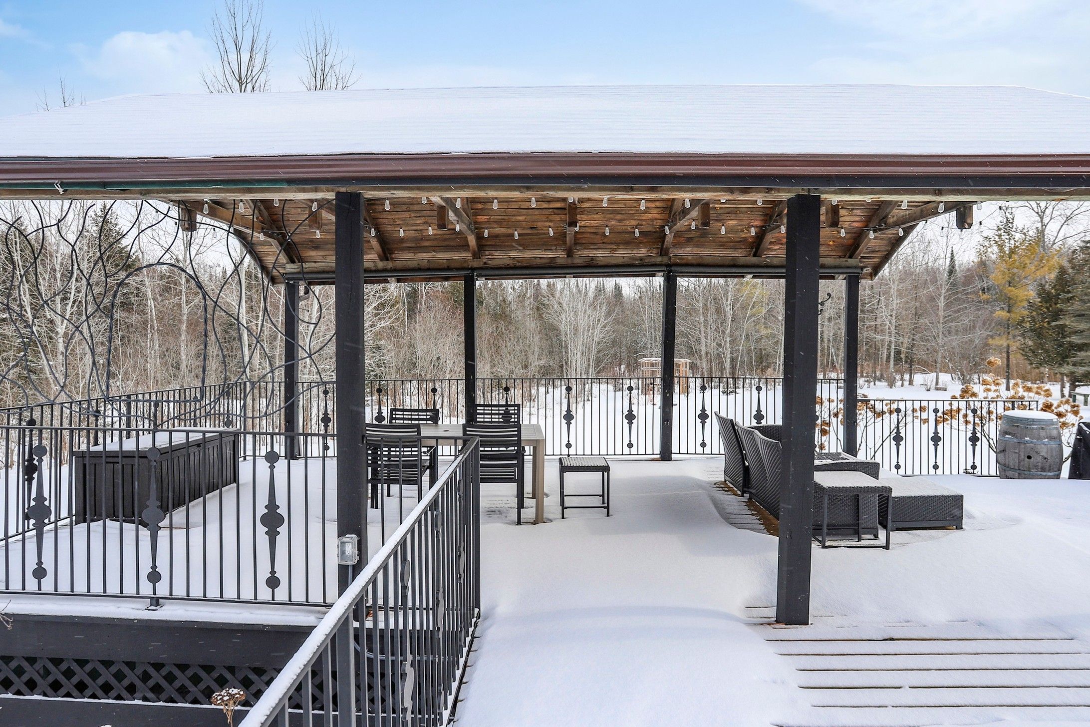 • Custom 1,350 sqft sun deck and gazebo overlooking a pond.