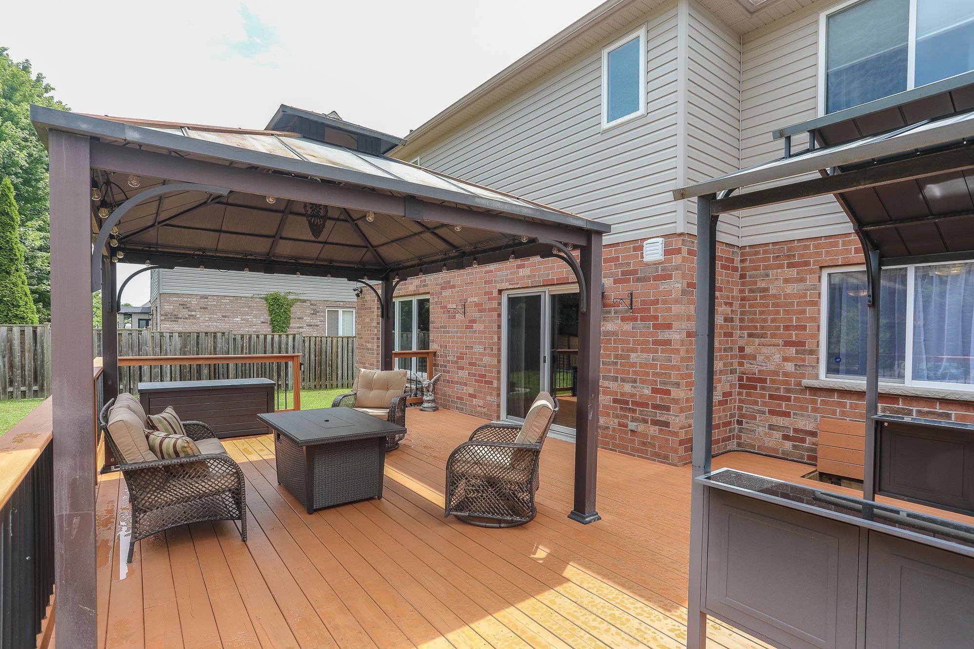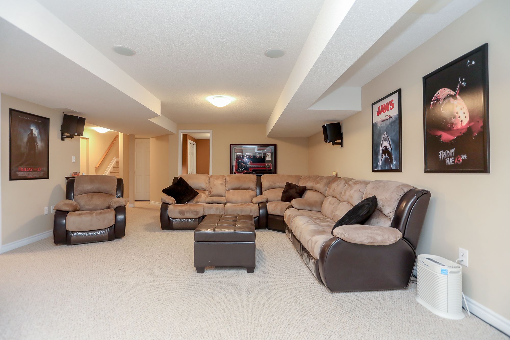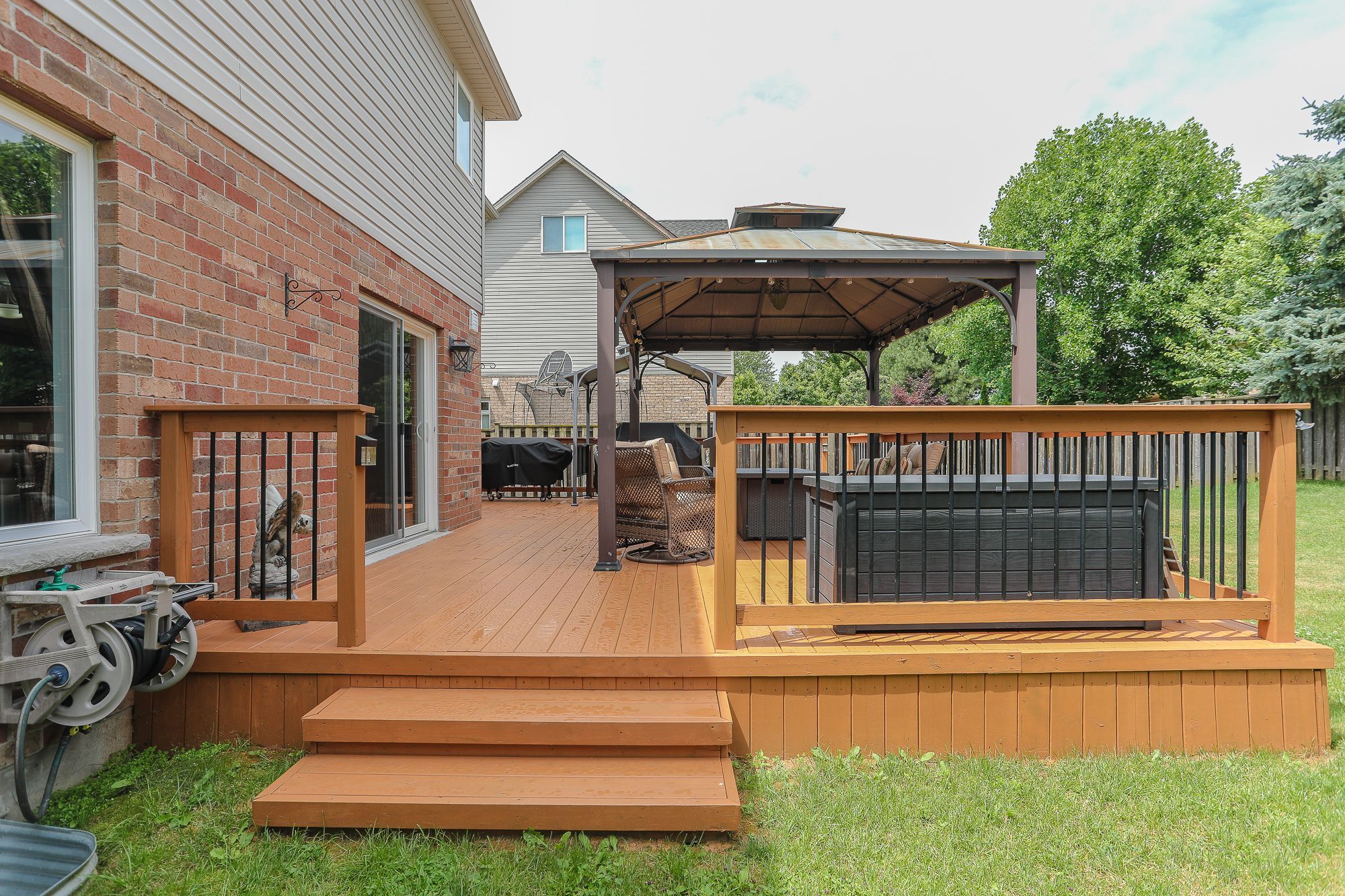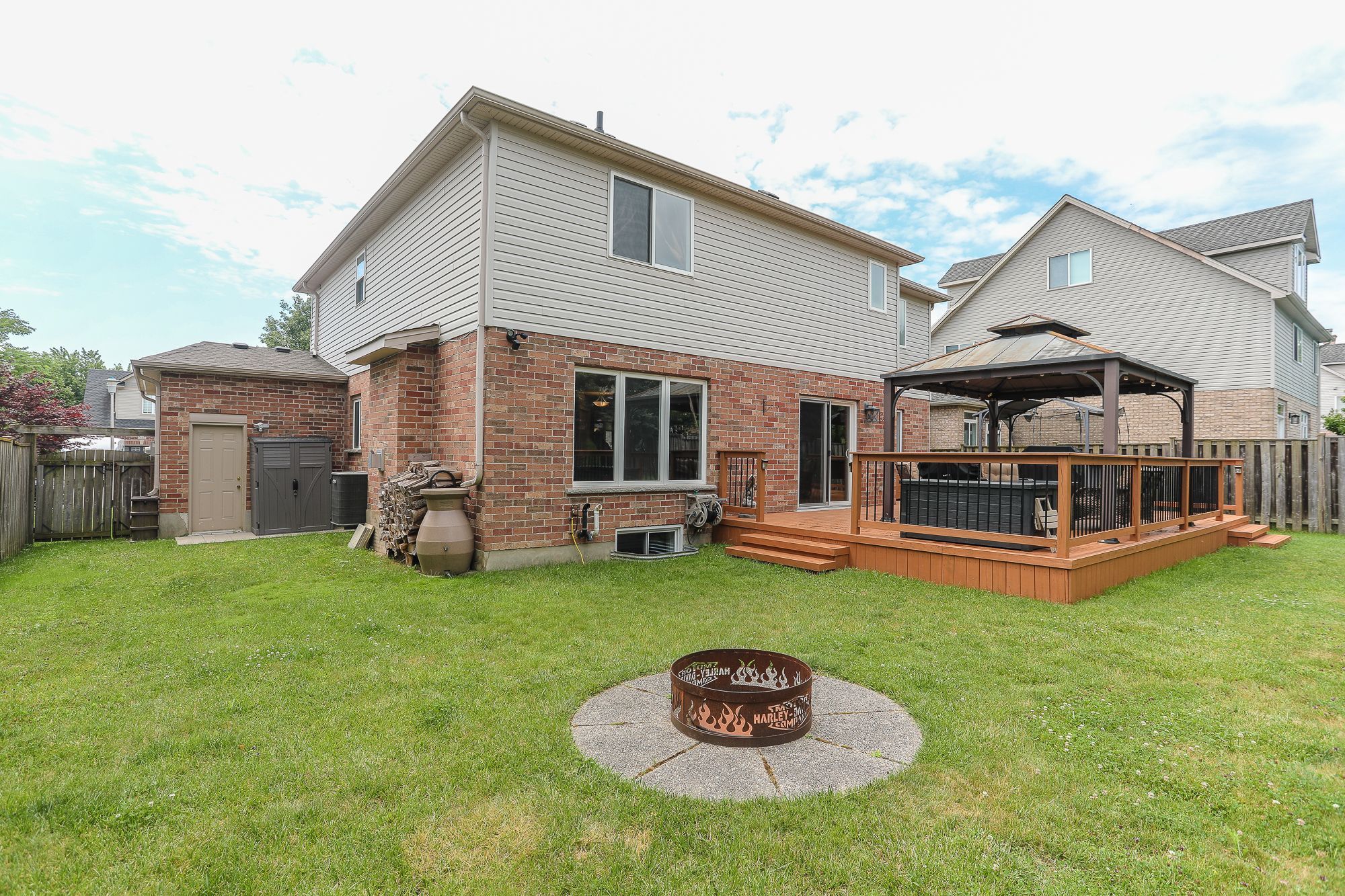 Welcome to this impeccably maintained and spacious byron residence, ideally situated just steps from byron sports park and a short drive to boler mountain. The main floor offers a formal living room with a striking cathedral ceiling and a separate dining room, perfect for hosting family gatherings or formal dinners. At the heart of the home, the open-concept great room features a generous kitchen, dining area, and a family room with a gas fireplace, creating a seamless space for both everyday living and entertaining. A convenient powder room, main floor laundry, and inside access to a triple-car garage with a professionally installed ev charger add to the functionality of this level. Upstairs, a grand open staircase leads to four spacious bedrooms, including a well-appointed primary suite with a walk-in closet and private ensuite. All second floor bedroom window replaced this past summer. The fully finished lower level offers exceptional versatility, featuring a large recreation room, two additional bedrooms or home offices, a full bathroom, and a cold storage room. Outdoors, the beautifully landscaped, pool-sized backyard is an inviting retreat, complete with a deck (installed in 2020), gazebo, full fencing, and a natural gas bbq hookup. Additional highlights include: all appliances, central vac, and bbq cover included. Shingles replaced in 2020 with a 50-year transferable warranty. House was recently upgraded to hi speed fibre optic internet. Surround sound speakers in the basement (negotiable). With its thoughtful layout, numerous updates, and prime location, this property is an exceptional opportunity for discerning buyers. Closing is flexible!