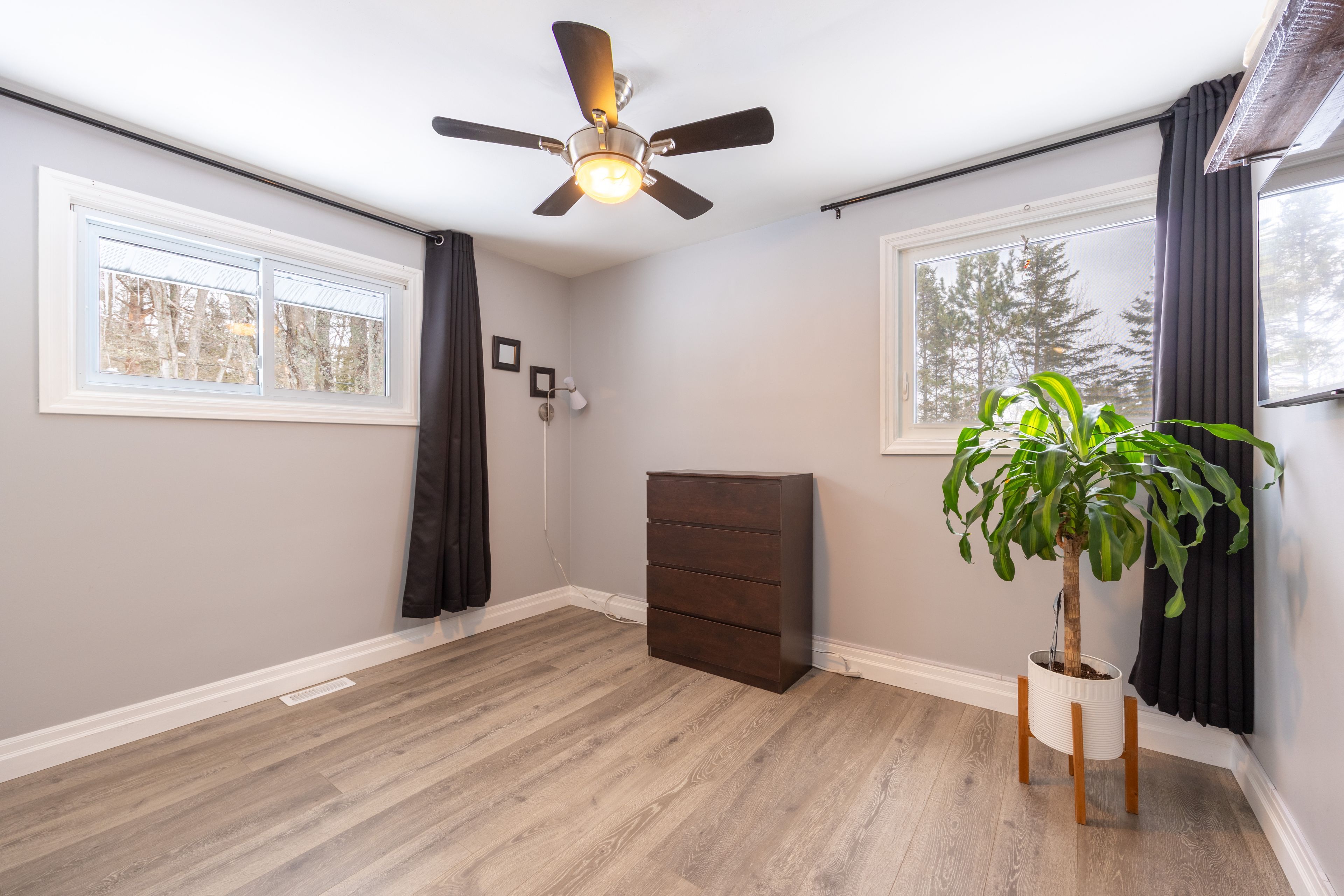 Welcome to this cute and turnkey 3+1 bedroom, 2 bathroom, 1,000 sf bungalow with 2 garages. Located on a beautiful country lot with mature trees and open space in east ferris less than 15 min to north bay and a short drive to local schools and area lakes. Enter via the covered side door or via the front patio into the custom kitchen with dining area. A large bright rec room overlooking the rear yard with patio doors to the spacious deck. 3 main floor bedrooms with the primary featuring double windows and plenty of space. 3pc bath with walk-in shower. The lower level offers a cozy rec room, 4th bedroom or home gym area, laundry room, large utility/storage area as well as a small cold cellar. The exterior features plenty of parking, an attached garage connected by a covered breezeway, as well as a detached 1. 5 car garage with power, ideal for extra toy storage or potential workspace. There is a fenced in garden and plenty of space for kids or pets to play. All appliances included and the property was extensively renovated late fall 2020/spring 2021. This is a great space and location to call home.