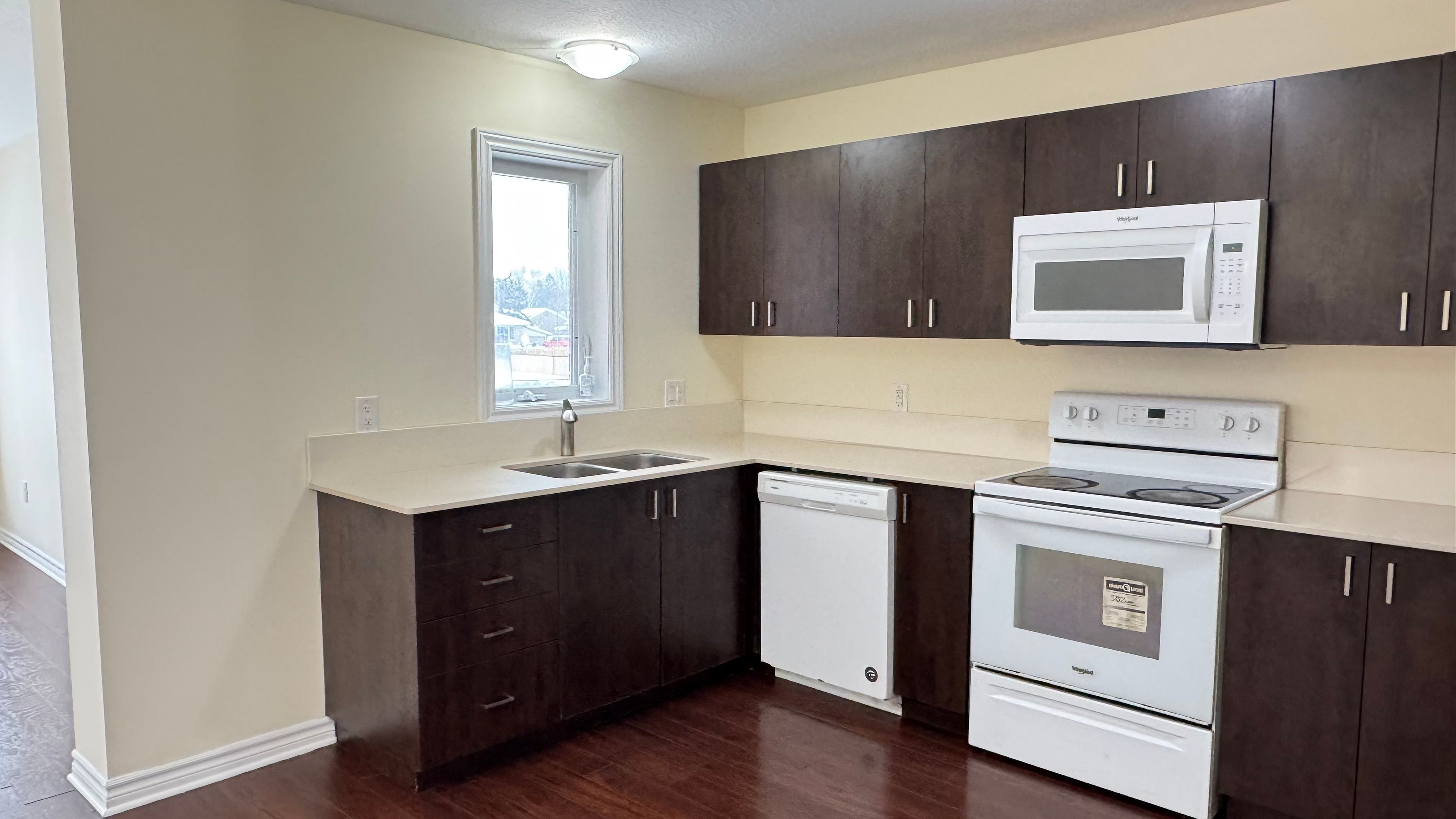 Freehold townhouse (no fees) offering 3+2 bedrooms and 4 bathrooms, beautifully upgraded and move-in ready in a sought-after family-friendly neighbourhood near fanshawe college, parks, transit, and shopping. This bright 2-storey home features an open-concept main floor with high-end finishes, fresh paint throughout, and abundant natural light, while the second level showcases brand-new laminate flooring and a spacious primary bedroom. The fully finished basement adds exceptional versatility with two additional bedrooms and a full bathroom, ideal for guests, home office, or extended family. Complete with a double-car garage, ample driveway parking, and a private rear yard backing onto open green space, this meticulously maintained freehold home offers space, privacy, and no monthly fees.