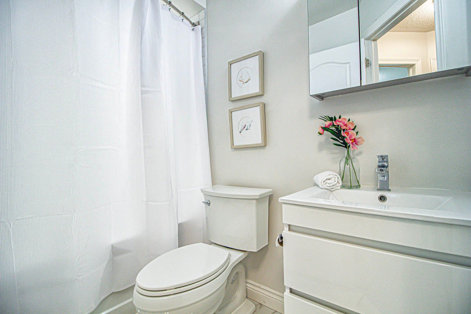Absolutely stunning fully renovated home!!! Discover this radiant, bright, all above ground freehold townhouse, brimming with upgrades, including soaring 9-foot ceilings on the main floor. The heart of the home is its modern, renovated, family-friendly kitchen, complete with a stylish backsplash, ample pantry, sleek under-cabinet lighting, and a cozy eat-in area. Step into the elegant living and dining room, where gleaming upgraded floors and painted railings, striking tile accents create an inviting vibe plus a beautifully refreshed powder room. Retreat to the generous primary suite, featuring a walk-in closet and a spa-like 4-piece ensuite. Two more well-sized bedrooms share a fully updated 4-piece bathroom. The versatile finished ground floor level opens via walk-out to a private, fully fenced backyard, ideal for relaxation or play. Enjoy low-maintenance living with just a $102 monthly potl road maintenance fee. Plus lots of visitor parking! Perfectly located in a prime spot near schools, steps to the park, vibrant shopping, easy transit, and major highways. Don't miss this incredible gem!!