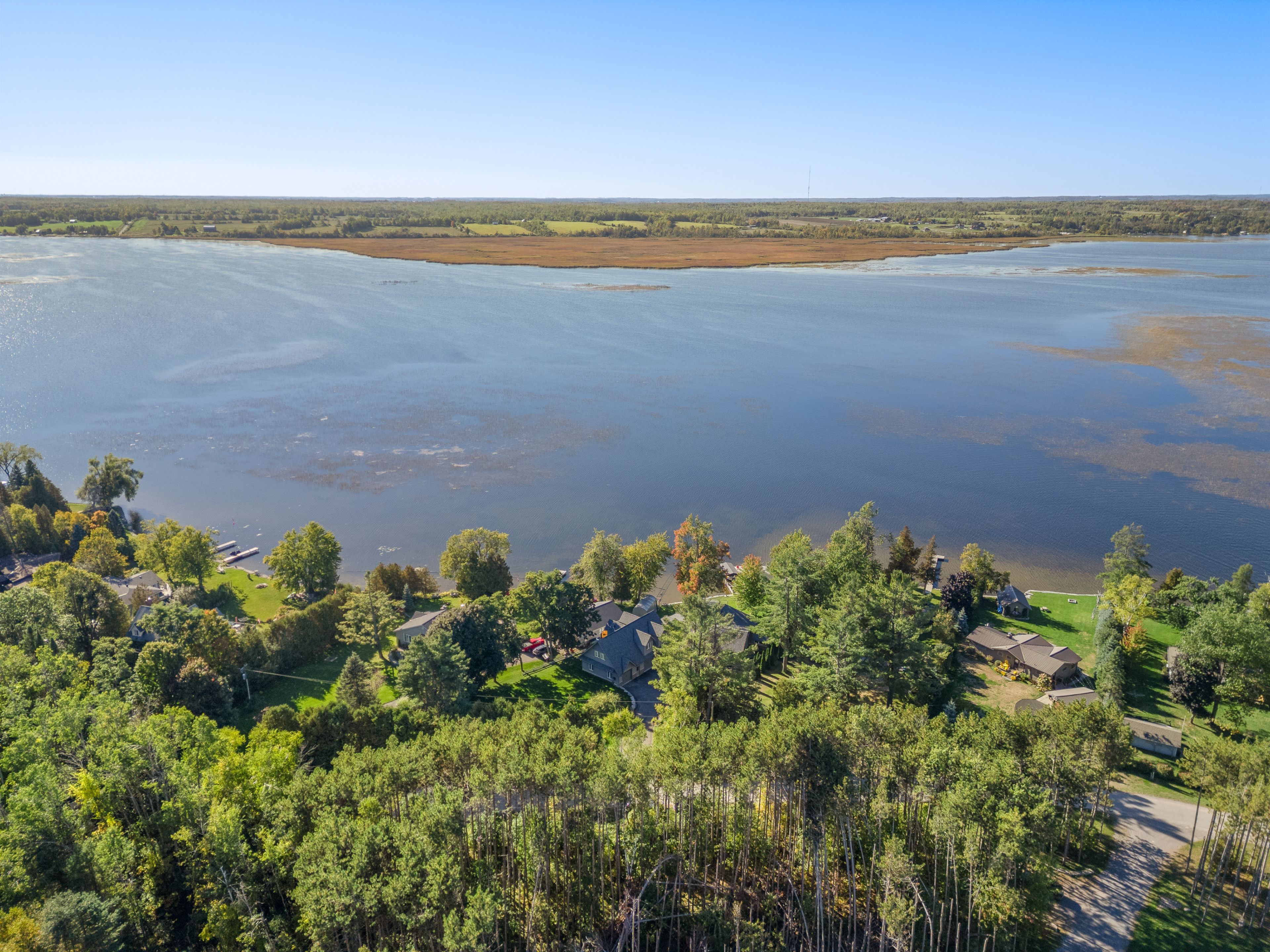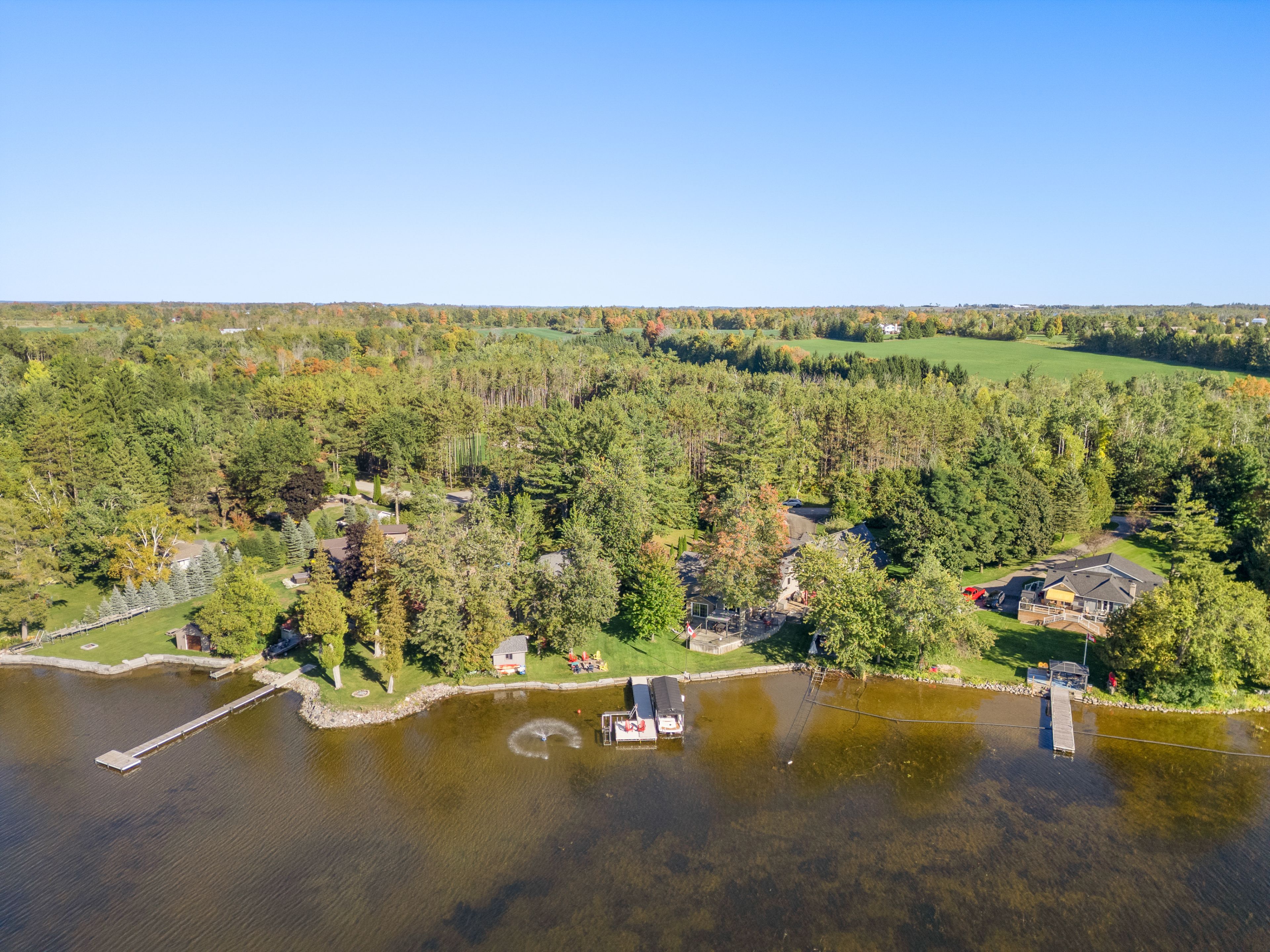 • 151 FT of prime waterfront on Pigeon Lake for breathtaking views.