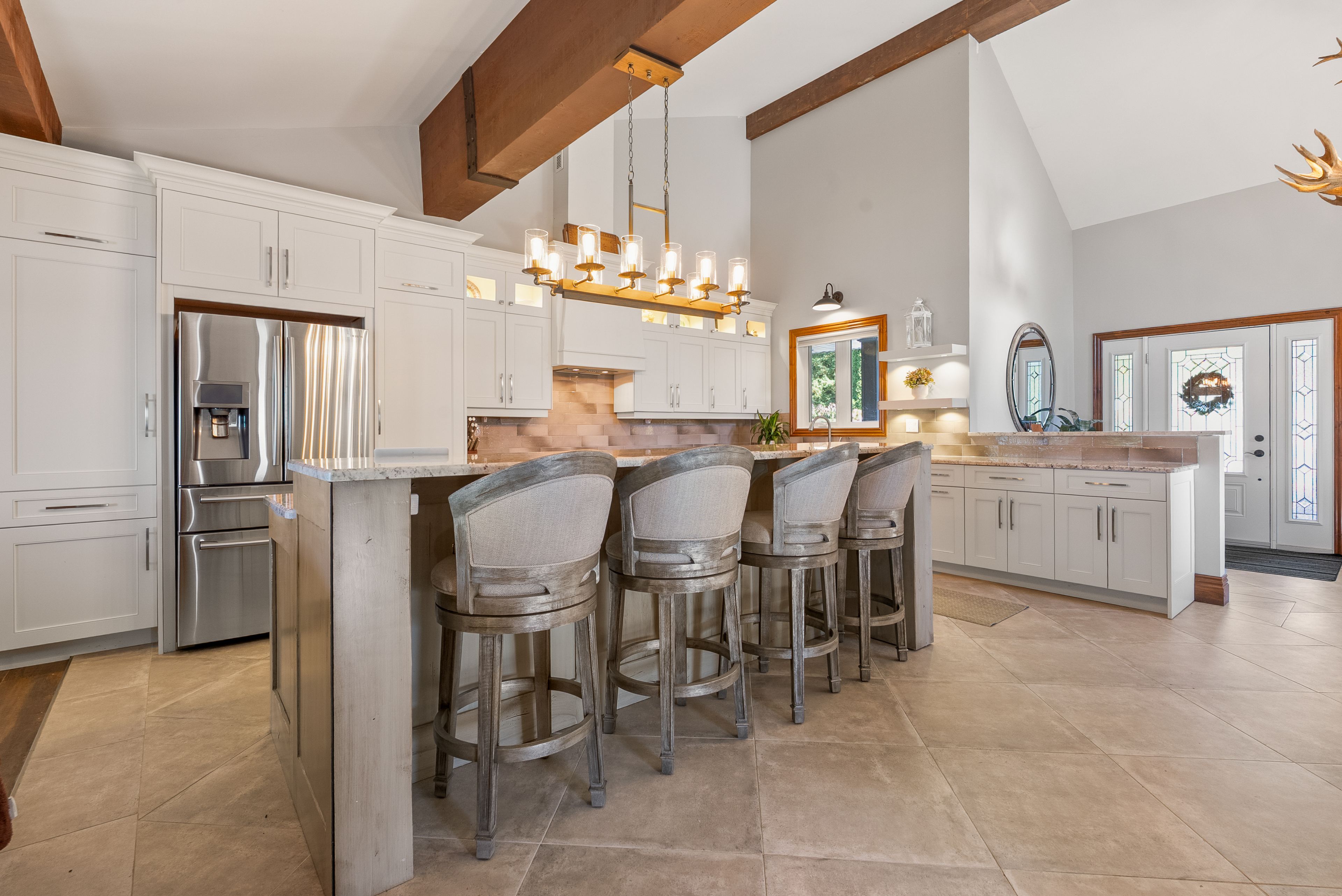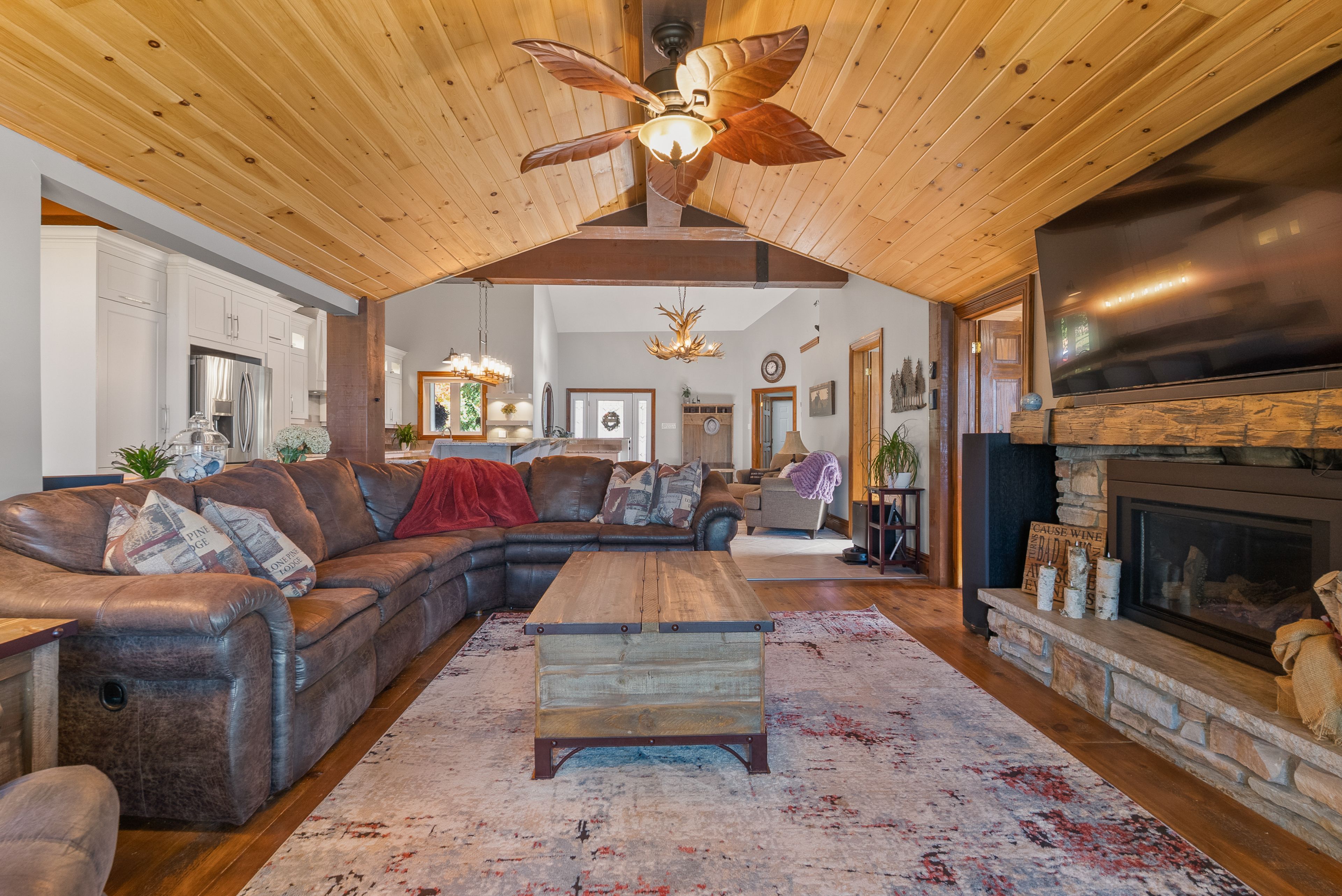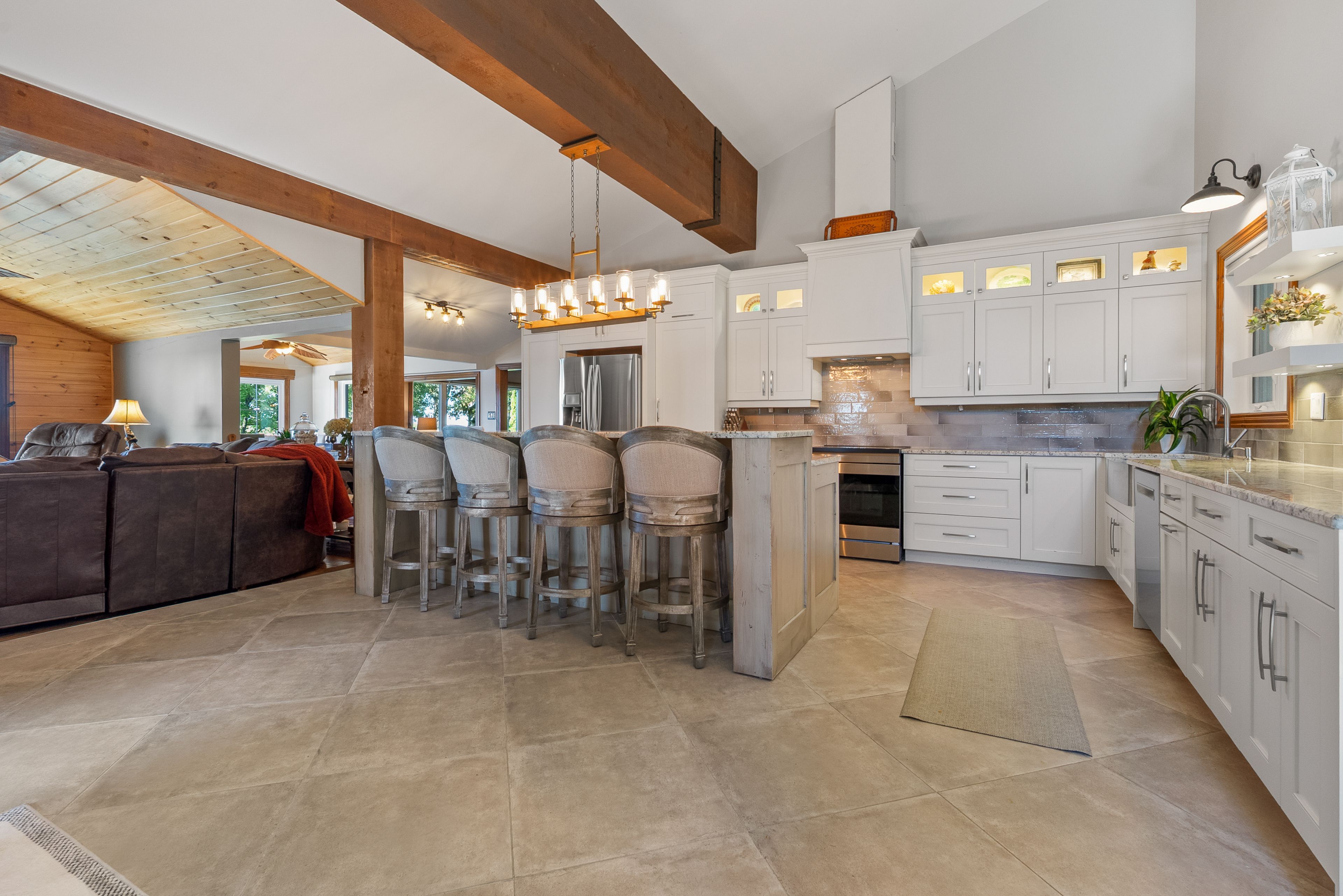 151 ft of prime waterfront on pigeon lake. 3 bedrooms, 3 baths - 3,597 sq ft of finished living space. Spectacular views of sunsets from the hot tub or anywhere on the large deck over the water. Enjoy morning coffee overlooking the lake, or relax under the covered porch with views of the beautiful landscaping. Entertain friends and family around the 9-ft island, on the spacious deck, or by the waterside firepit. The primary bedroom offers a gorgeous lake view with a beautiful ensuite attached and added space currently used as an office/gym. The sandy waterfront is great for swimming, relaxing, and lakeside enjoyment. Boat lift keeps your boat clean and makes spring/fall access easy. Heated garage/workshop with direct house entry means never getting into a cold snowy car. Private setting on a dead-end road, with a sprinkler system fed from the lake to keep lawns and gardens pristine. Snowmobiling, fishing and ice fishing right from the property. Close to shopping, top-notch hospital, golf courses, and the communities of ennismore and bridgenorth with year-round activities.