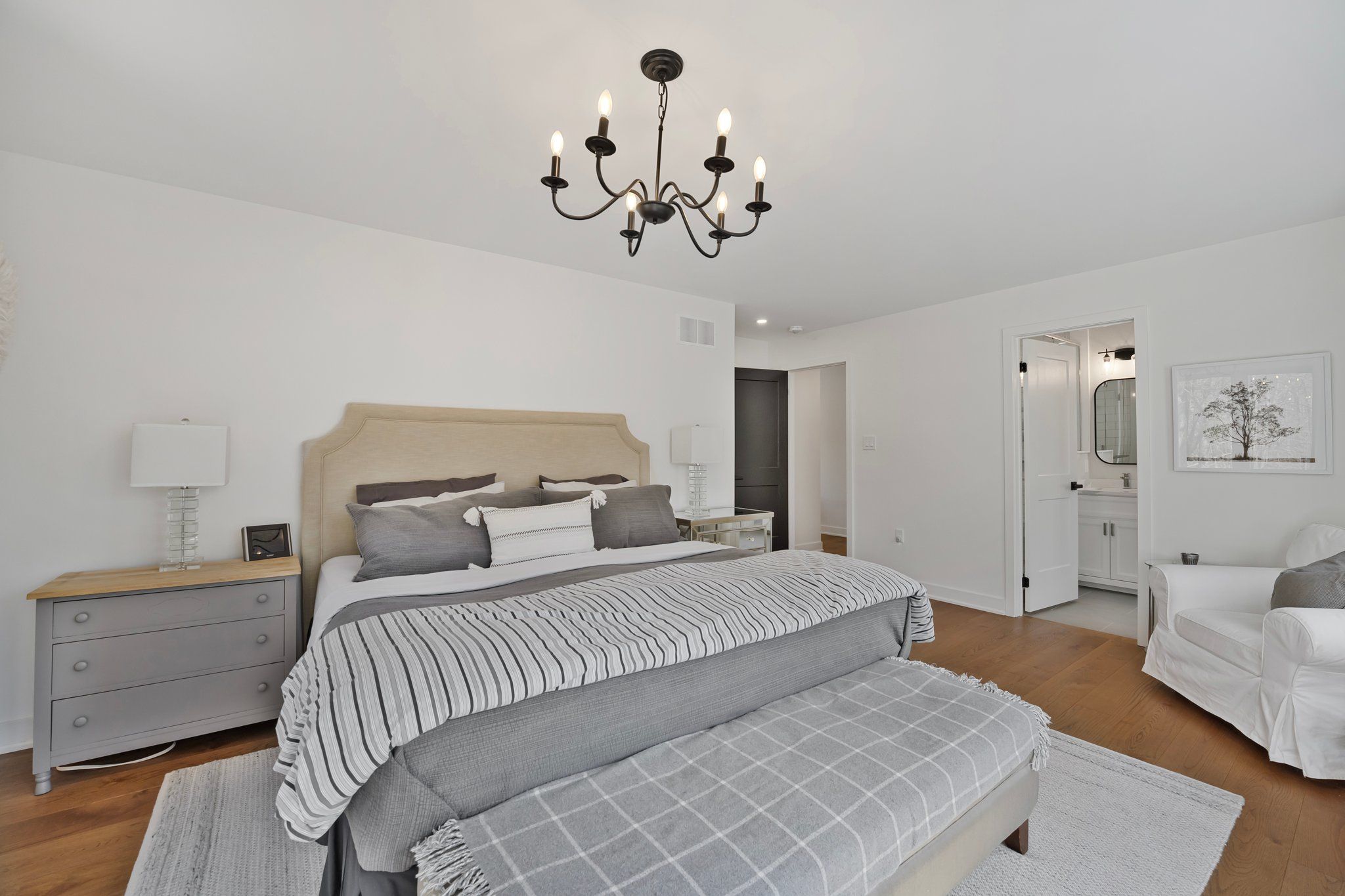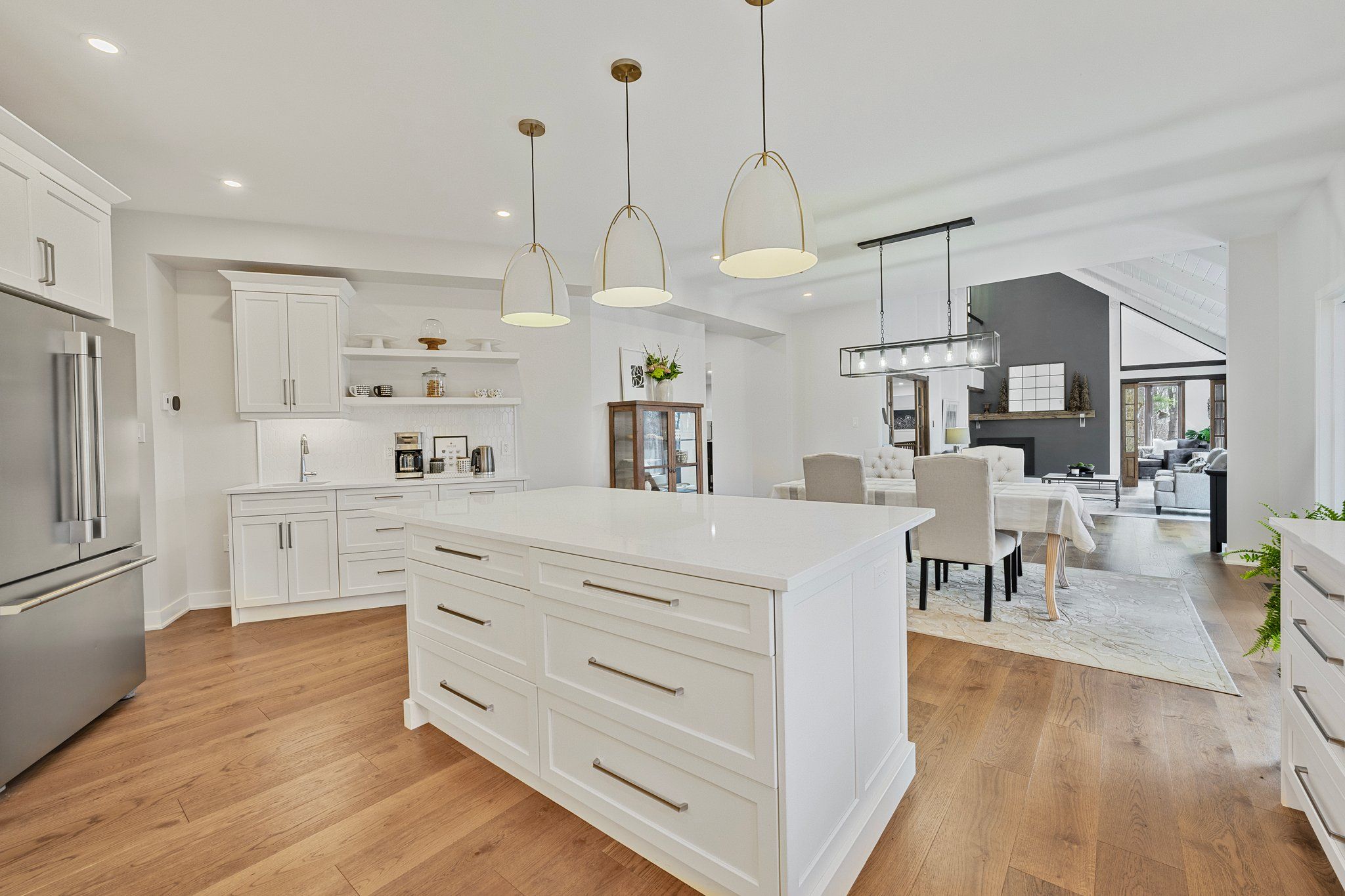 • Chef's kitchen with high-end appliances and quartz counters.