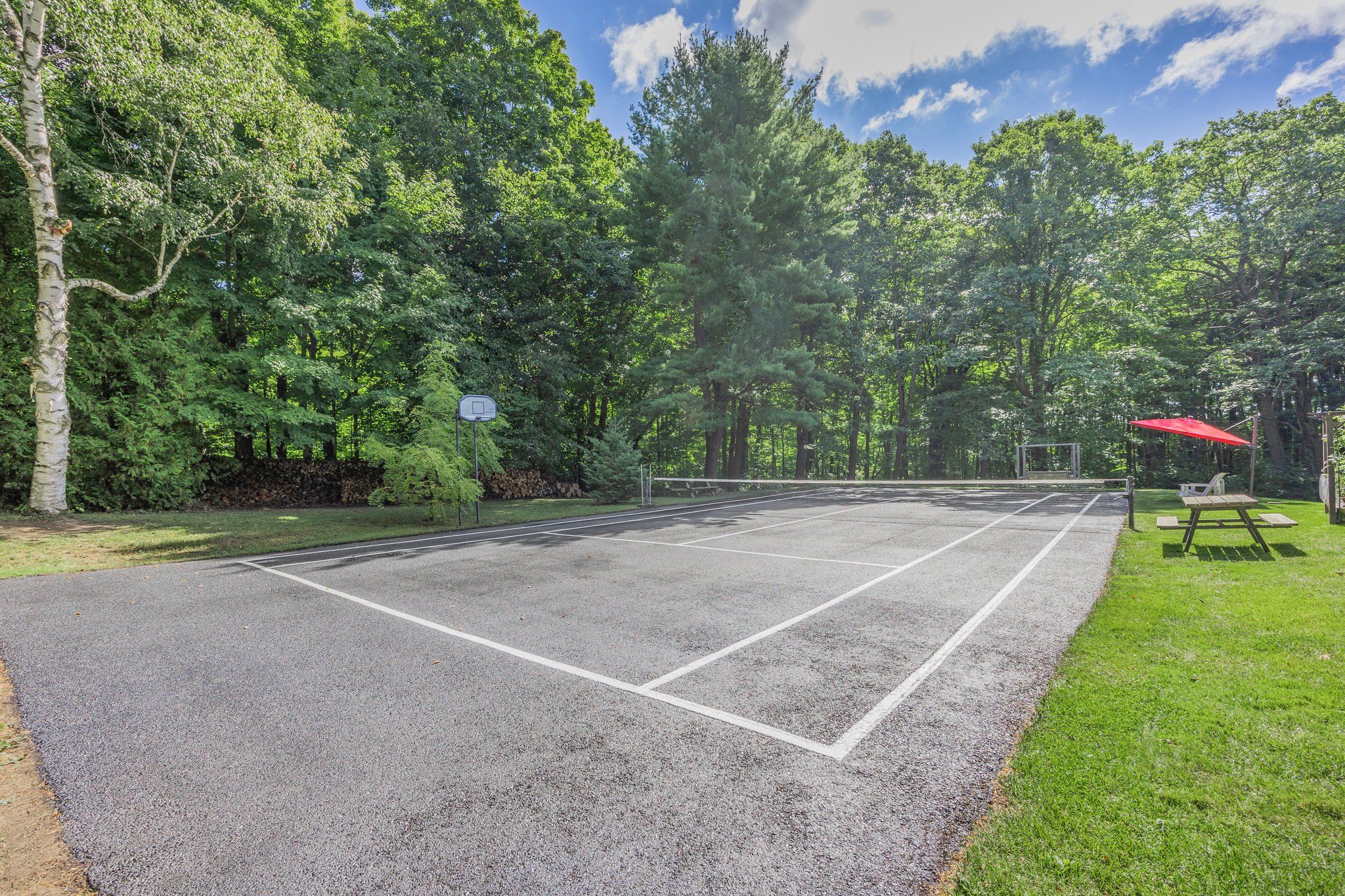 • Outdoor features include a tennis court and landscaped backyard.
