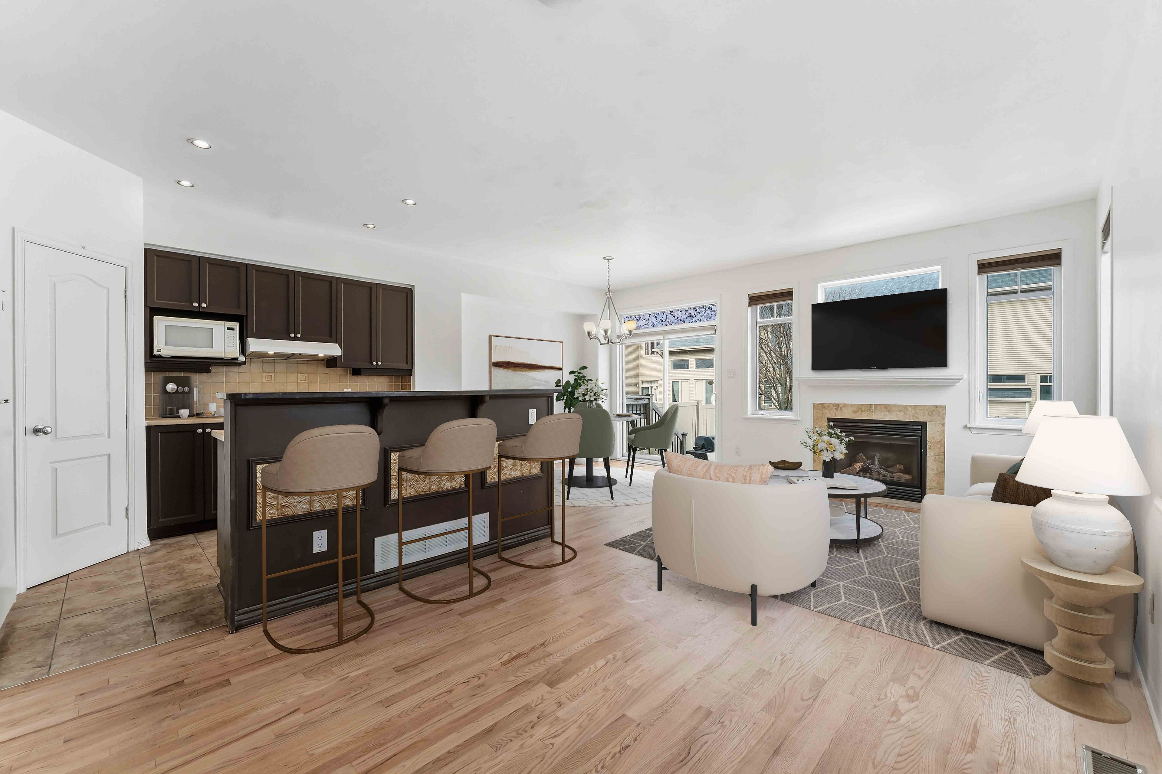 Welcome to 136 calaveras avenue-an exceptional and rarely offered end-unit townhome situated on a premium corner lot, complete with a full double garage. Ideally located close to top-rated elementary and secondary schools, parks, public transit, and shopping, this well-appointed 3-bedroom home offers both convenience and comfort. The main floor features a bright, open-concept layout with an l-shaped living and dining area, highlighted by a cozy gas fireplace. The kitchen is equipped with upgraded cabinetry and a practical pantry, perfect for everyday living. Upstairs, you'll find a spacious primary bedroom with a walk-in closet and a 3-piece ensuite, along with two additional bedrooms, a full main bathroom, and a conveniently located laundry room. The professionally finished basement, built by the builder offers additional living space, including a large recreation room with a second fireplace and a 3-piece bathroom-ideal for entertaining or extended family use. The exterior is beautifully landscaped with extensive interlock and flower beds, and the fully fenced pvc yard provides both privacy and low maintenance. A large storage shed adds further functionality. Recent updates include: a new range hood (2026), dual gas and electrical outlets behind the stove, a new automatic garage door (2026), fresh paint throughout the home (2026), new wood flooring in the basement (2026), refinished kitchen cabinetry (2026), fireplace maintenance in the family room, and refreshed flooring and paint in the family room. This home truly offers a combination of thoughtful upgrades, excellent condition, and a highly desirable location-move-in ready for its next owner. Note: some furniture shown in the photos has been virtually staged.