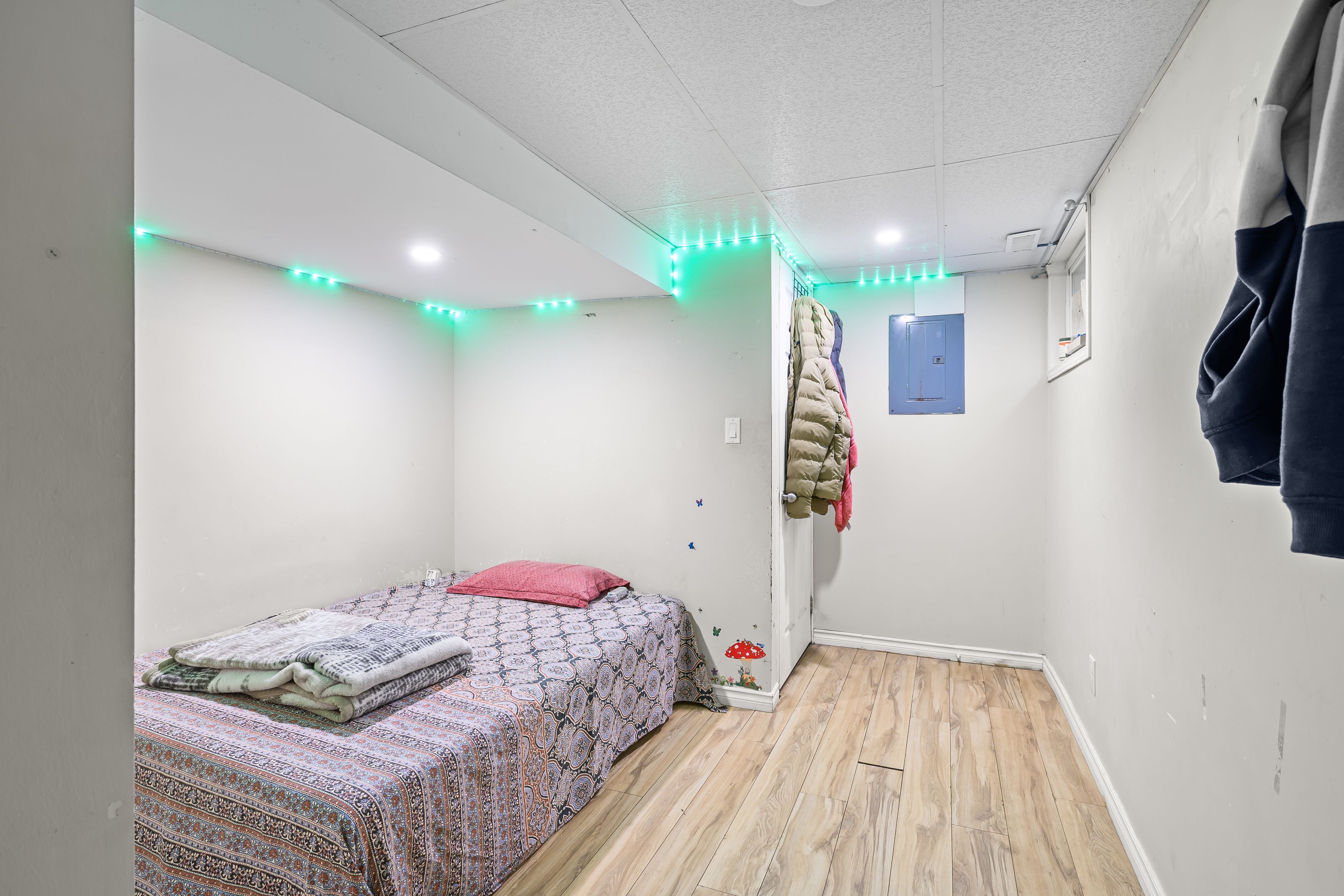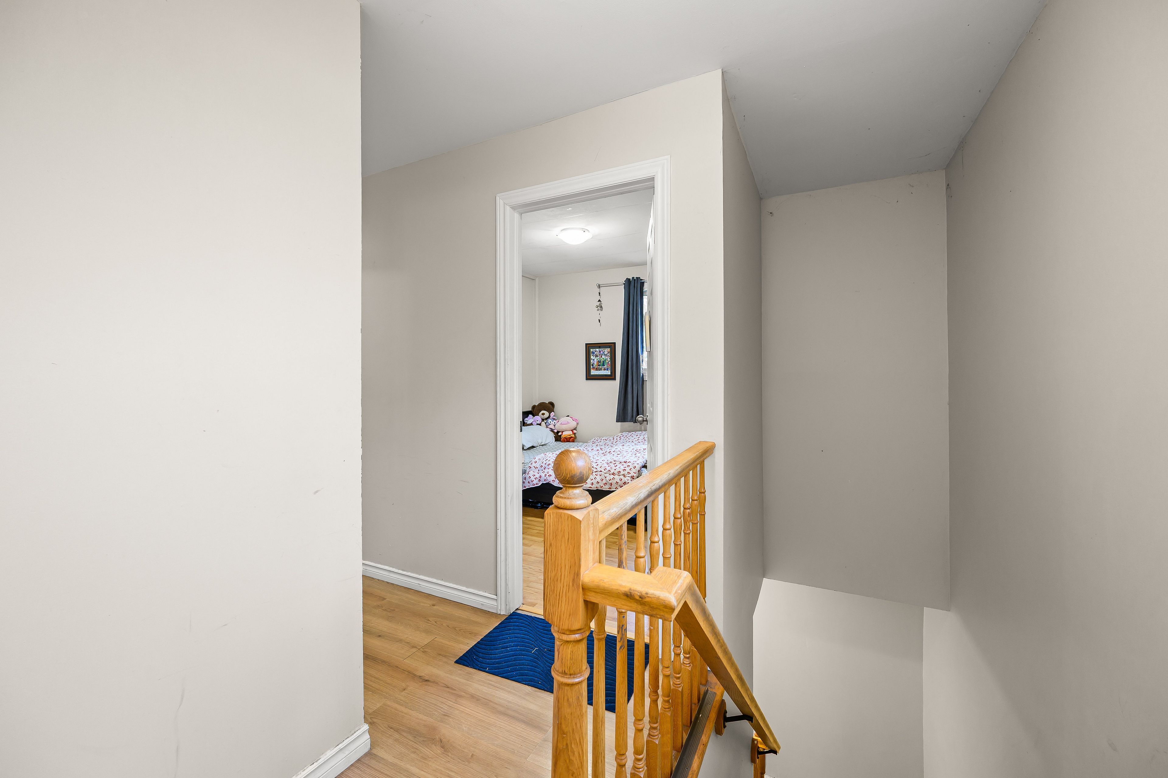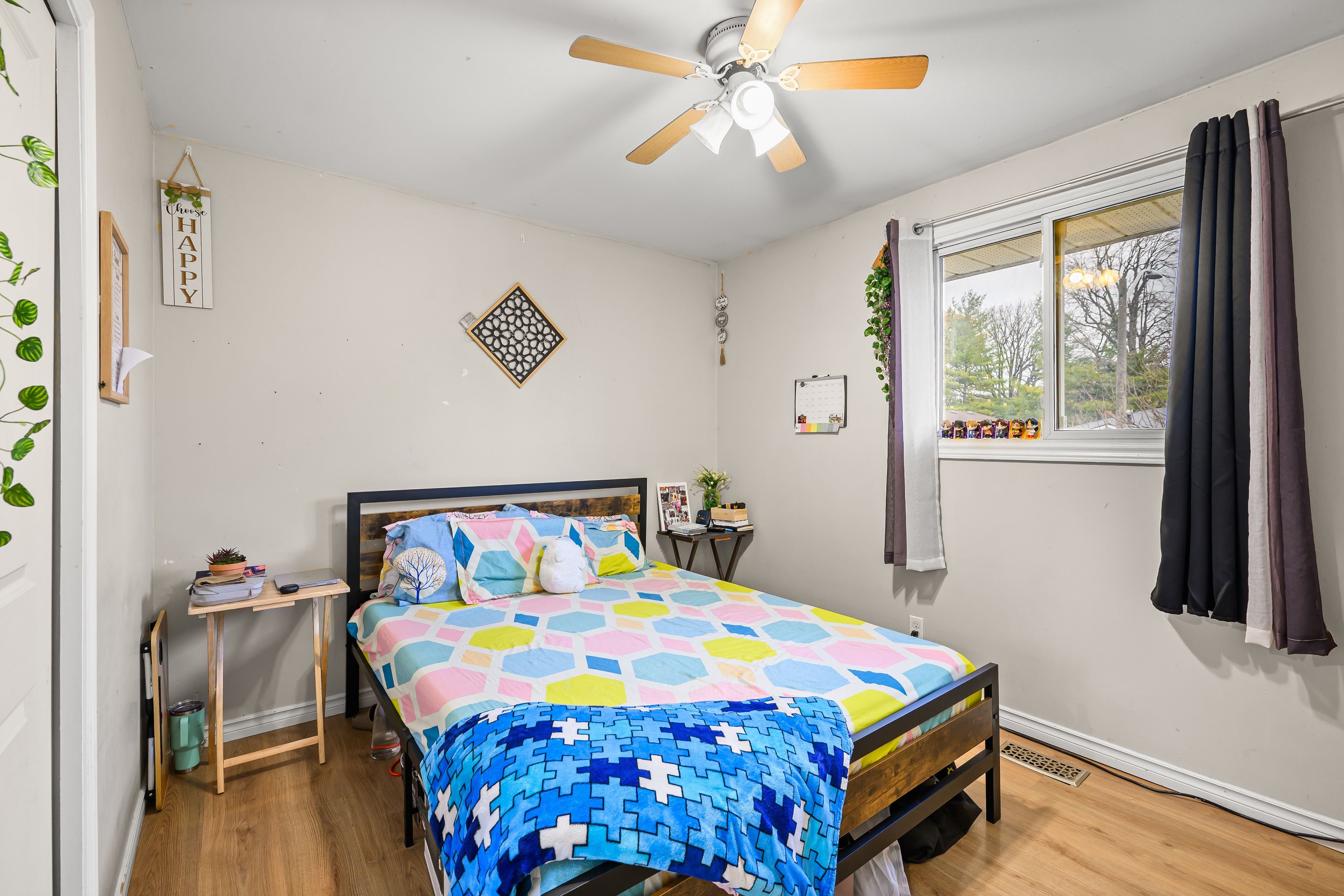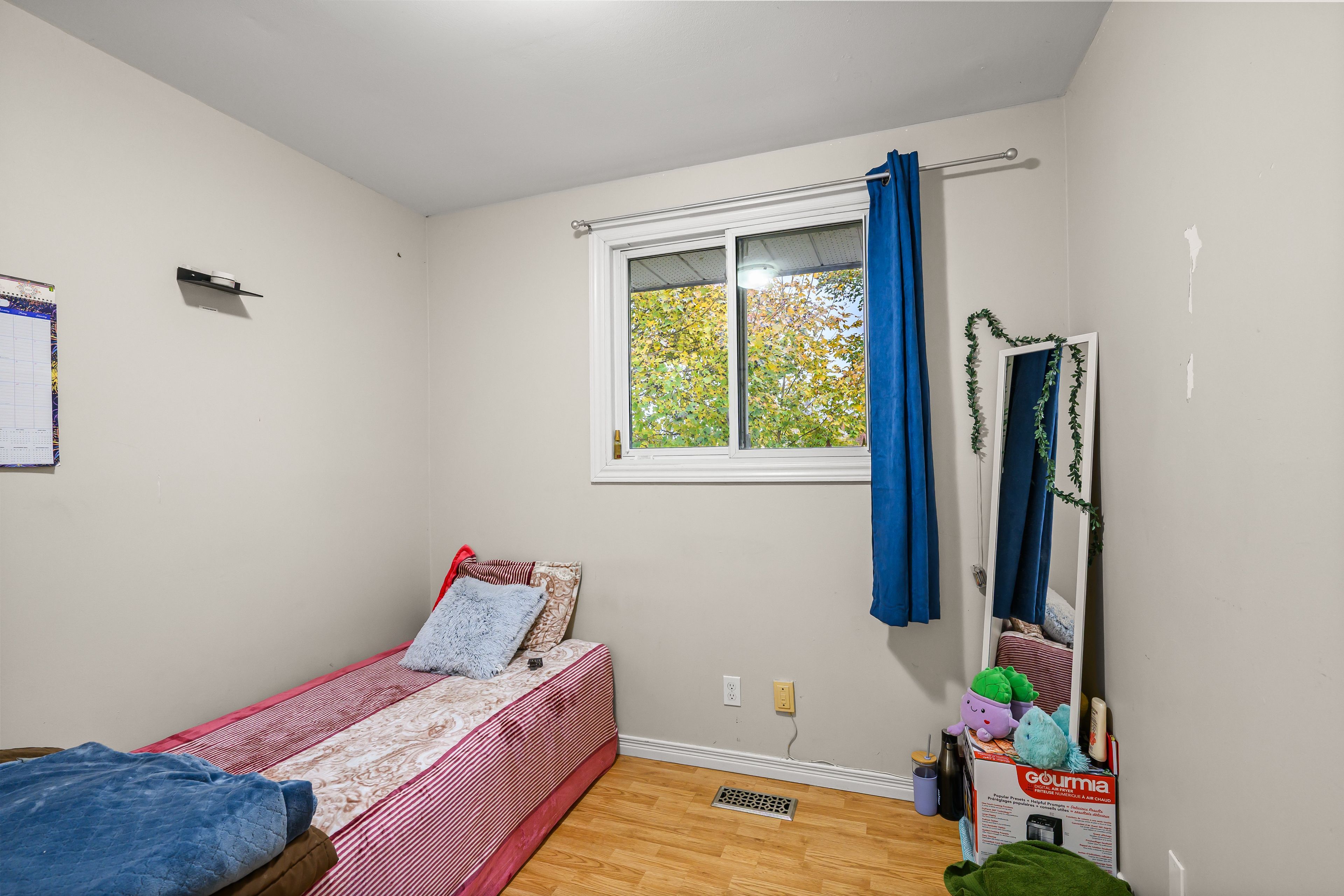 Attention first time home buyers and investors! Two-storey home located on a quiet crescent close to schools, parks, and public transit. Main floor features laminate flooring, renovated eat-in kitchen, separate laundry area, spacious living room and separate dining room with access to rear deck and fully fenced rear yard. Fully finished lower level includes rec room, additional bedroom, and 3 piece bath. Updates include newer windows, roof reshingled (2011), lower level with laminate flooring (2015).