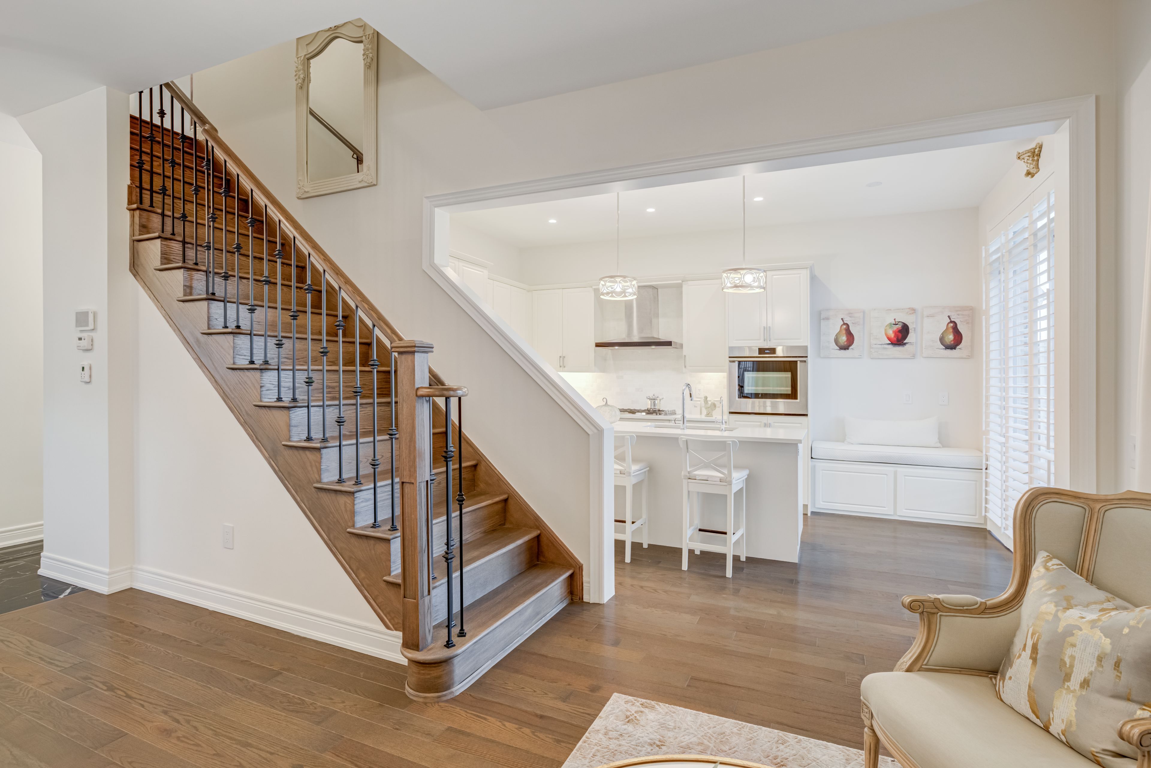 Stunning detached home on a premium corner lot, a residence that perfectly blends timeless elegance, modern comfort, and an unbeatable location. Welcome to this extraordinary detached residence perfectly positioned on a scenic corner with beautiful ravine views, offering unmatched privacy, views, and natural surroundings. Its majestic stone-and-brick exterior delivers breathtaking curb appeal, showcasing timeless design and elevated craftsmanship from the moment you arrive. Step inside the main level defined by an elegant centre hall plan featuring custom soaring 10-ft ceilings and large windows throughout creating a bright, expansive atmosphere ideal for both everyday living and sophisticated entertaining. At the heart of the home lies the gourmet kitchen, complete with built-in premium appliances, upgraded cabinetry, built in custom banquet seating and exceptional storage - a true chef's haven designed for function and style. Upstairs, the enhanced second-level floor plan offers three oversized bedroom retreats, each thoughtfully designed with its own private ensuite and walk-in closet. This rare configuration provides the ultimate in comfort, convenience, and privacy for family members and guests alike. Walking distance to community centre, parks, trails, top-rated schools, yrp transit. With easy access to highways, upper canada mall. Everything a young family needs this beauty delivers a lifestyle defined by convenience, elegance, and distinction. Every corner reflects sophistication and warmth - a true haven of refined living for families of all sizes. Come home to your personal sanctuary and embrace the finest in living at 136 carriage shop bend, where timeless design meets modern luxury.