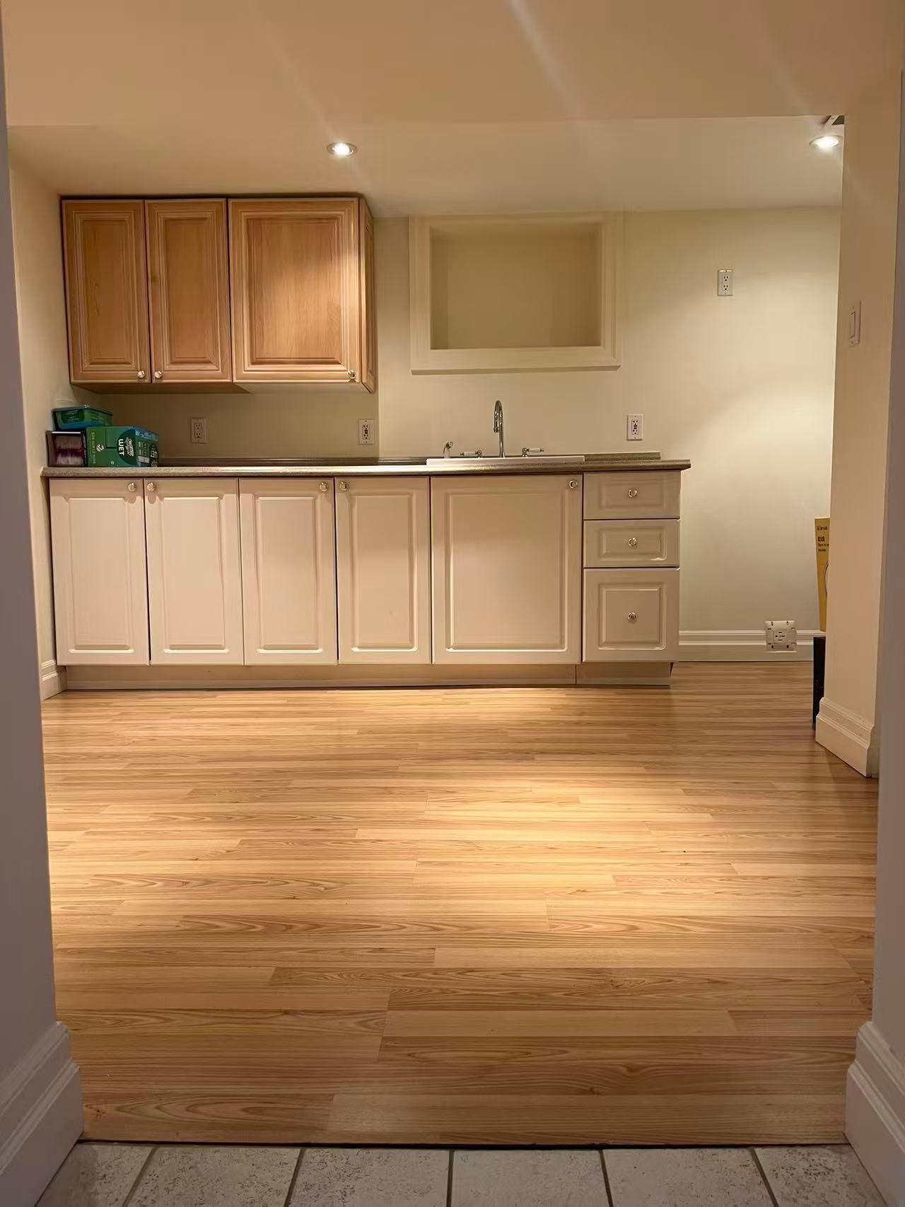 10 mintes walk or 2 mintes driev to lawrence subway station. Very cost-effective basement unit for lease. Has its own entrance, no stove or vents. Only available for minor cooking use