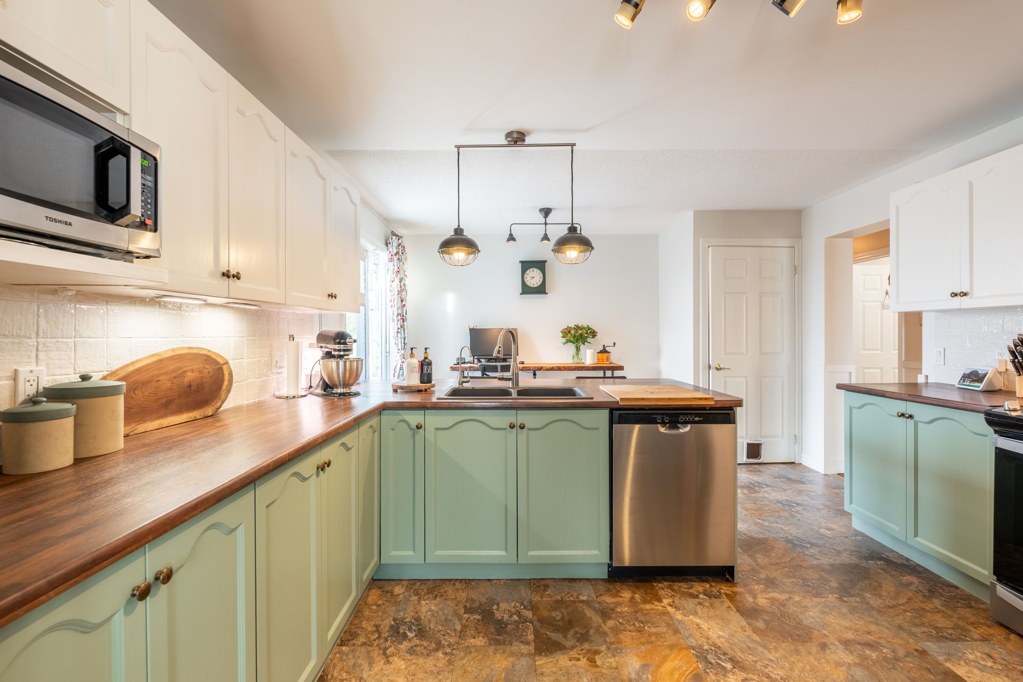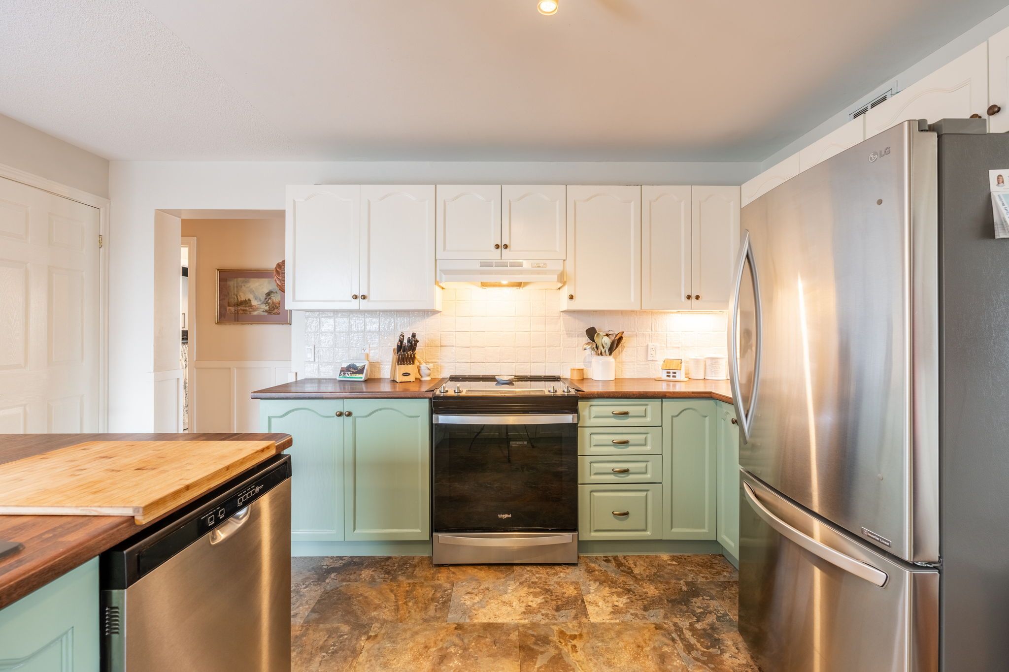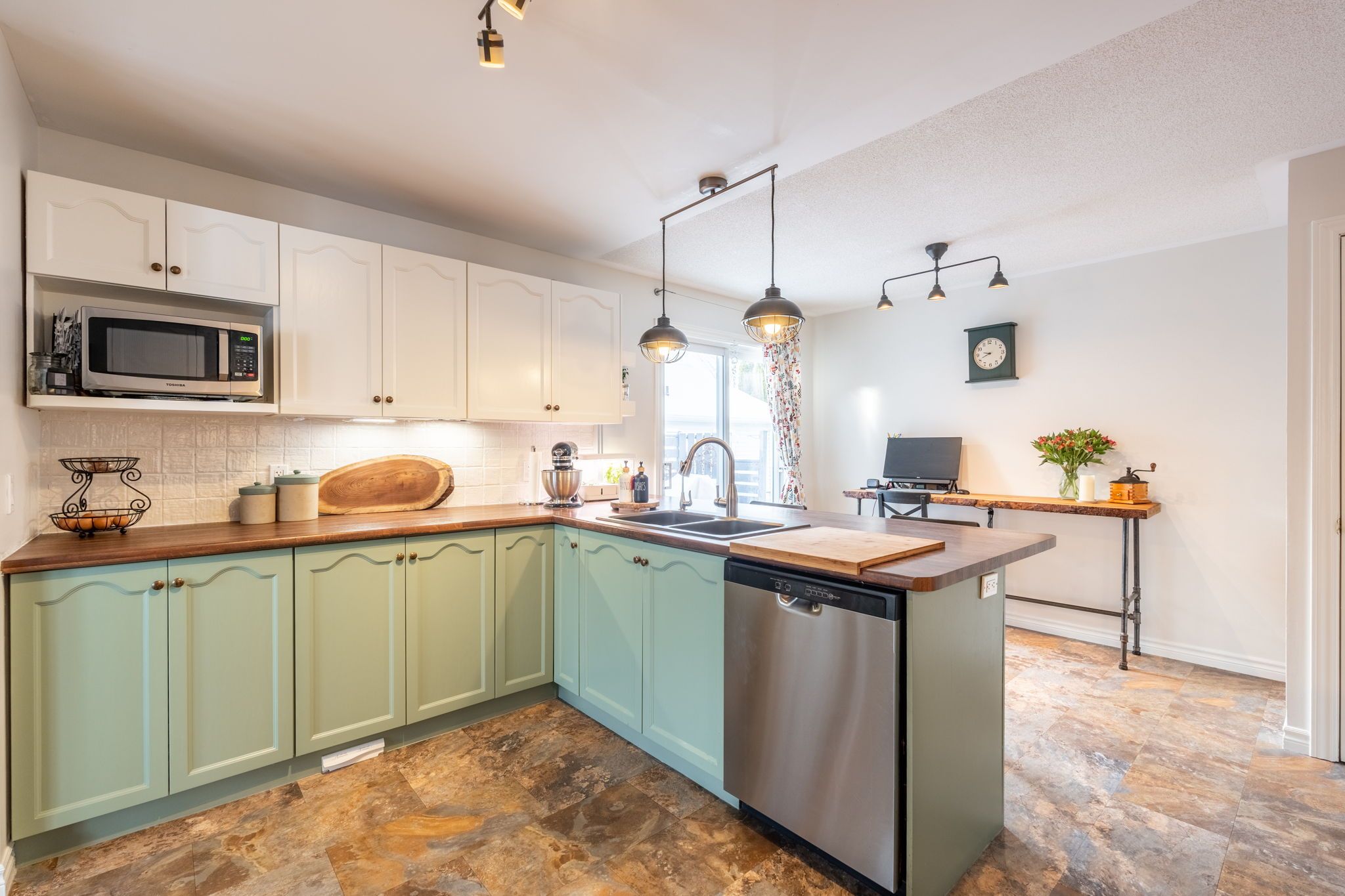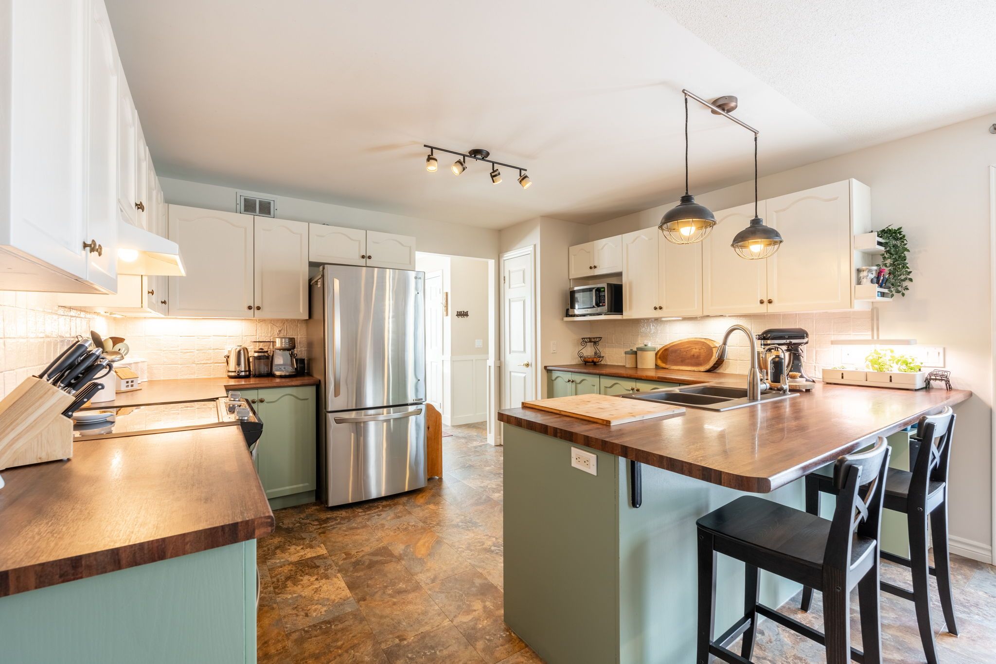 • Updated kitchen with stainless-steel appliances and large breakfast bar.