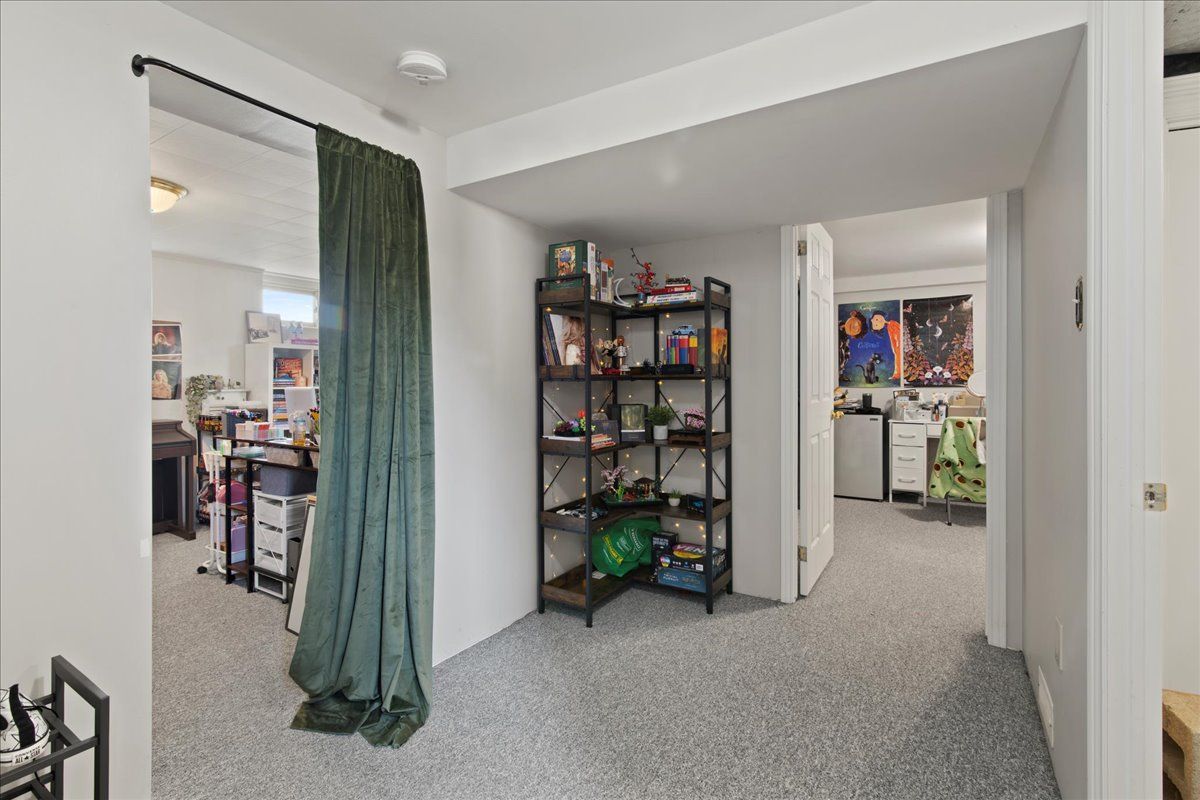 • Lower level boasts high ceilings, natural light, and additional guest space.