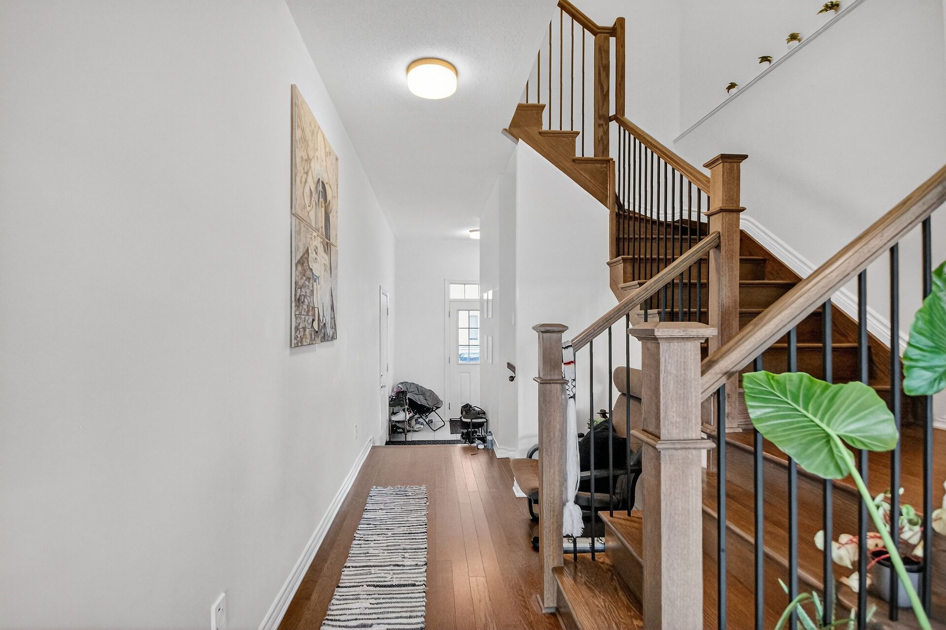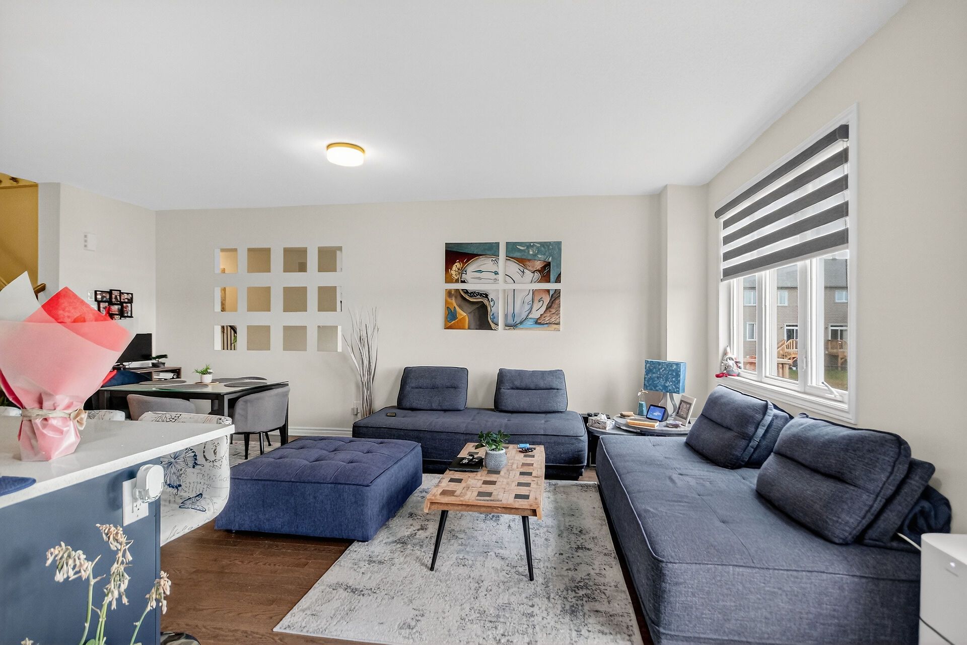 Your search for the perfect half moon bay townhome ends right here. This beautiful 3-bedroom, 2. 5-bathroom residence with a finished basement is perfectly situated in one of the area's most desirable communities. The main level offers a bright, open-concept layout featuring spacious living and dining areas accented by elegant hardwood and ceramic flooring. The modern kitchen is a chef's delight, complete with a stunning quartz island and stainless steel appliances-the perfect backdrop for sunday brunch or evening get-togethers. Upstairs, the large primary suite serves as a true retreat, boasting double walk-in closets and a private 4-piece ensuite. Two additional bedrooms, a second 4-piece bathroom, and a conveniently located laundry room complete the second level. Enjoy the ease of being within walking distance to local schools and parks, and just minutes away from major shopping hubs like walmart, costco, and home depot. This property also presents a fantastic opportunity for investors, as the current tenants are highly reliable and willing to stay. Flooring: hardwood, ceramic, and wall-to-wall carpet.