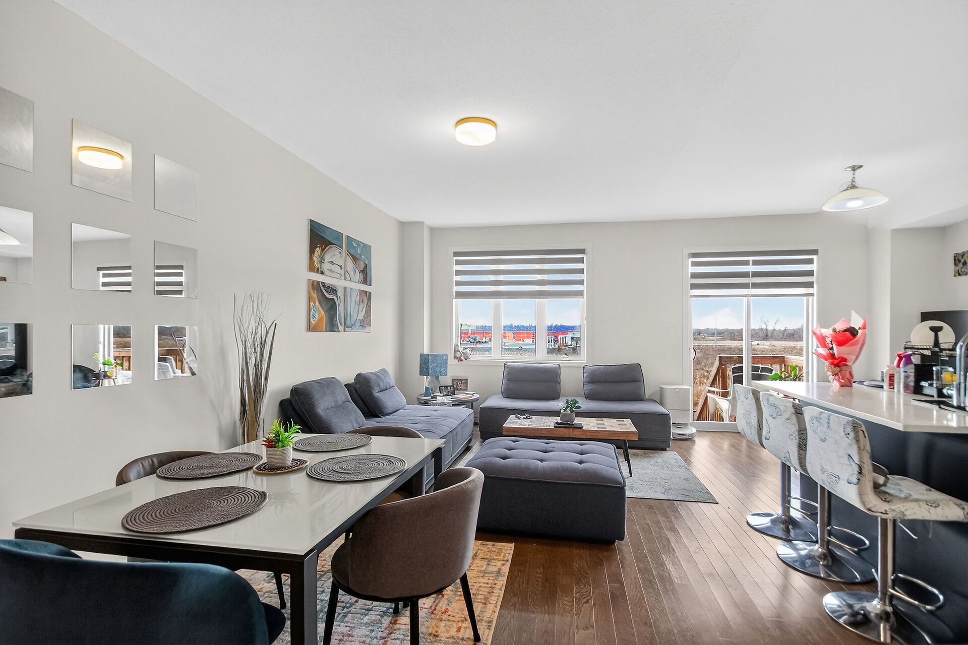 • Bright, open-concept main level with hardwood and ceramic flooring.