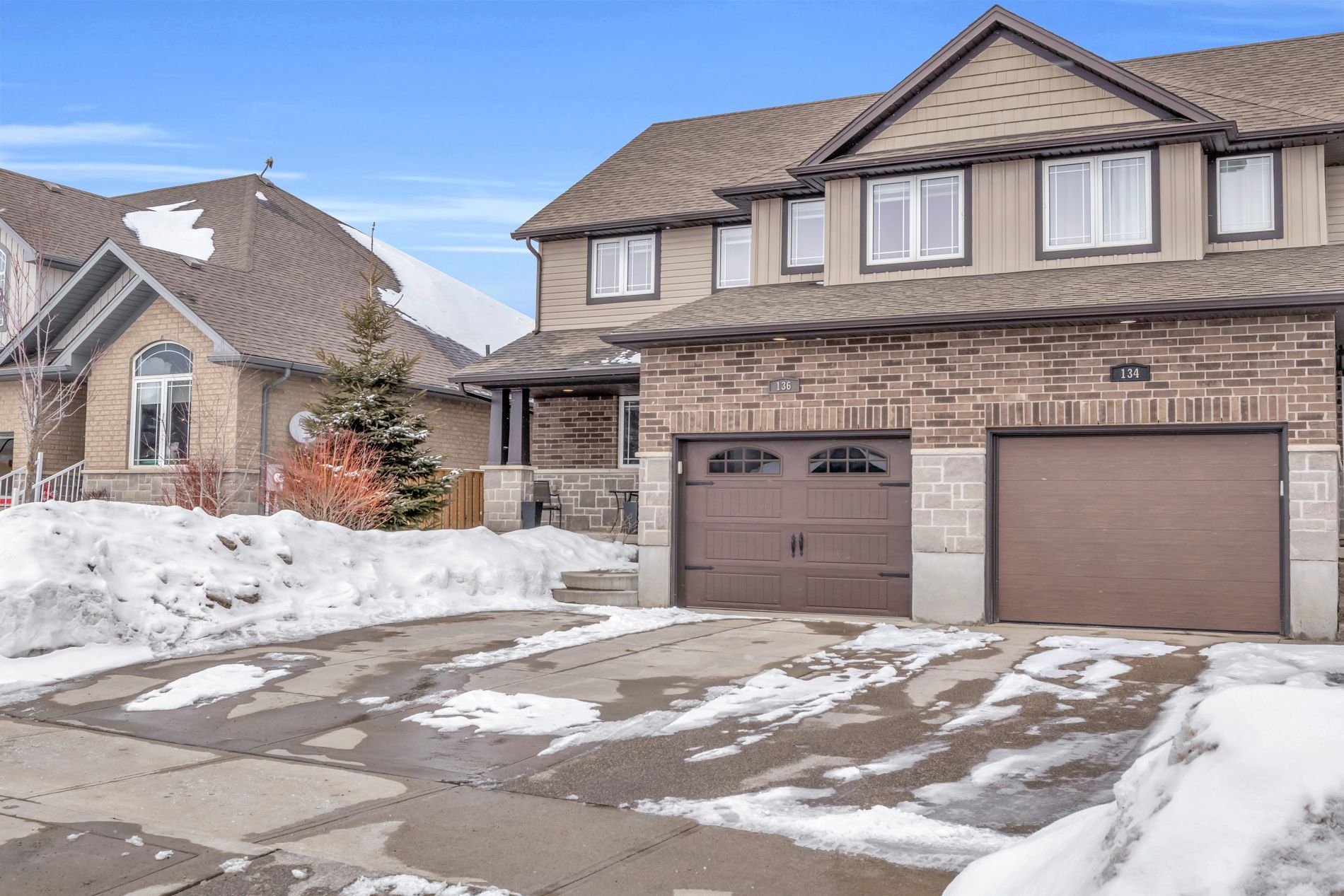 Small town living amounts to big spaces for you & your family- welcome to 136 marr drive in elora! This beautiful semi-detached home offers over 1,800 square feet above grade- plus an all-new finished basement downstairs! Enjoy entertaining & prime family time in your open-concept main level. It's all hands on deck prepping dinner at your kitchen island that offers casual seating and plenty of bonus storage. Never haul laundry to the basement again with a laundry room on the main floor, and enjoy the convenience of a main floor powder room as well. Upstairs, your private primary suite affords you both a walk-in closet & ensuite 4 piece bathroom. Two more very generous bedrooms share their own modern 4 piece bathroom as well, keeping all the kids' stuff confined to its own space. Retreat to your brand new finished basement in the evening for some r&r, with a perfect rec room that makes a great home theatre; and a spa-like 3 piece bath that offers dramatic finishes and a striking soaker tub. The basement wouldn't be complete without an awesome studio and home office space, with french doors that offer great lighting for the daytime grind. A concrete rear patio is the perfect spot to sit and enjoy your private backyard, with fencing and lush greenery all the way around. The front is not to be outdone, with stone accents along your oversized front porch, plus side-by-side parking on your concrete driveway bolstered by a finished garage with great shelving and organization. Enjoy evening walks to elora's charming downtown shops, restaurants and more. You'll truly love raising your family in this safe, kid-friendly neighbourhood with a home that's sure to fit you for years to come.