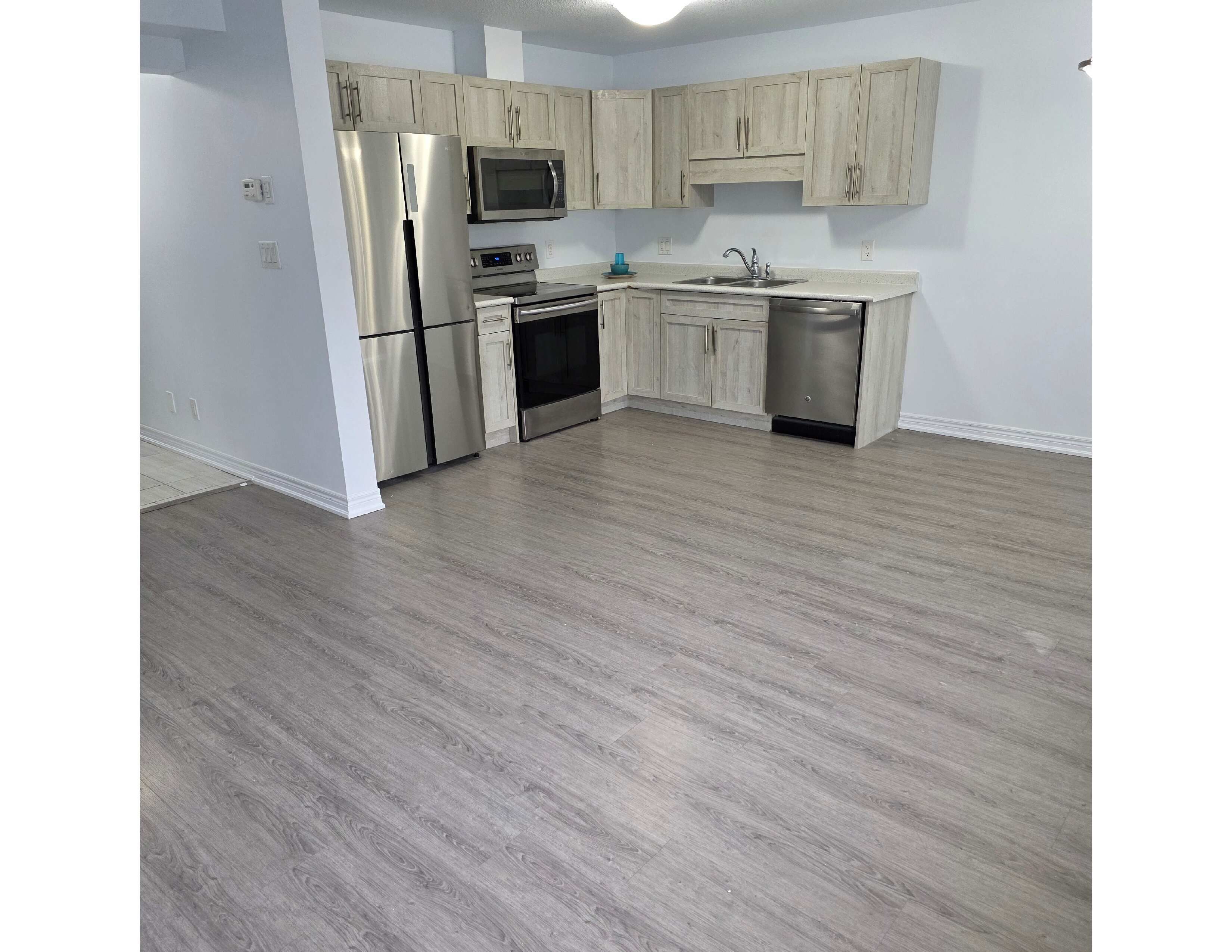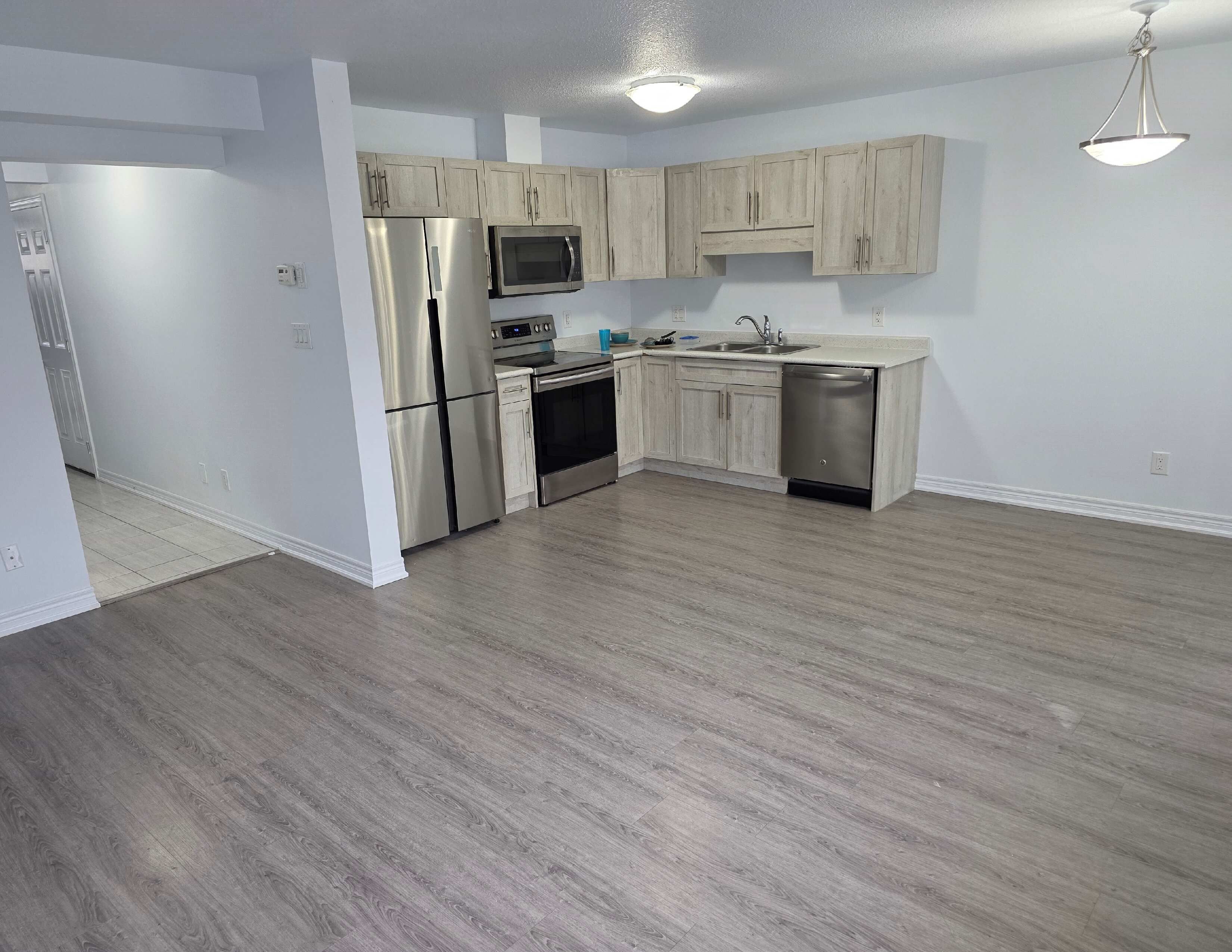 • Stylish kitchen with stainless steel appliances and open-concept layout.