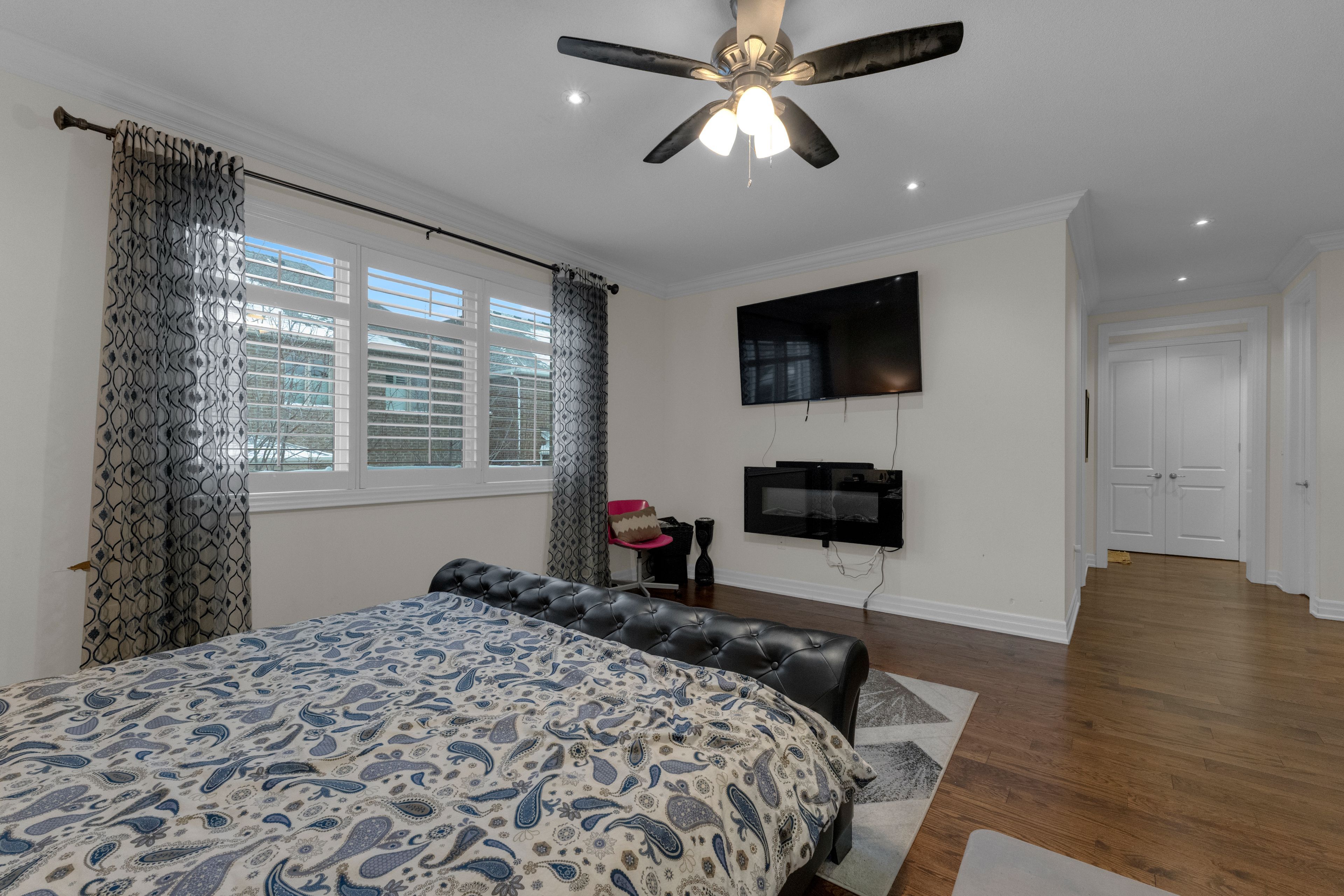 Welcome to this beautifully appointed 4 bedroom, 5 bathroom residence, nestled in one of oakville's most sought after neighbourhoods. Offering approximately 3,869 sq. Ft. Of refined above grade living space & fully completed basement, this home is thoughtfully designed & enhanced by elegant finishes throughout. At the heart of the home is a chef inspired kitchen w/jennair & thermador top tier built-in appliances, granite countertops, a centre island w/breakfast bar, & a convenient servery, all overlooking the bright breakfast area that walks out to a private backyard oasis, an ideal space for morning coffee or simply enjoying quiet moments surrounded by greenery. The inviting living room, adorned by a warm fireplace, seamlessly connects to the kitchen & breakfast area, creating an open, welcoming space for family gatherings. A spacious formal dining room provides the perfect setting for family dinners & entertaining guests, while the main floor office provides a quiet retreat, complete w/french doors, pot lights, & charming bay windows. Ascend on the curved staircase to the second level, where the primary suite awaits, featuring a his & hers closets & a 5pc ensuite w/a walk-in shower, soaker tub, his & hers sinks, & thoughtful finishes throughout. Three additional generously sized bedrooms are located on this level, each includes ample closet space & semi-ensuite access, while a second floor family room adds versatile living space ideal for relaxation. The fully finished basement expands the home's living potential, featuring a recreation area w/fireplace, a wet bar, & a comfortable living space w/built-in speakers, perfect for movie nights or hosting friends & family. Step outside & enjoy a fully private backyard, offering plenty of space for outdoor activities, gardening, or creating your own personal oasis. Located near snake & latter golf & country club, parks, schools, major grocery stores & more. This home is ready for you to move in & make it your own.