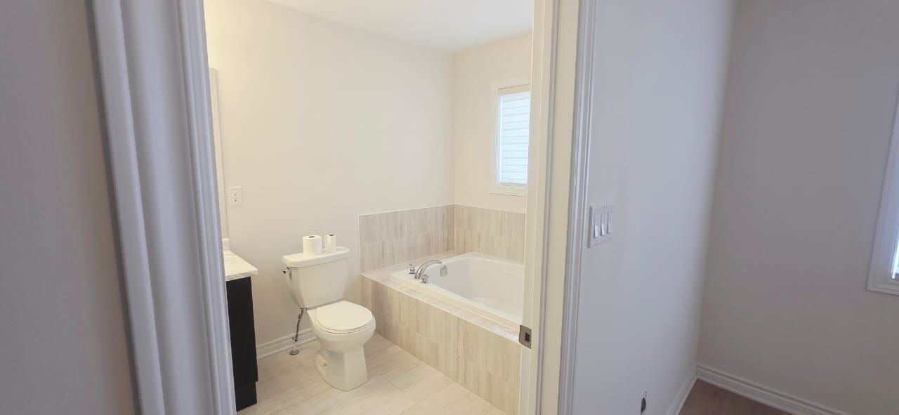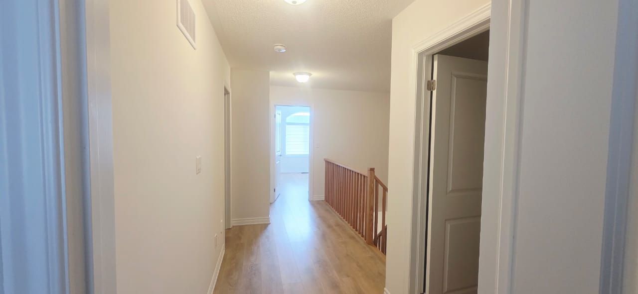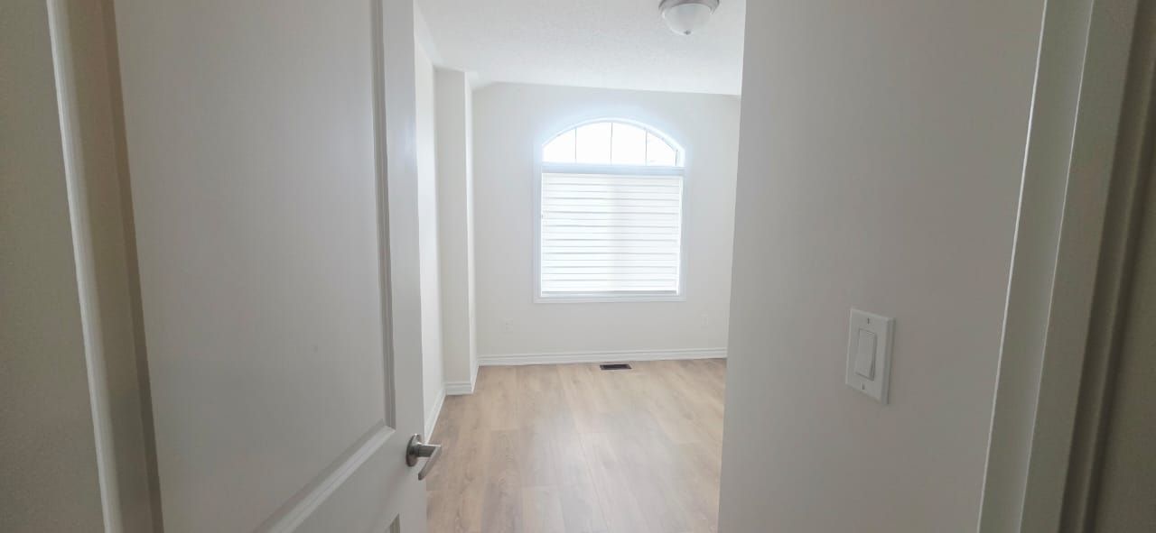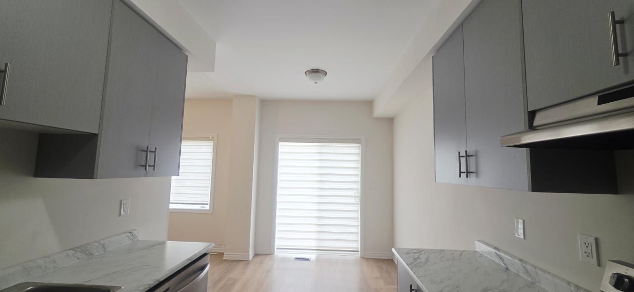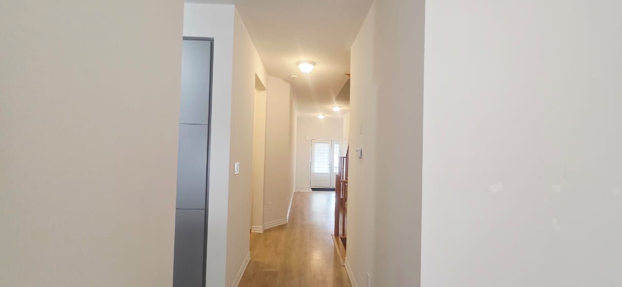 Immaculate and beautifully maintained, this cozy townhome built in 2024 is nestled in the desirable city of thorold in the niagara region. The freshly painted main floor welcomes you with an inviting foyer that leads into a bright and spacious living room featuring large windows that fill the space with natural light. A chef-inspired kitchen seamlessly connects to the dining area, with a walkout to the deck and private backyard-perfect for entertaining. Elegant hardwood stairs lead to three generously sized bedrooms and a spacious linen closet. The primary bedroom boasts a large walk-in closet and a luxurious 5-pieceensuite. Enjoy 9-foot ceilings on the main floor and unfinished basement for storage space.