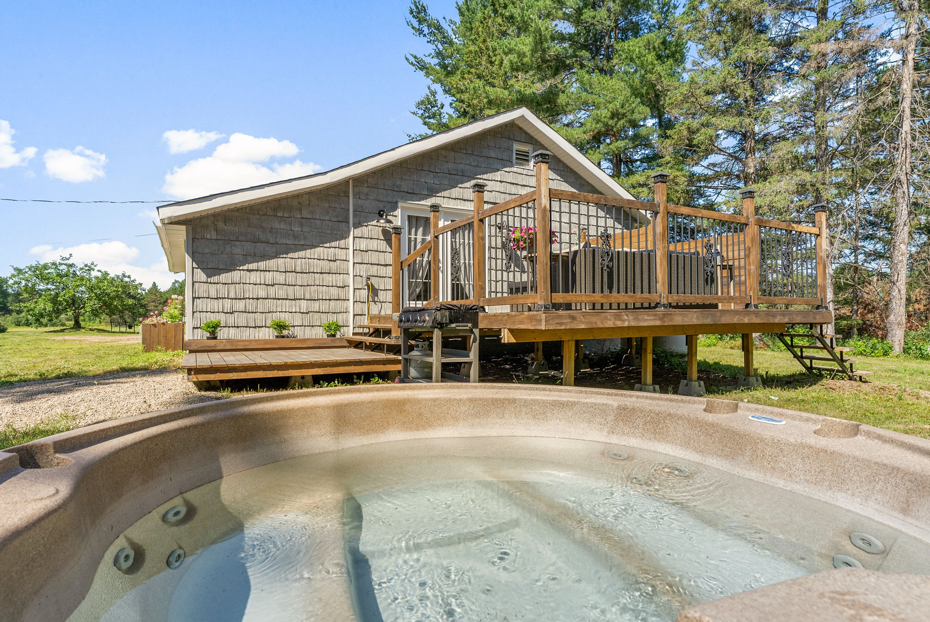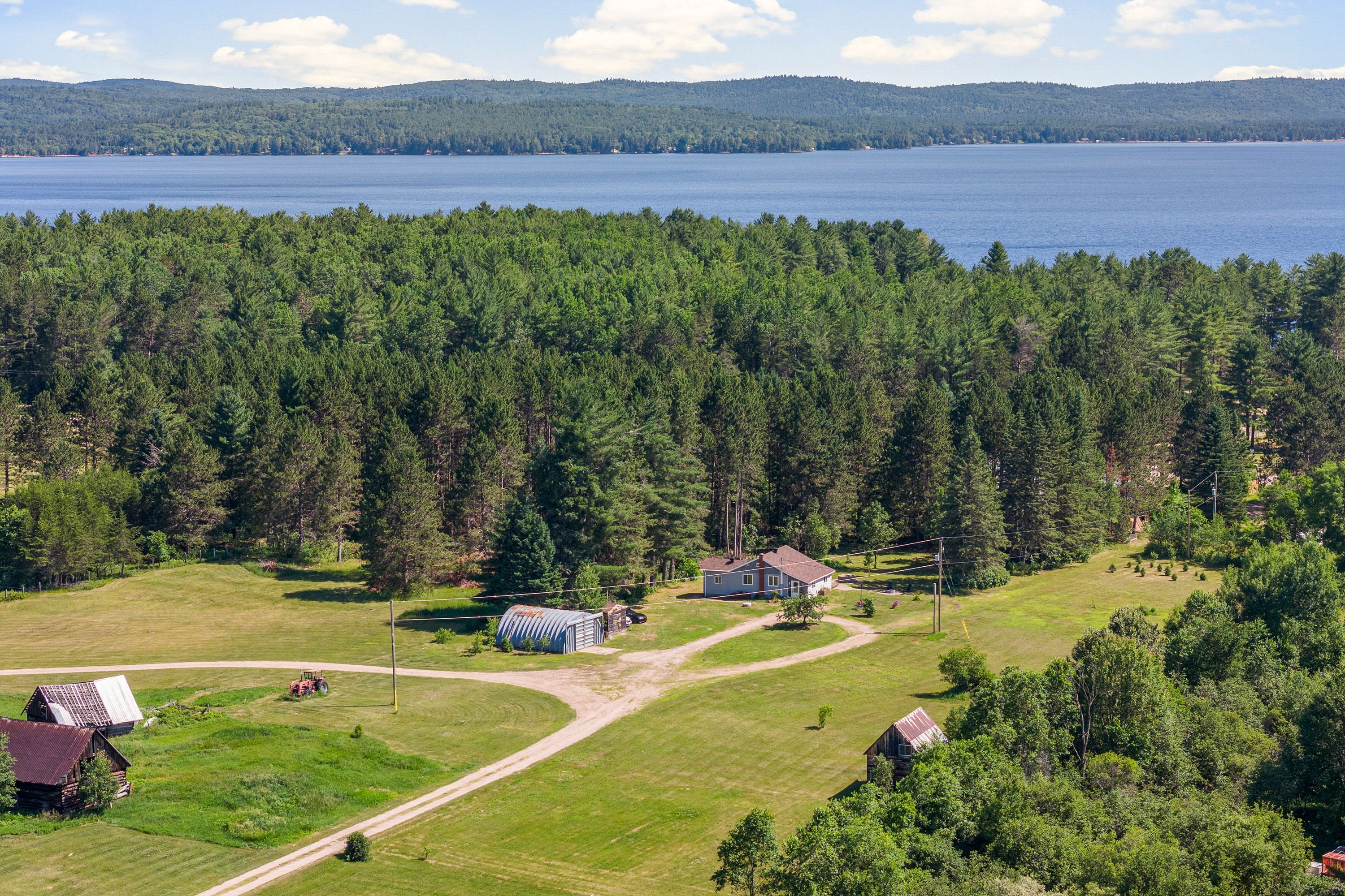 Welcome to this beautifully updated bungalow on 11 acres of picturesque landscape. Step inside through a spacious mudroom, ideal for country living, which also includes a convenient attached office area perfect for remote work or creative projects. This updated 2-bed, 1-bath home offers a warm and inviting open-concept kitchen and living room. The kitchen features a sleek quartz countertop and brand-new stainless fridge and stove, making it both stylish and functional. The home includes two comfortable bedrooms, with the bathroom located just off one of the rooms. Downstairs, a full, bright, clean basement awaits with a brand-new hwt and an included chest freezer. The lower level provides generous storage capacity, and the home has been upgraded with a modern 200-amp breaker panel for enhanced electrical efficiency, new windows, siding, doors and the roof was newly shingled in 2023 . The home is heated with a propane forced air furnace (2023) and cooled with central a/c. Outside, a brand-new driveway leads to a variety of outbuildings, including a large quonset hut wired with 200-amp service - truly a welders dream - and a spacious barn, ready for livestock or storage. Nature lovers and hobby farmers alike will appreciate the little pond and serene creek on the property, perfect for animals and tranquil walks and exploring. Whether you're looking to start a hobby farm or simply want the space privacy and freedom of rural living, this property offers comfort, opportunity, and charm in equal measure. Evenings are made for relaxing in the plug & play hot tub by your private deck, followed by summer nights watching the sun set behind the barns while enjoying the warmth of the fire pit. Enjoy being close to amenities but still tucked away from the main road for peace and privacy, only a short walk for swimming in round lake or short drive to cheryl boyle beach or bonnechere provincial park. Book a showing today and see the beauty this property has to offer! Min 24hr