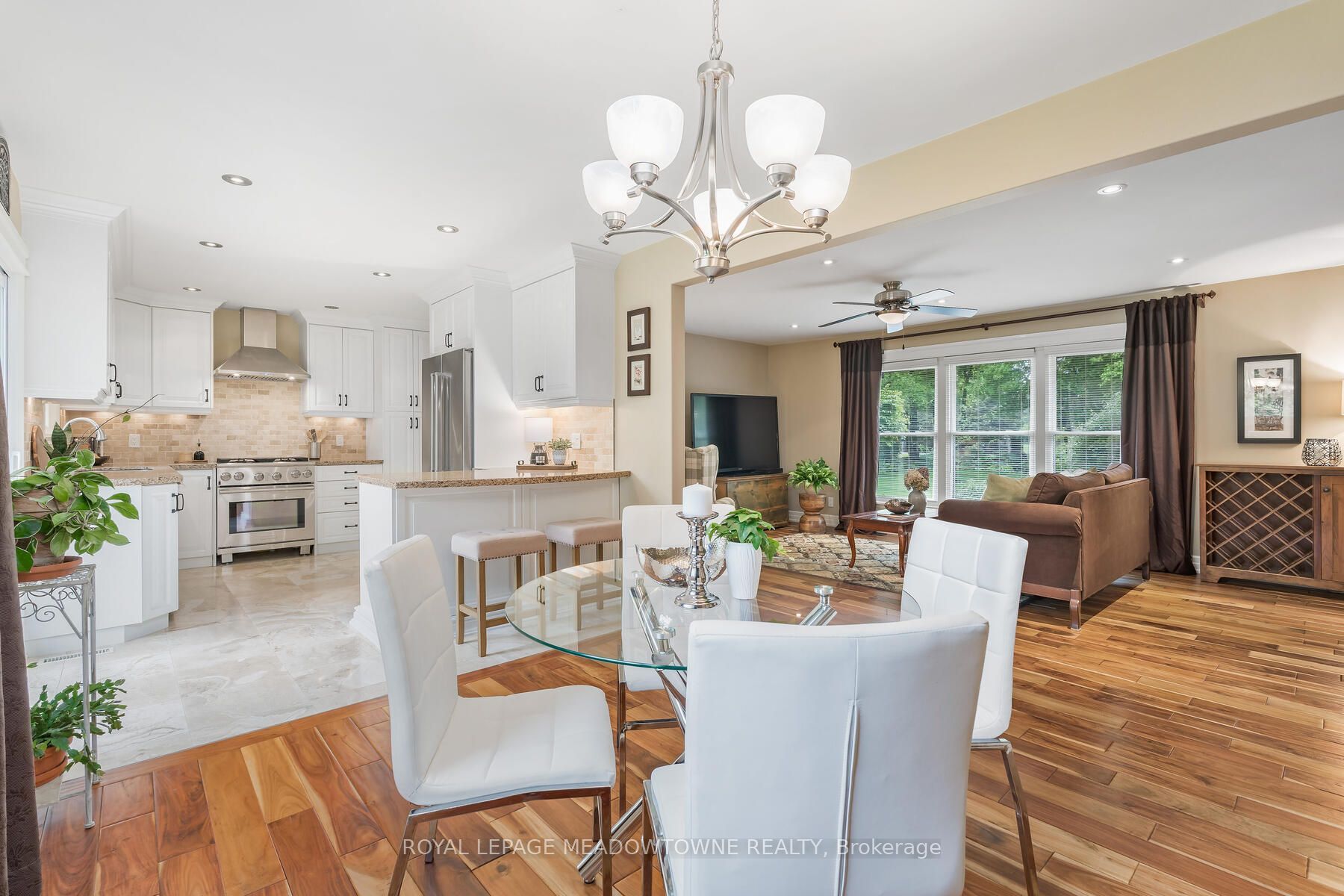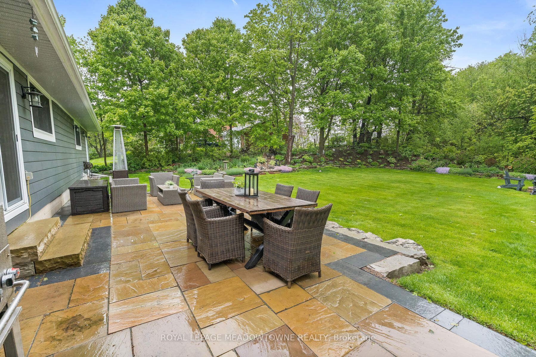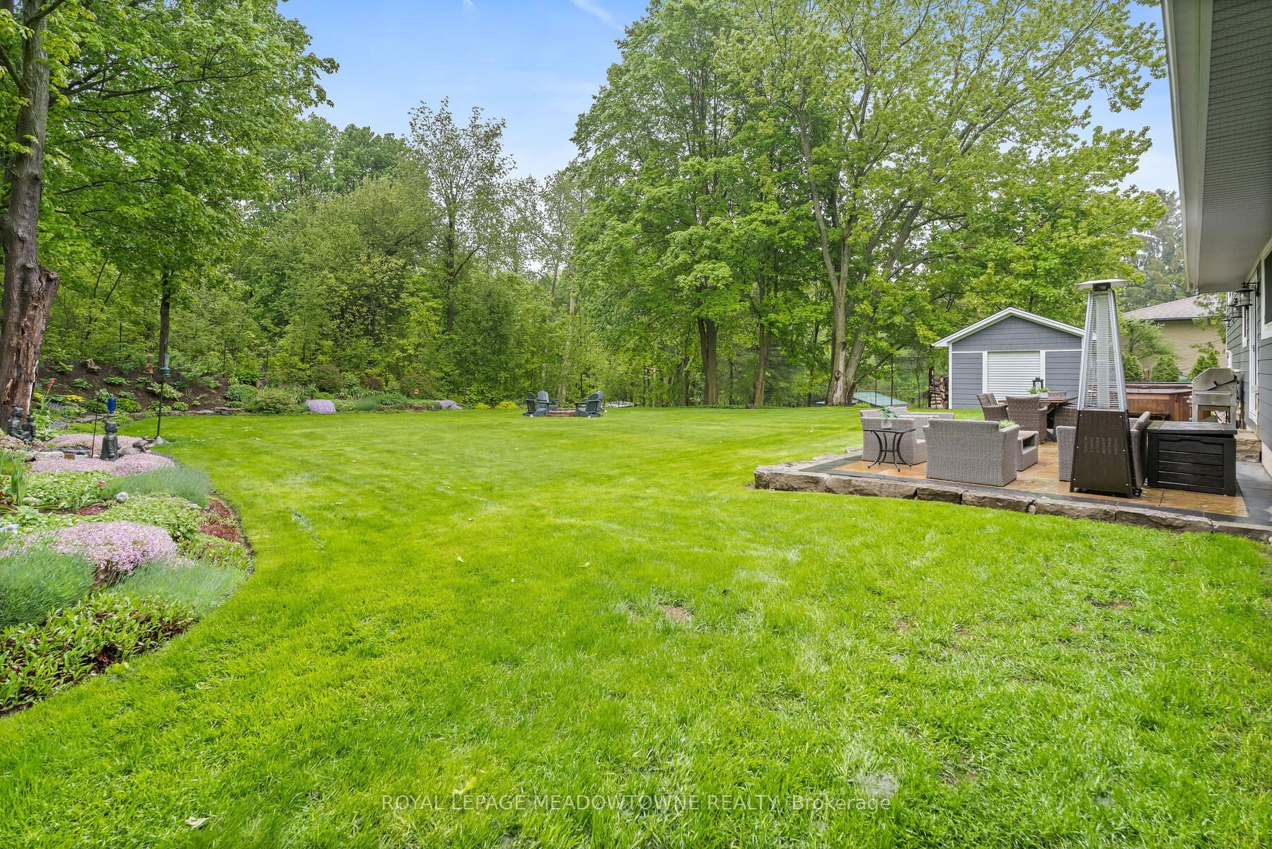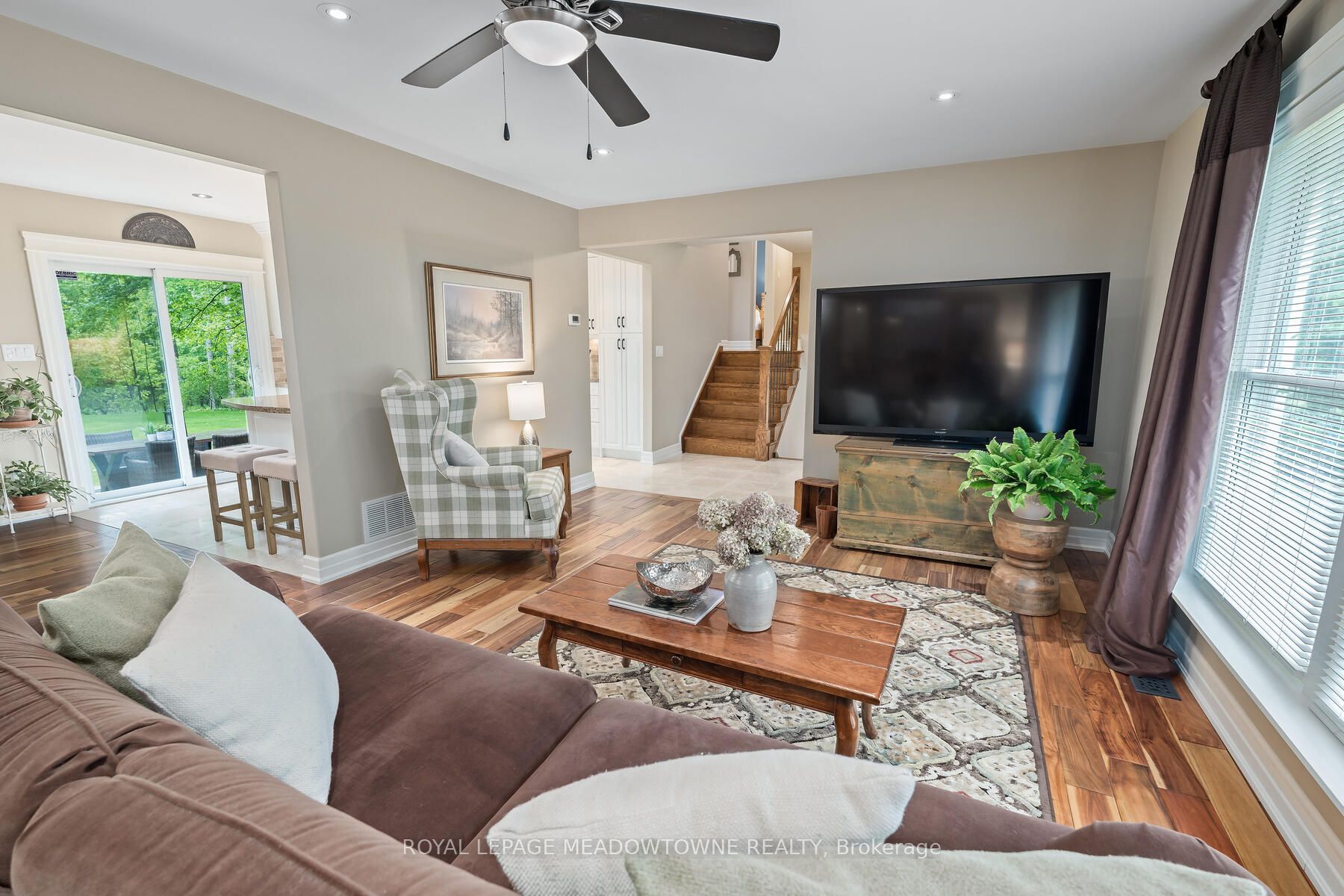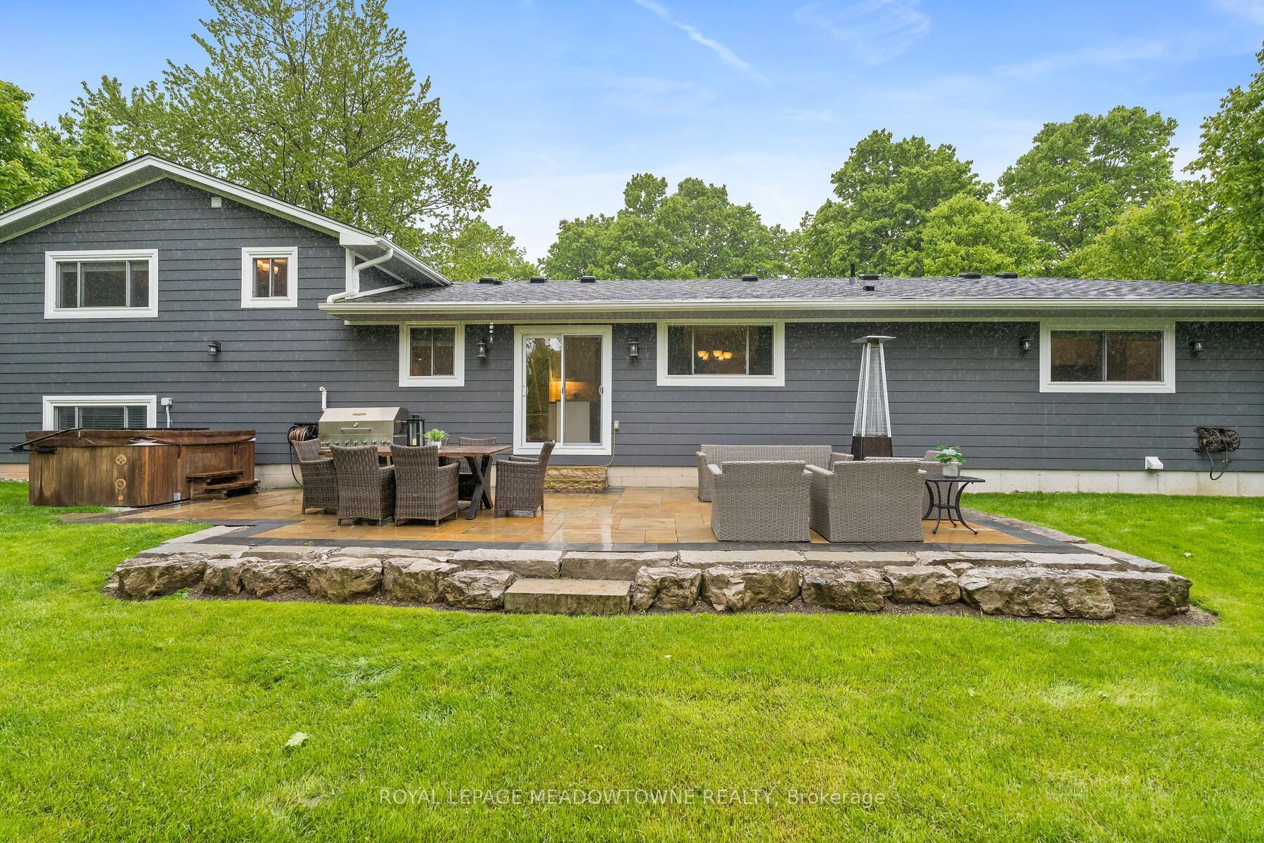 Picture perfect in halton hills. Gorgeous country home in mint condition and meticulously cared for with beautiful gardens and tons of curb appeal. Open concept kitchen with corian counters, stainless steel appliances and breakfast bar. Three bedrooms up with 4-piece and one conveniently located on the main floor with another full bathroom. Ideal set up for an elderly parent! The lower level is finished plus there is a huge and very useful crawlspace for your storage. An oversize two-car garage leads to the mudroom with laundry and large closet space. Beautiful views from every window. The backyard features a fabulous deck with a hot tub and a large pretty shed for all your toys. Shingles (2016), furnace, windows, air conditioner (2013) & water heater and water softener (2023). Addition built in 2016. Extras include acacia wood flooring, spray foam insulation, composite siding. It's just shy of 1/2 an acre. Ideally located close to georgetown, acton and minutes to the 401. Pride of ownership throughout. It's move-in ready and lovely!