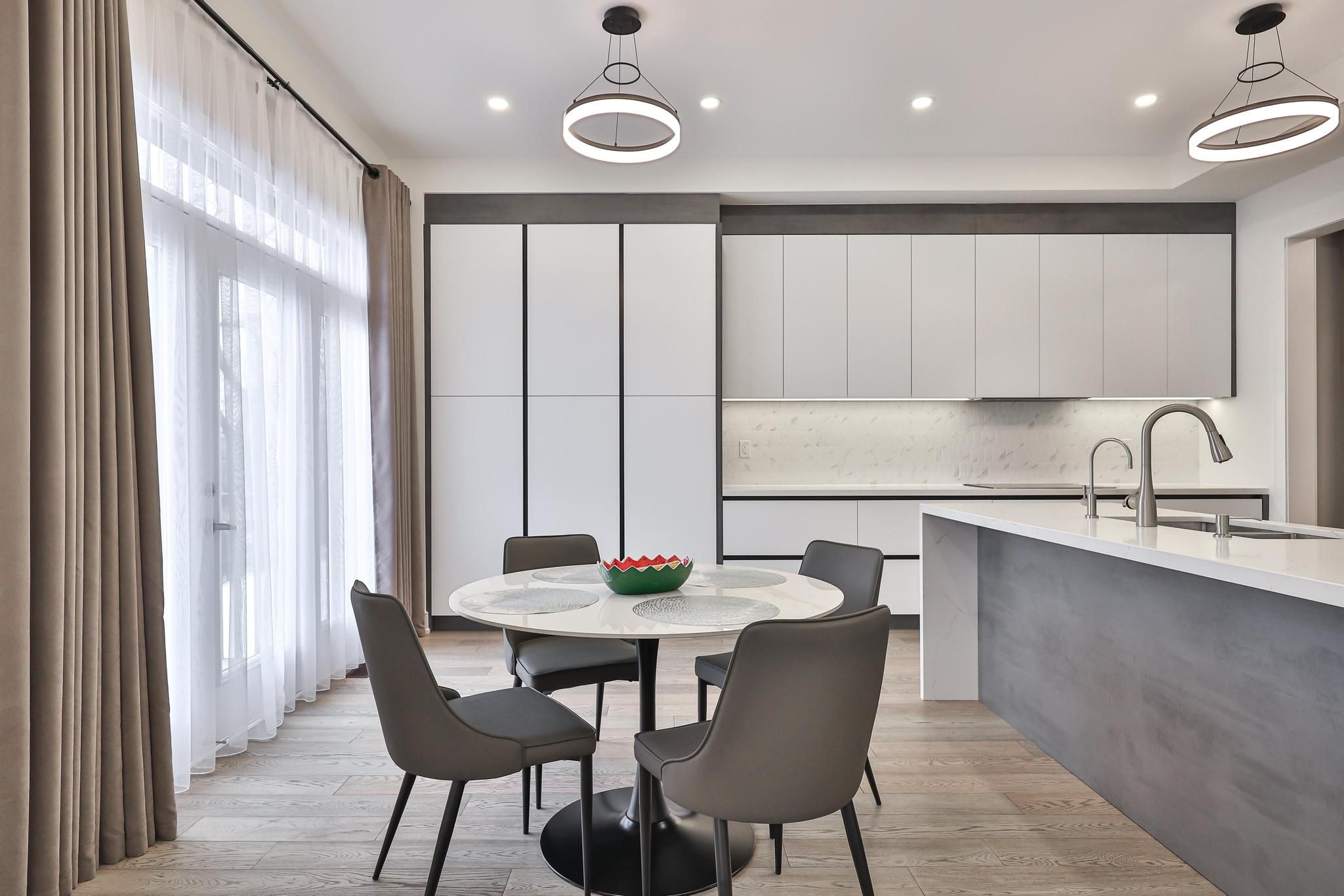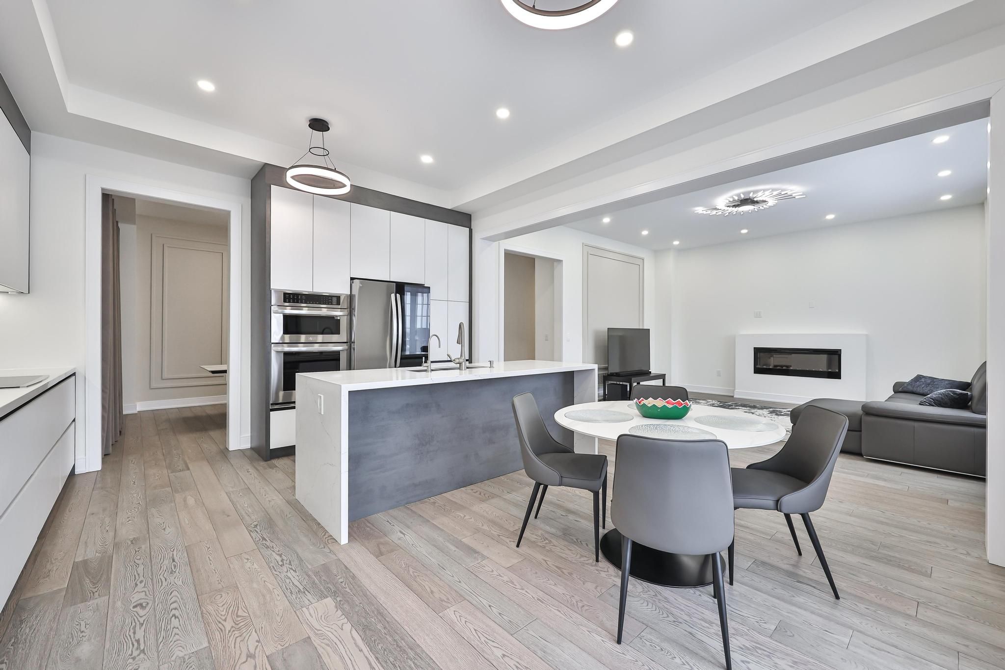 Welcome to this beautifully renovated home tucked away on a quiet private street in a sought-after innisfil neighbourhood, backing onto peaceful greenspace. Offering a highly functional layout with a seamless flow, this home blends modern finishes with everyday comfort. The main floor features 10-ft ceilings and 8-ft interior doors, creating a bright, open feel throughout. Engineered white oak hardwood floors, smooth ceilings, pot lights, and custom wainscoting add warmth and a clean, elevated look. The open-concept kitchen is designed for both daily living and entertaining, complete with a large quartz waterfall island, custom floor-to-ceiling cabinetry, built-in appliances, and ample storage. The breakfast area walks out to a spacious deck overlooking serene green views. A dedicated home office provides the perfect work-from-home setup. The walk-out basement offers excellent potential for additional living space or income. Located just minutes to lake simcoe, parks, schools, and everyday amenities, this is a great opportunity to enjoy modern living in a quiet, nature-filled setting!