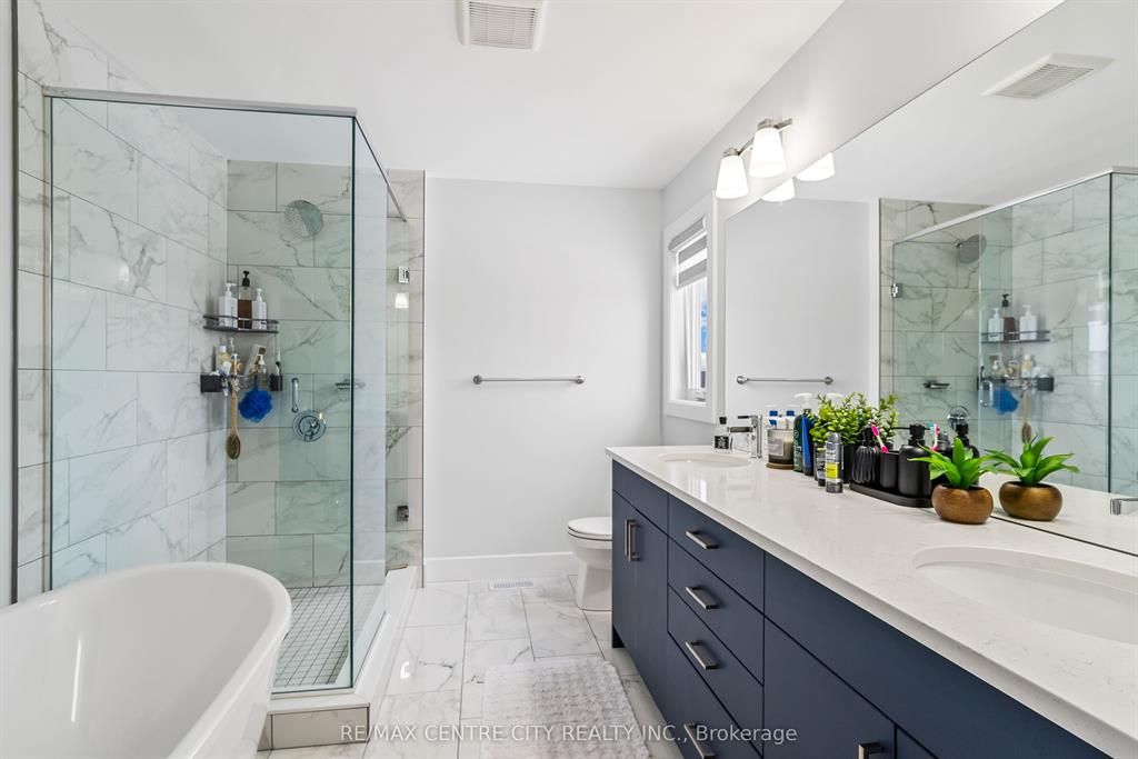 Like brand new, just one year old hydepark gem is an expertly designed, premium living space in desirable foxfield. Enter through the double front doors into the foyer through to the bright open-concept main floor featuring hardwood flooring throughout the main level; a staircase with black metal spindles; a generous mudroom; a kitchen with custom cabinetry, quartz/granite countertops, an island with a breakfast bar, a pantry with cabinetry, and an expansive bright great room with 7' high windows/patio slider across the back. The upper level boasts 4 generous bedrooms and three full bathrooms, including two bedrooms sharing a "jack and jill" bathroom, a bedroom with a full ensuite, and a primary suite with a 5-piece ensuite (tiled shower with glass enclosure, stand-alone tub, quartz countertops, double sinks) and a walk-in closet, and a convenient upper-level laundry room. Unfinished basement with a separate entrance ready for your personal touch no sidewalk