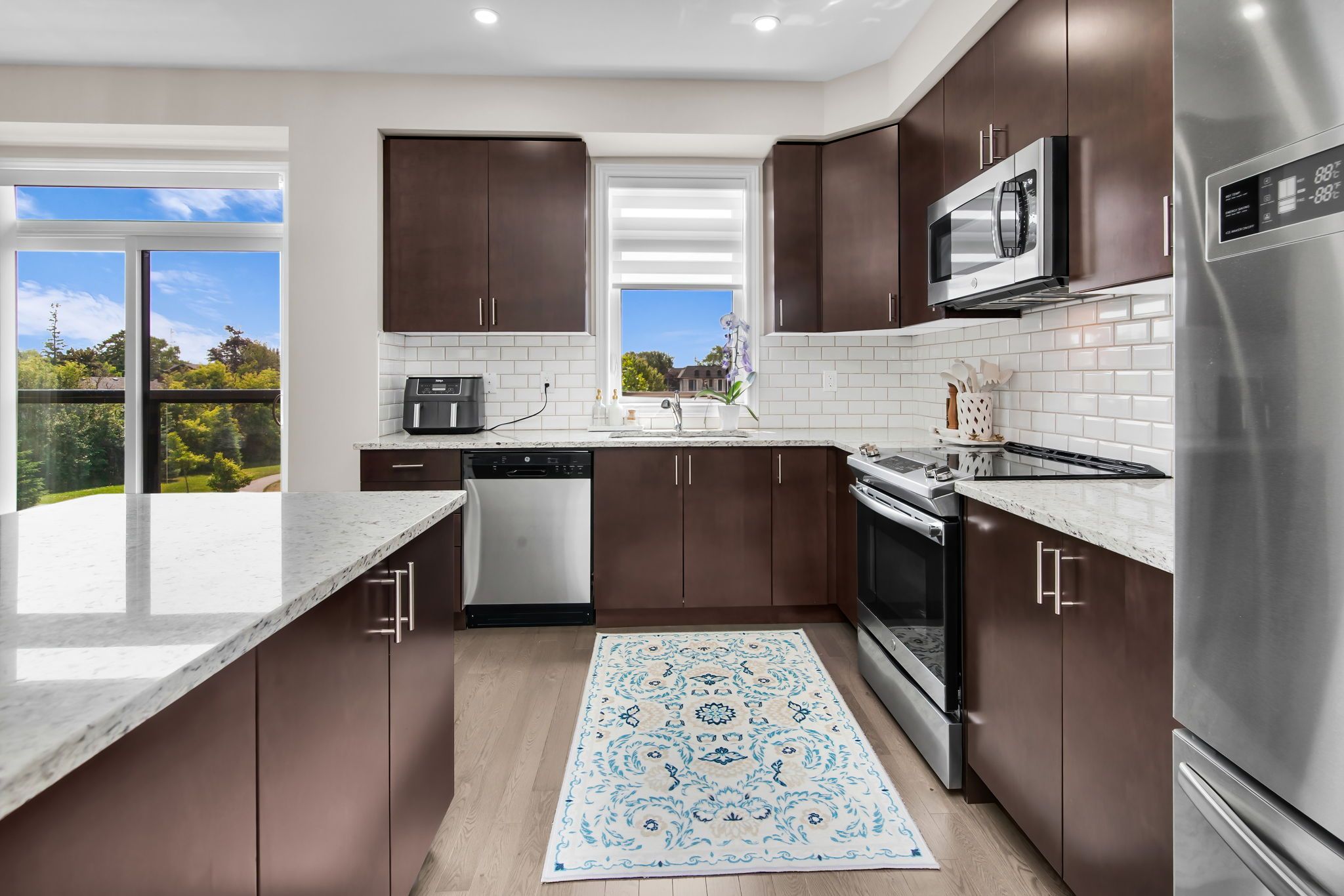 • Stylish kitchen with granite countertop and premium stainless steel appliances.