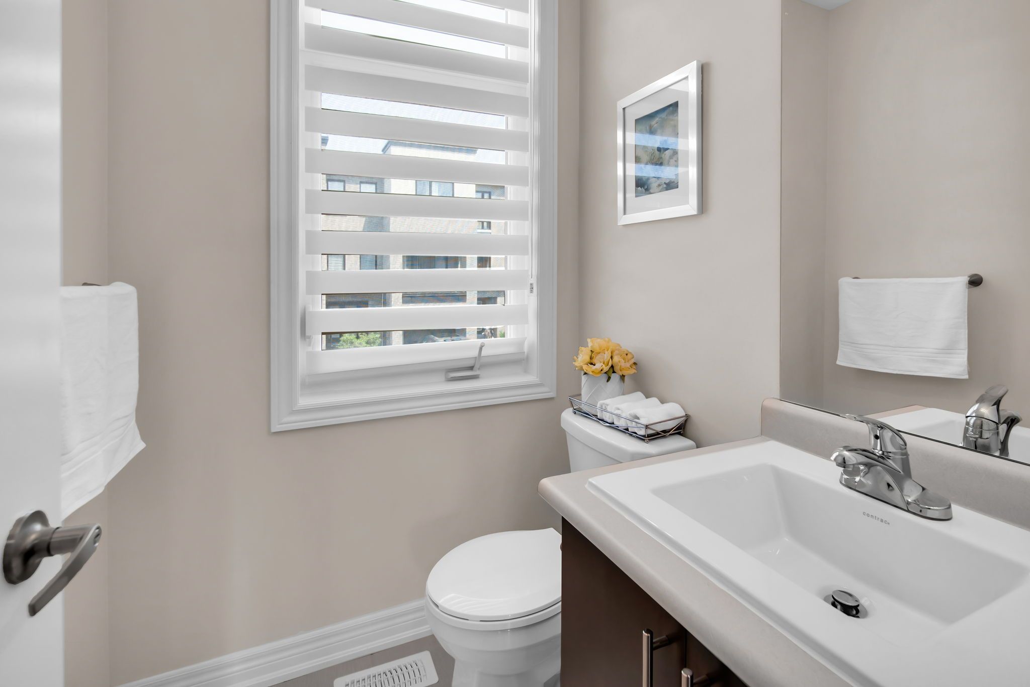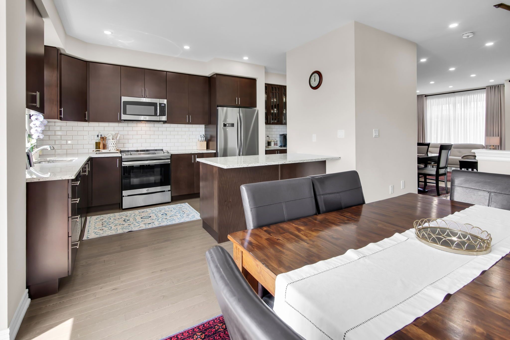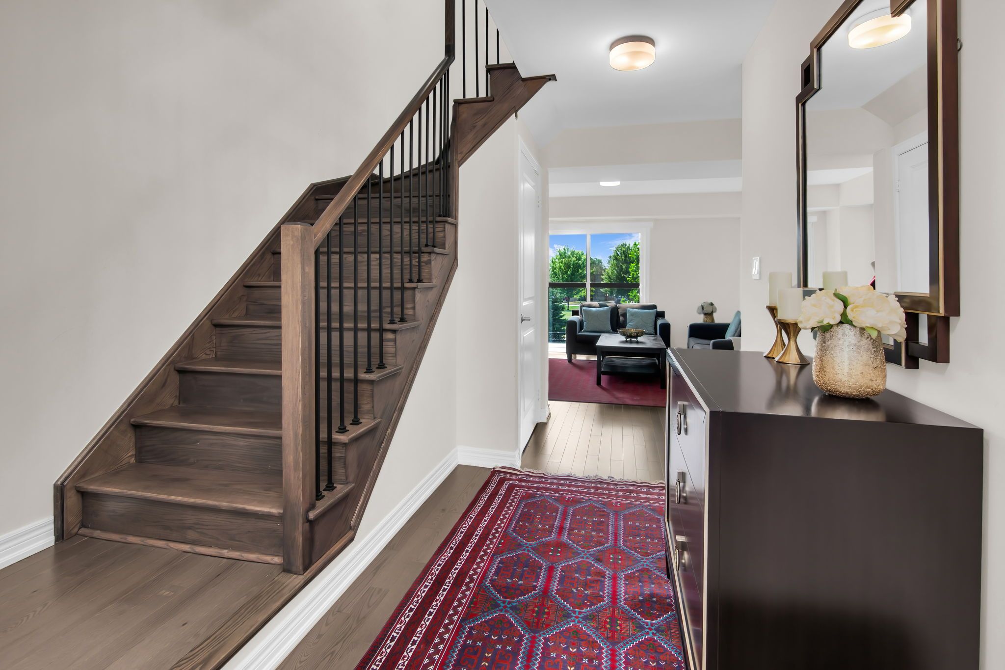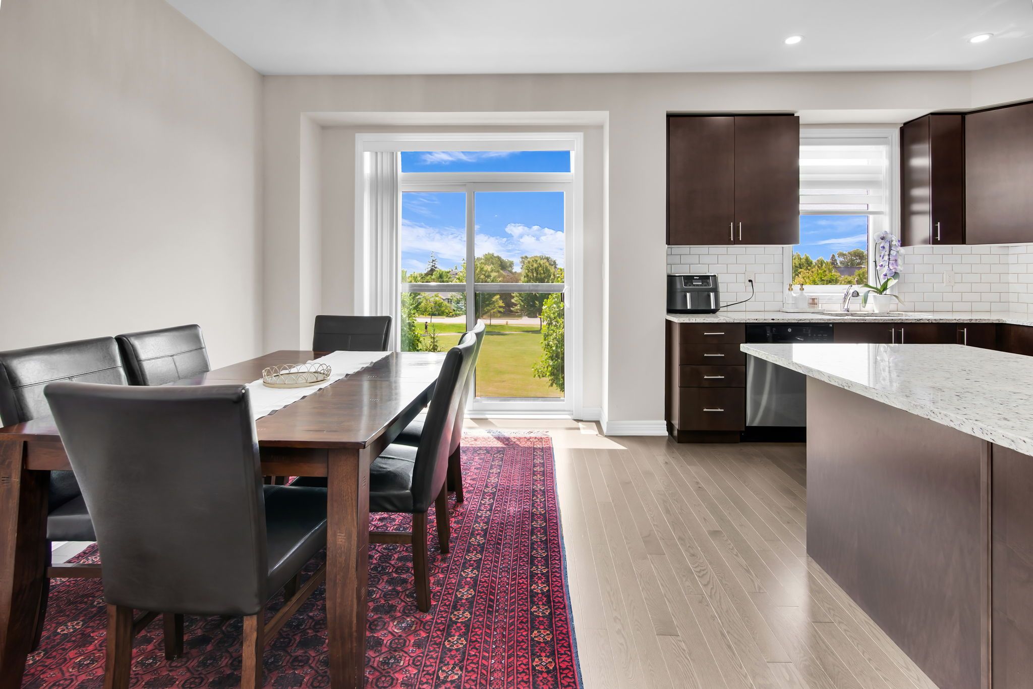 • Upgraded executive townhome with open-concept layout and large park-facing windows.